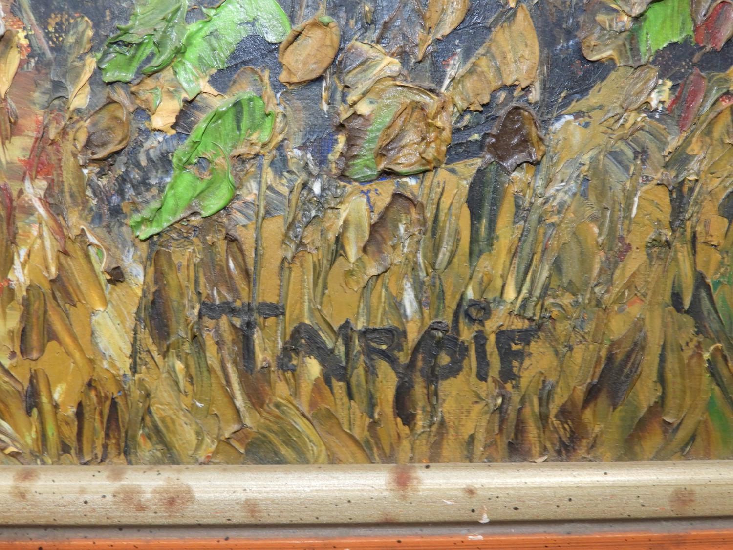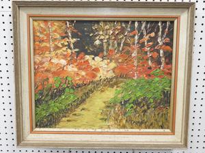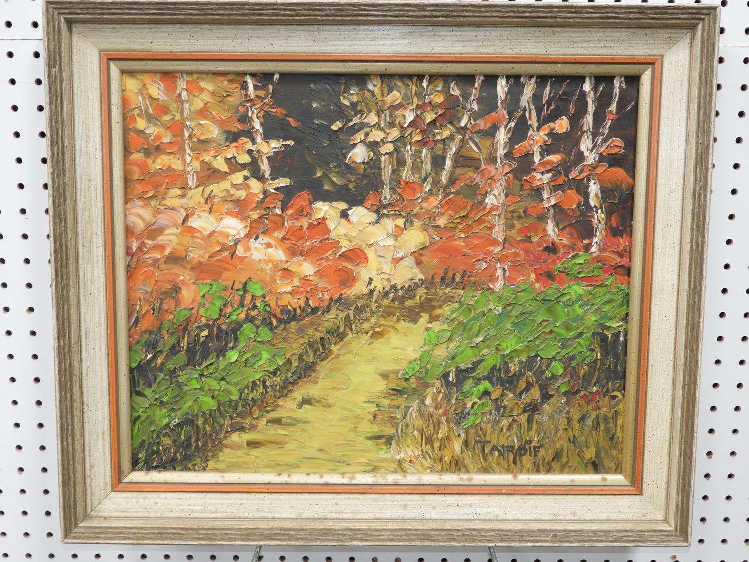 robert tardie, d.1969, oil on board, 16" x 20", "abstract - forrest pathway"