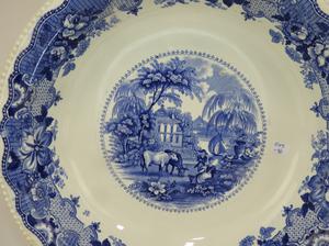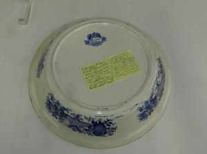 ralph hall & co blue and white "parisian chateau" pattern bowl, 2 3/4" x 11 1/2"