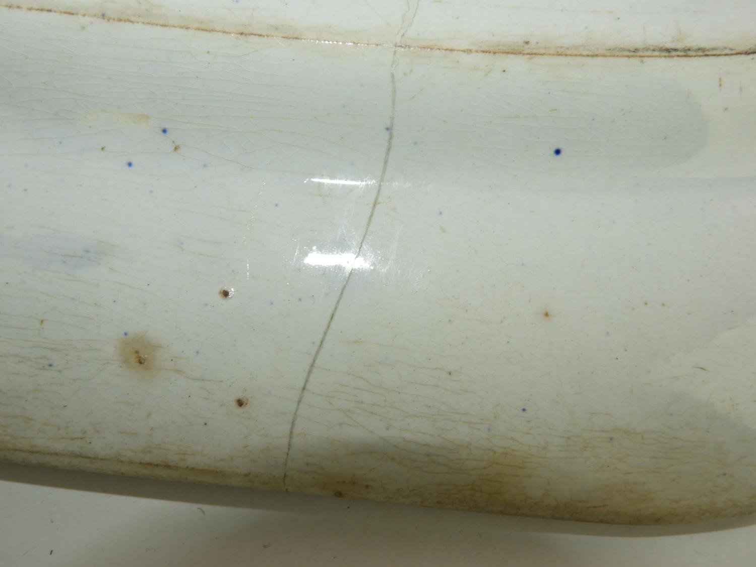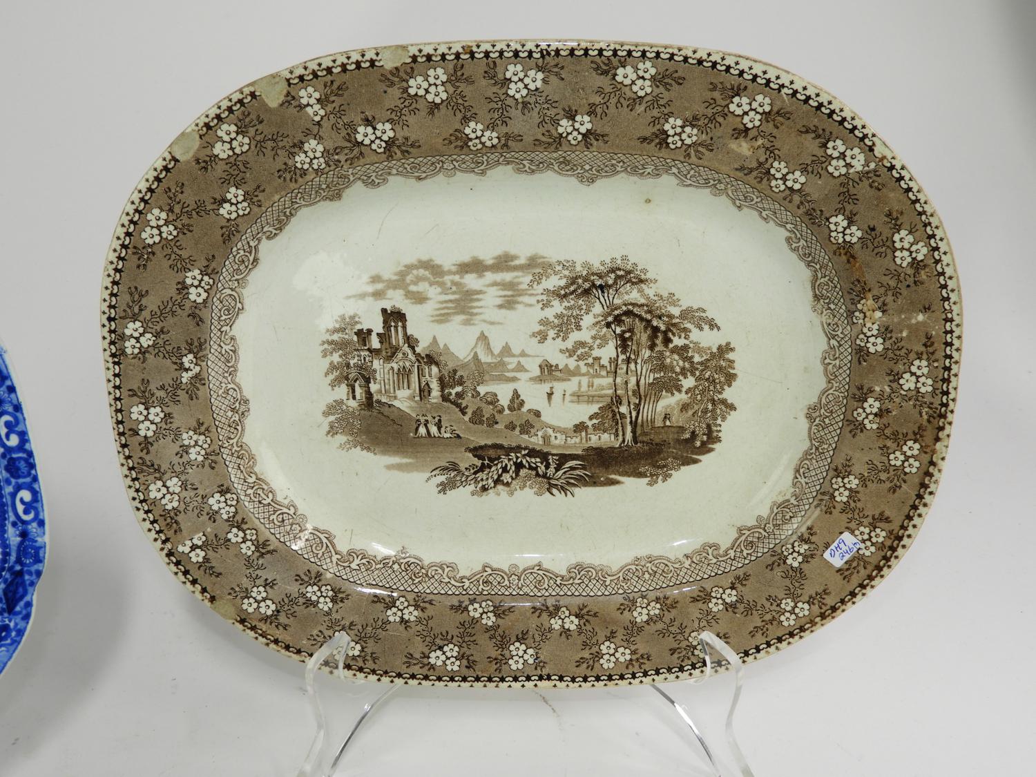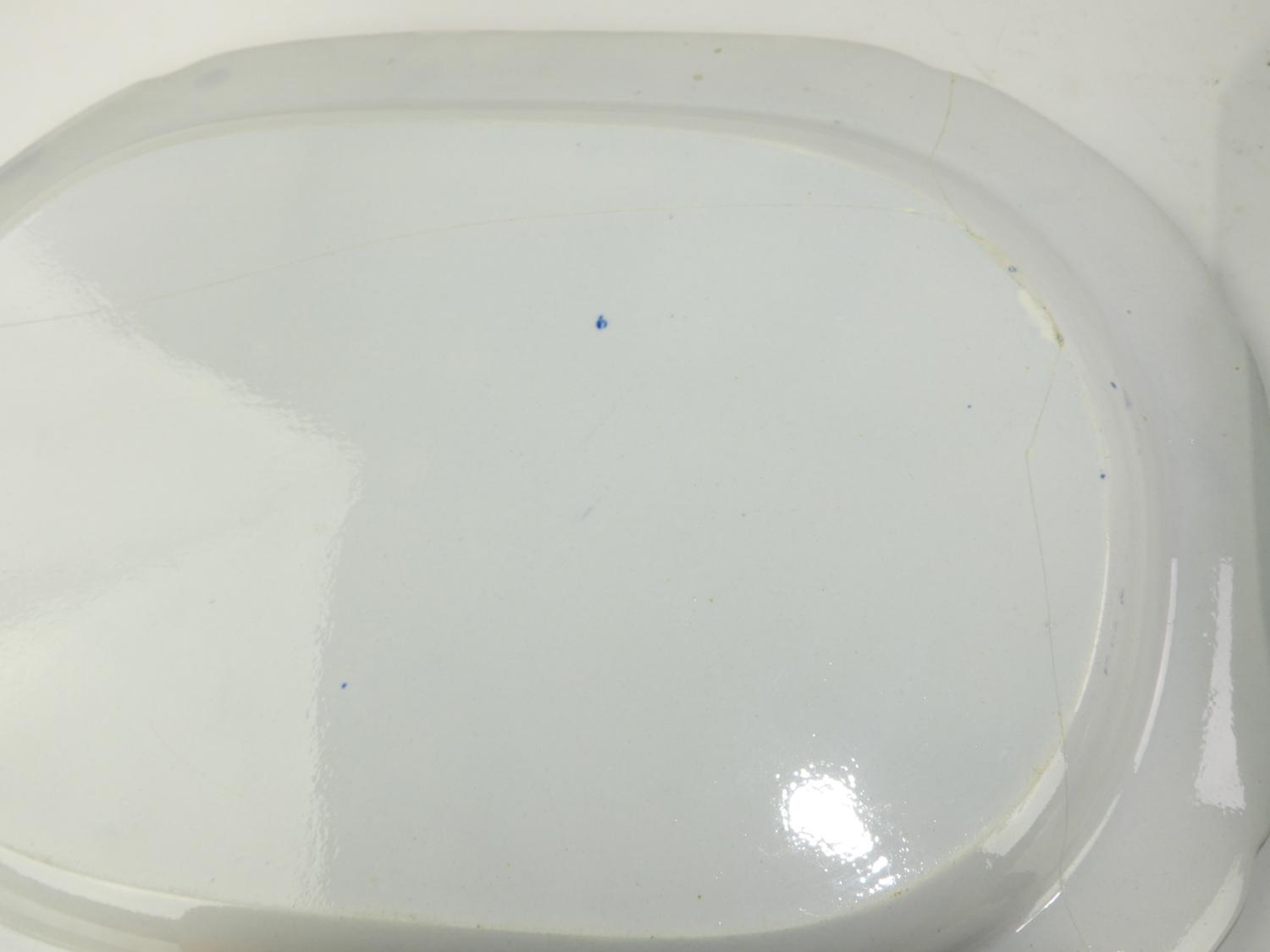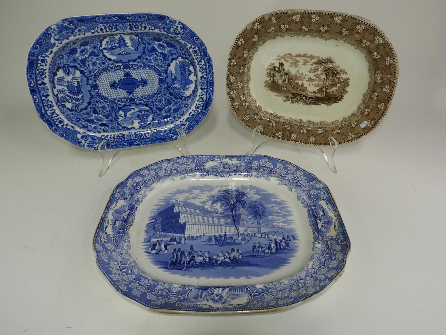 three 19th century ironstone platters, cracked, 18" x 14 3/4" and smaller