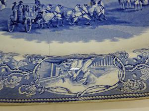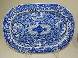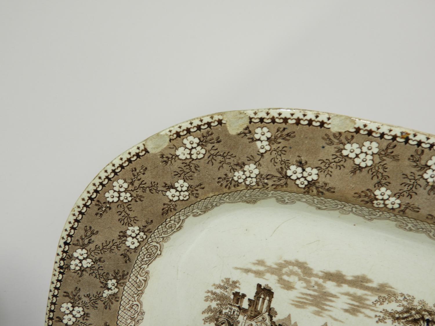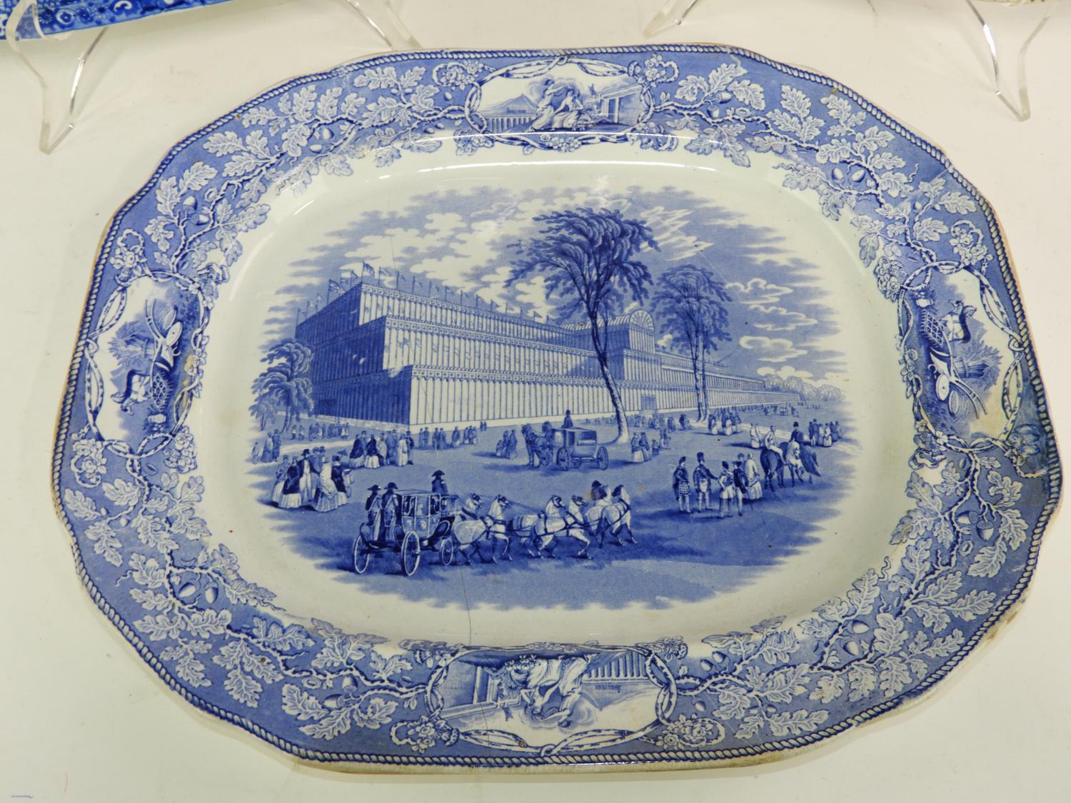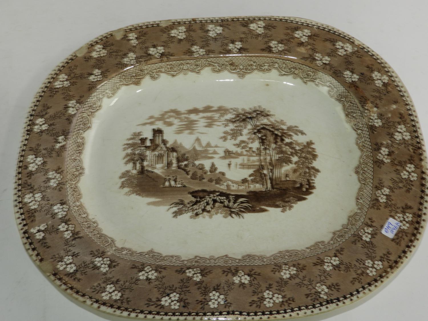 three 19th century ironstone platters, cracked, 18" x 14 3/4" and smaller