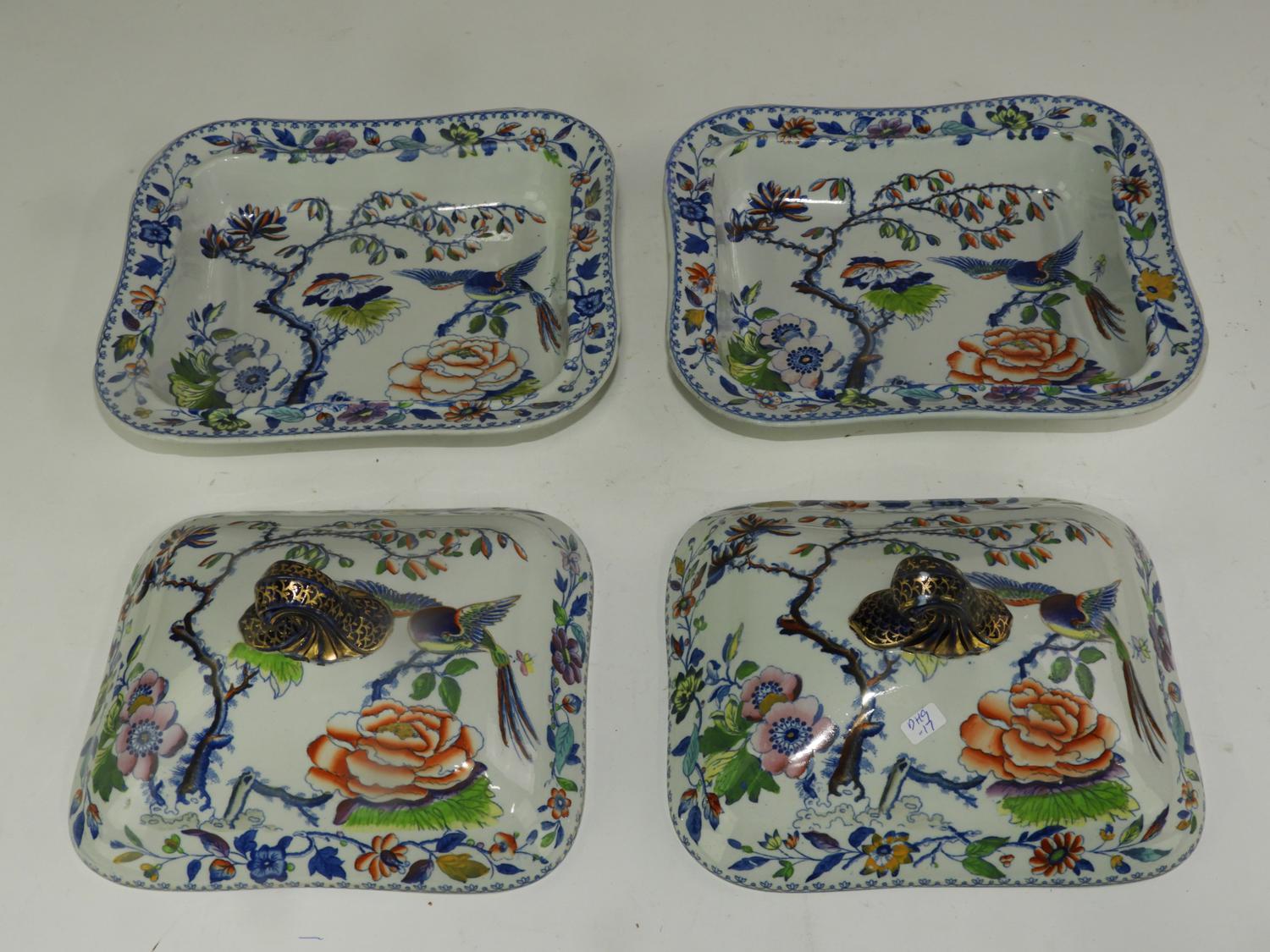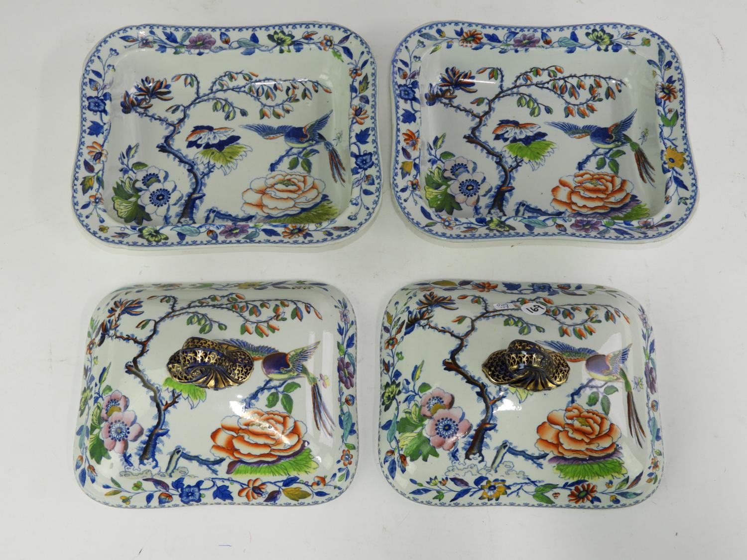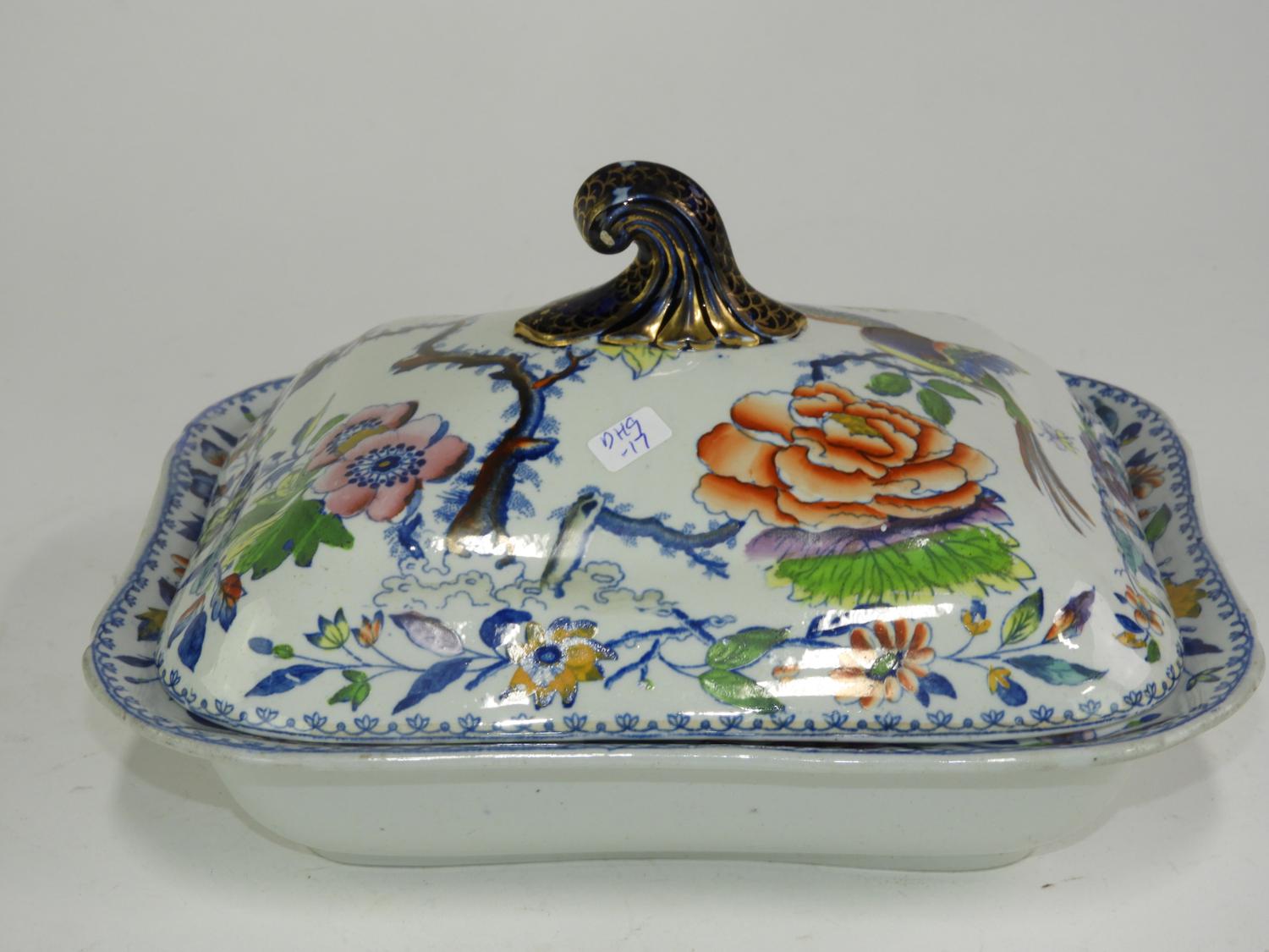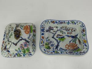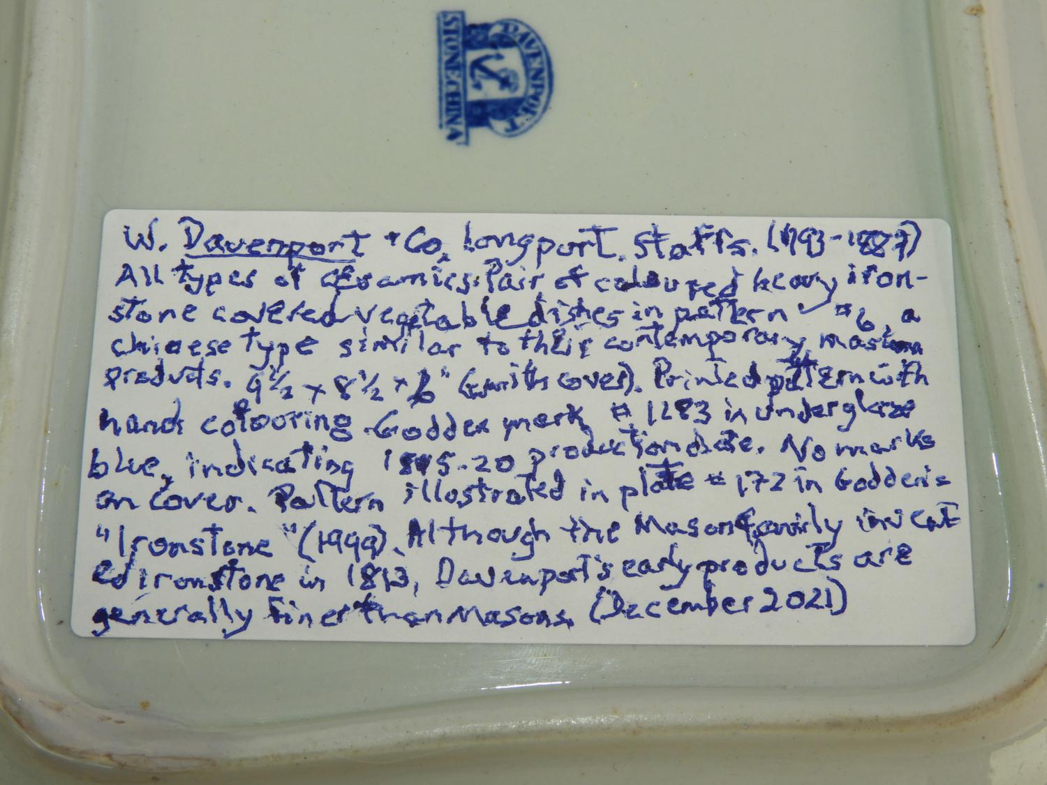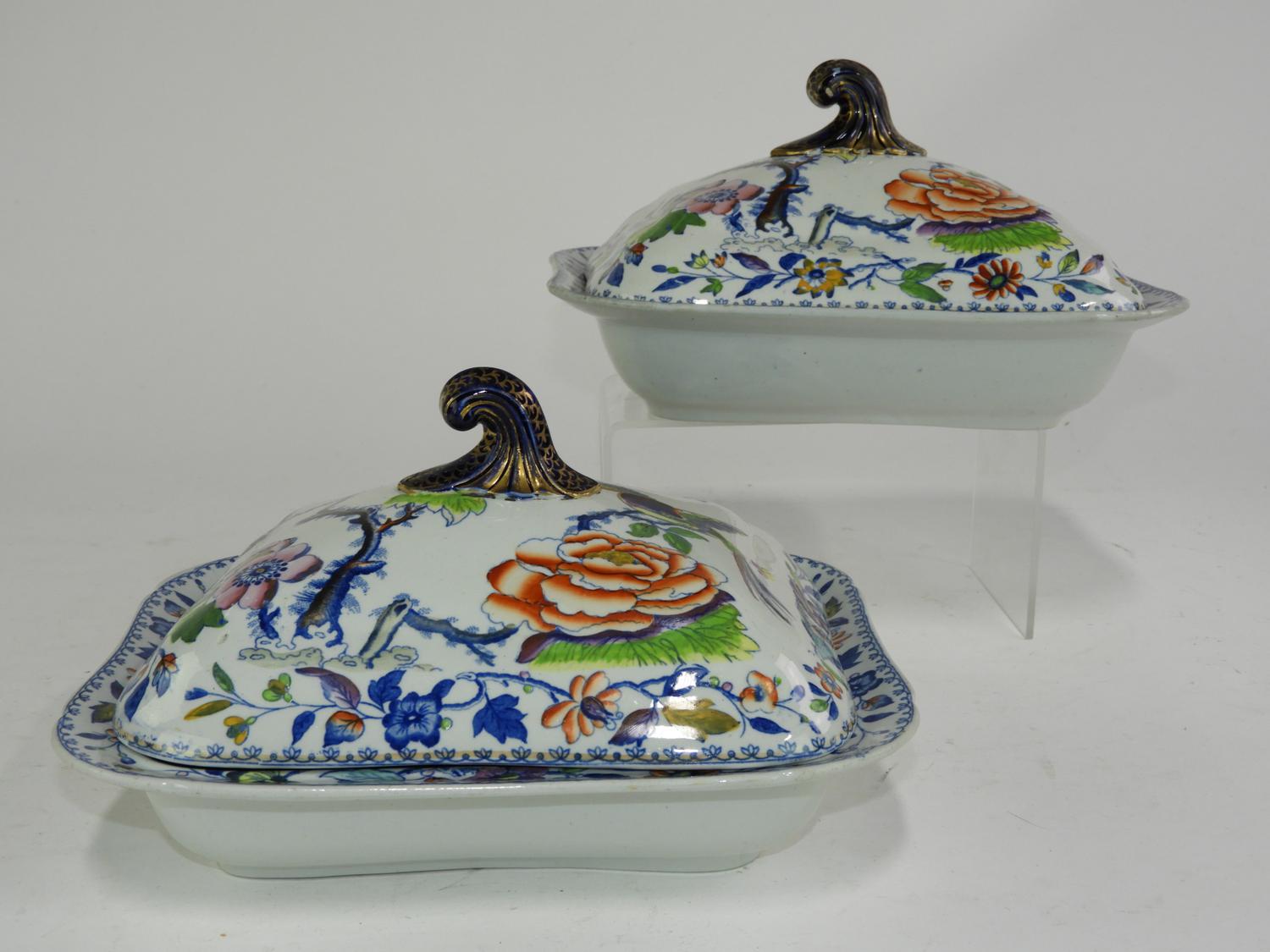 two davenport stone china covered entre dishes, 19th century, 5 1/2" x 9 1/2" x 8 1/2"