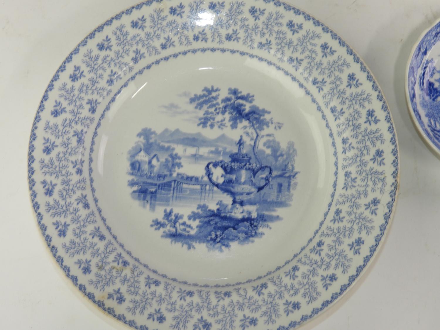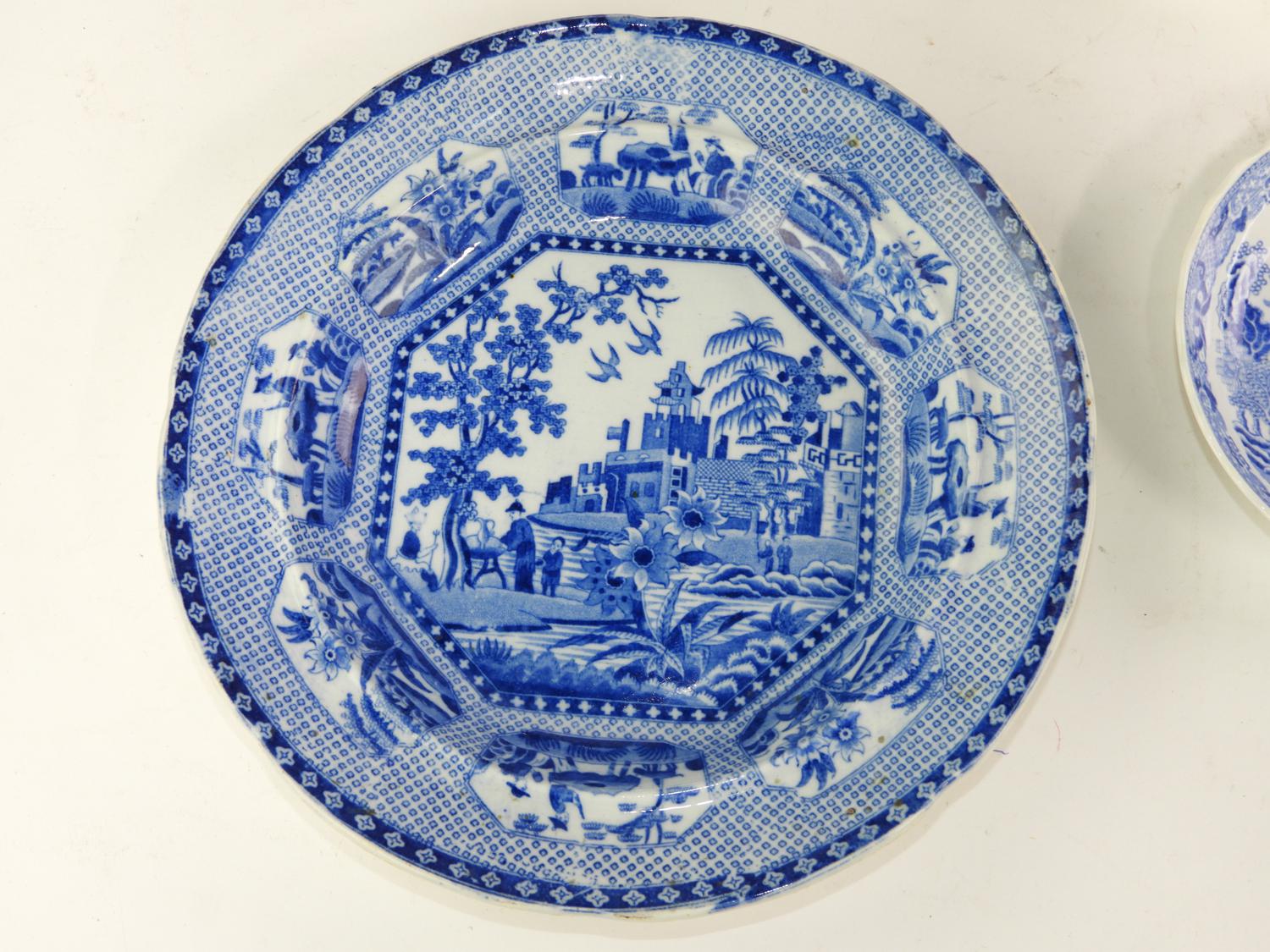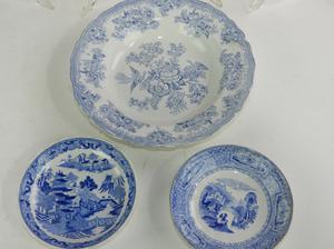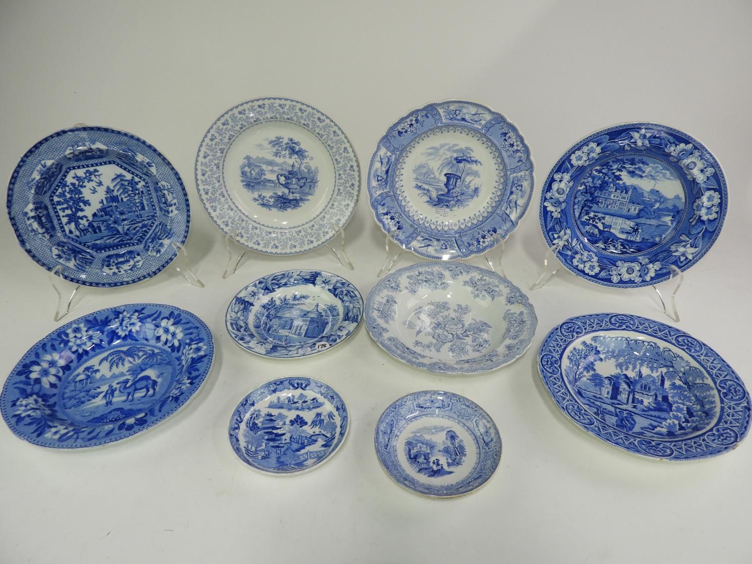 ten 19th century blue and white bowls, dia. 10 1/2" and smaller