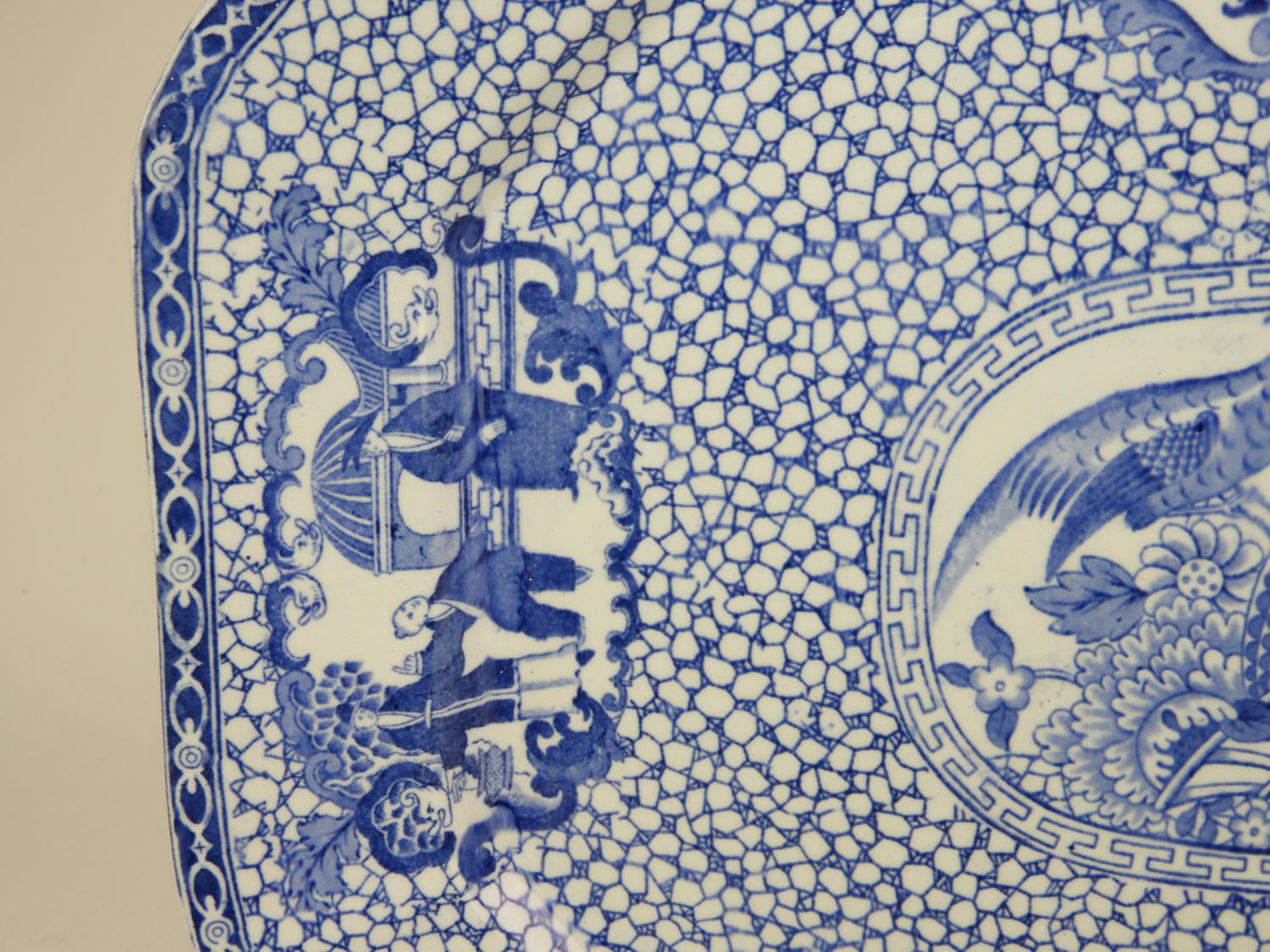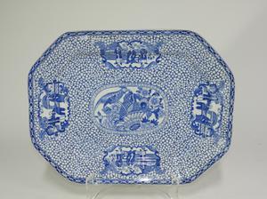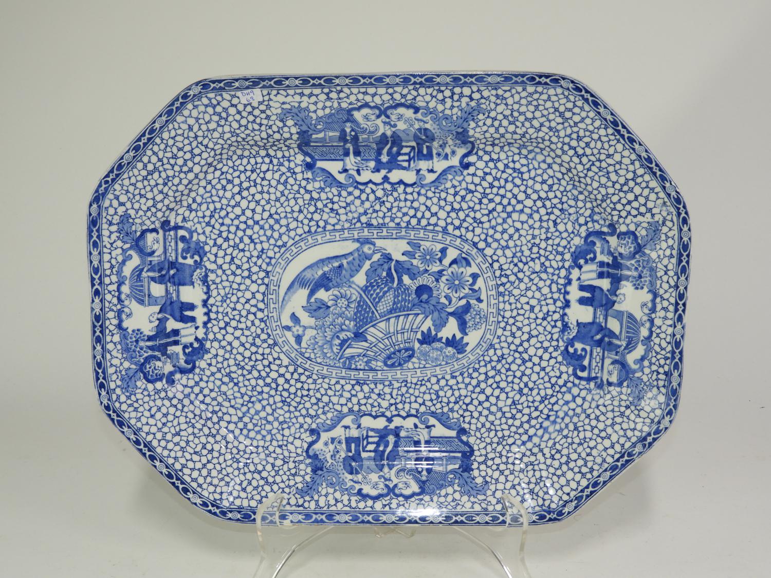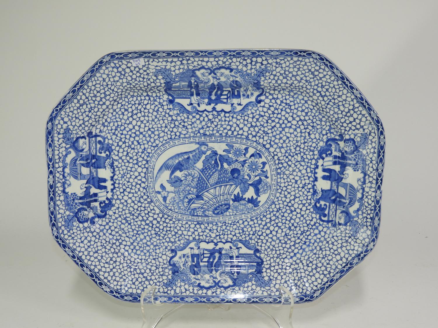 adams ironstone blue and white "oriental motif pattern" platter 17" x 13"