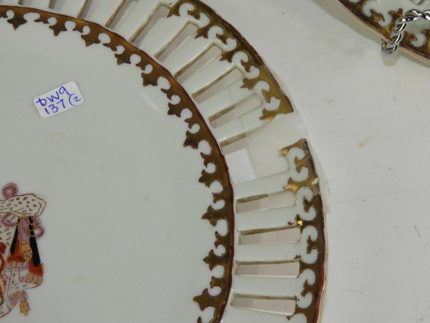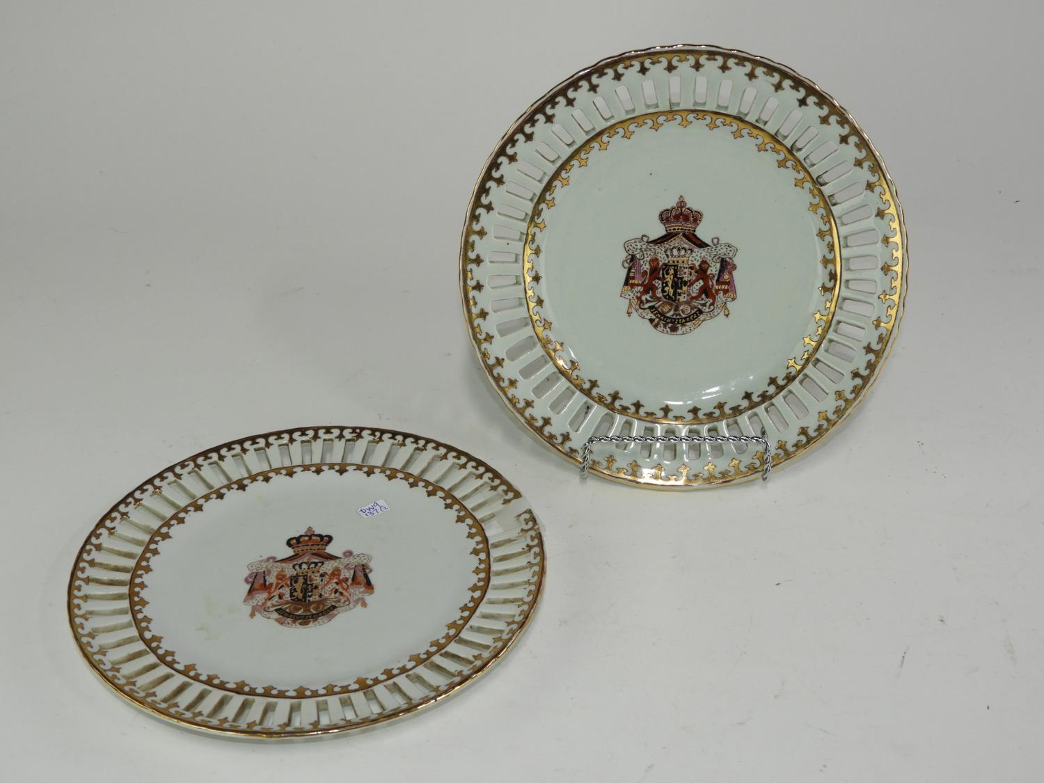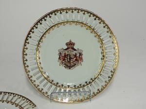 19th century coat of arms pierced dish with another, broken, diameter 9 1/2"