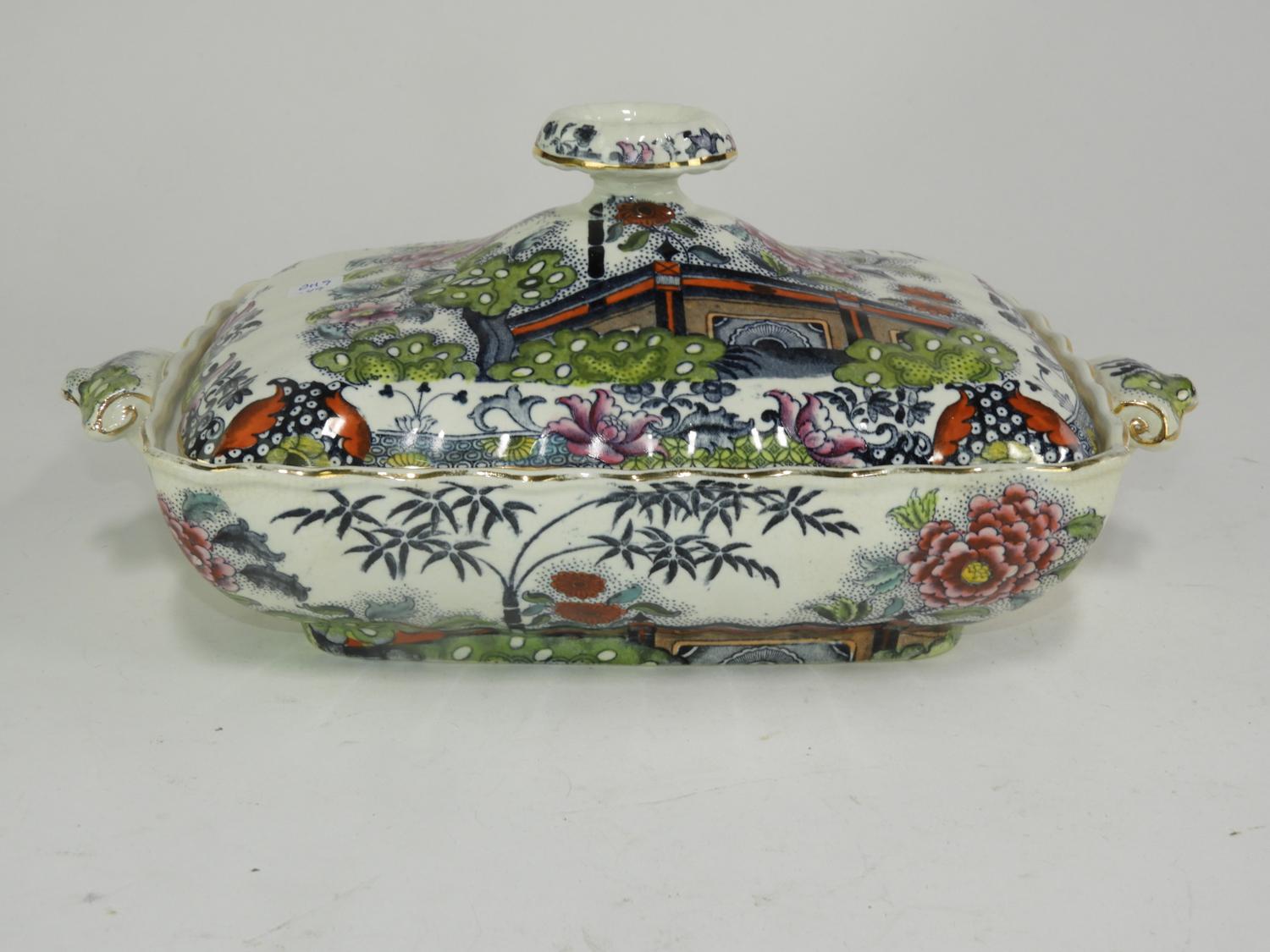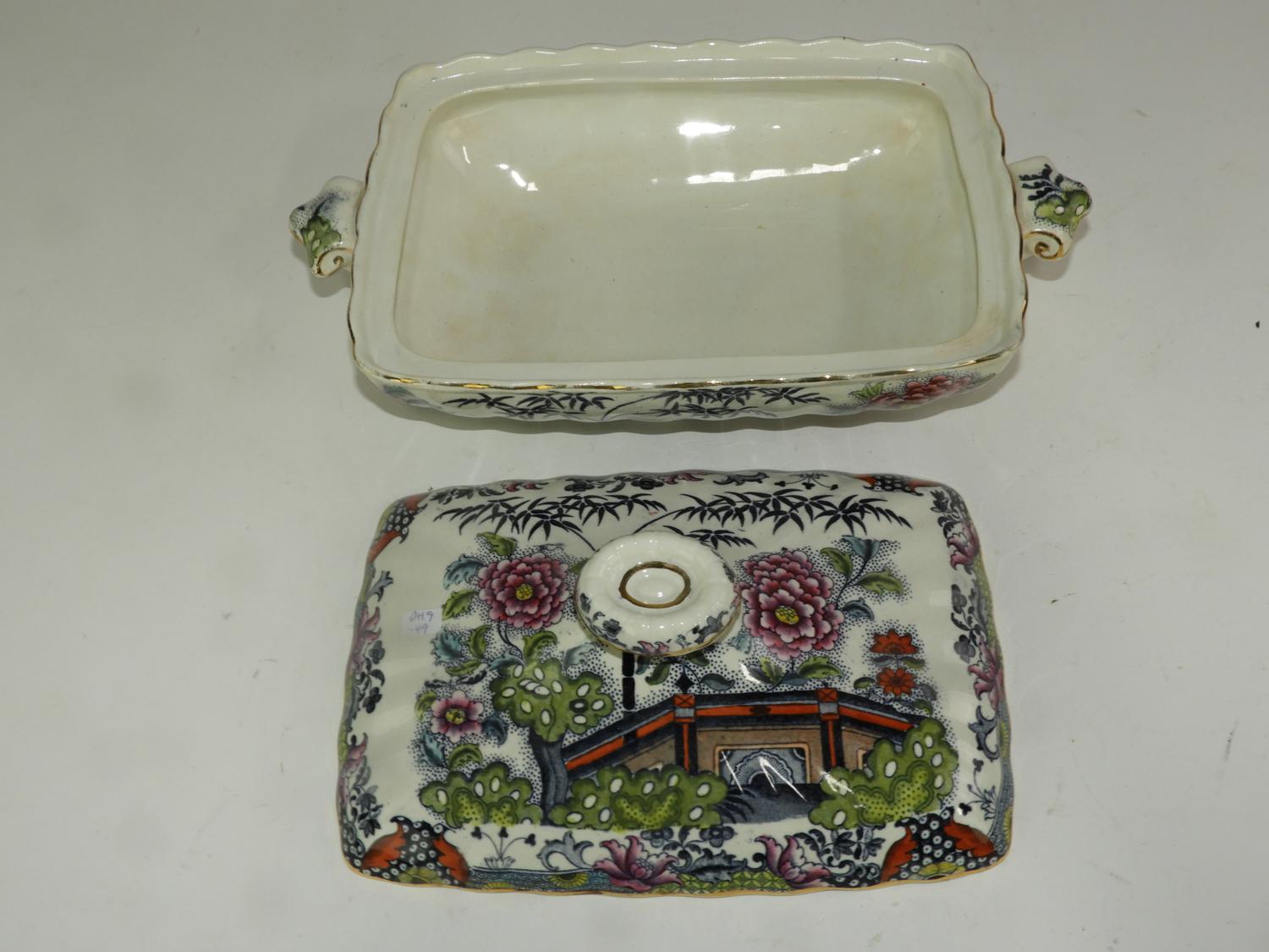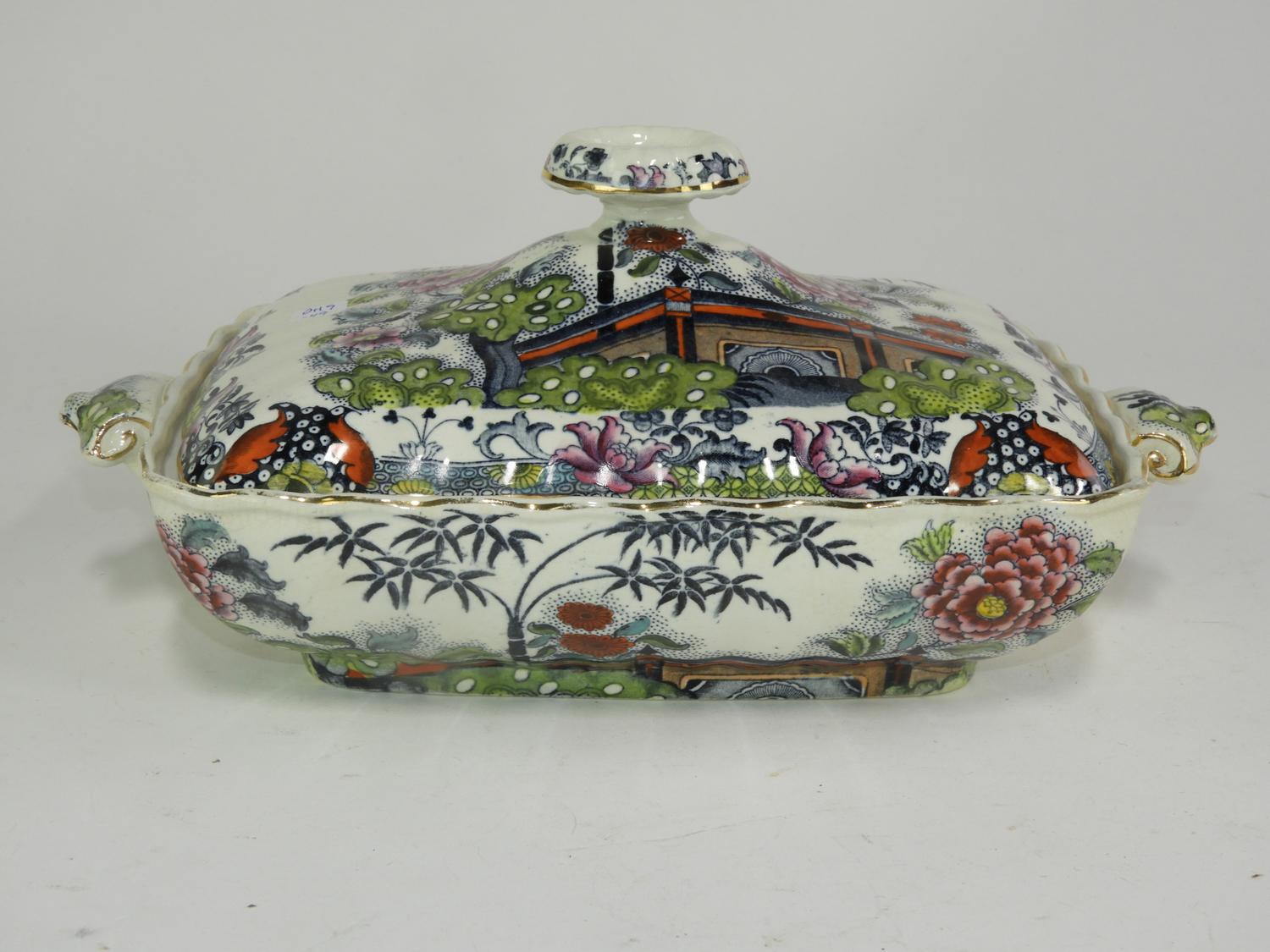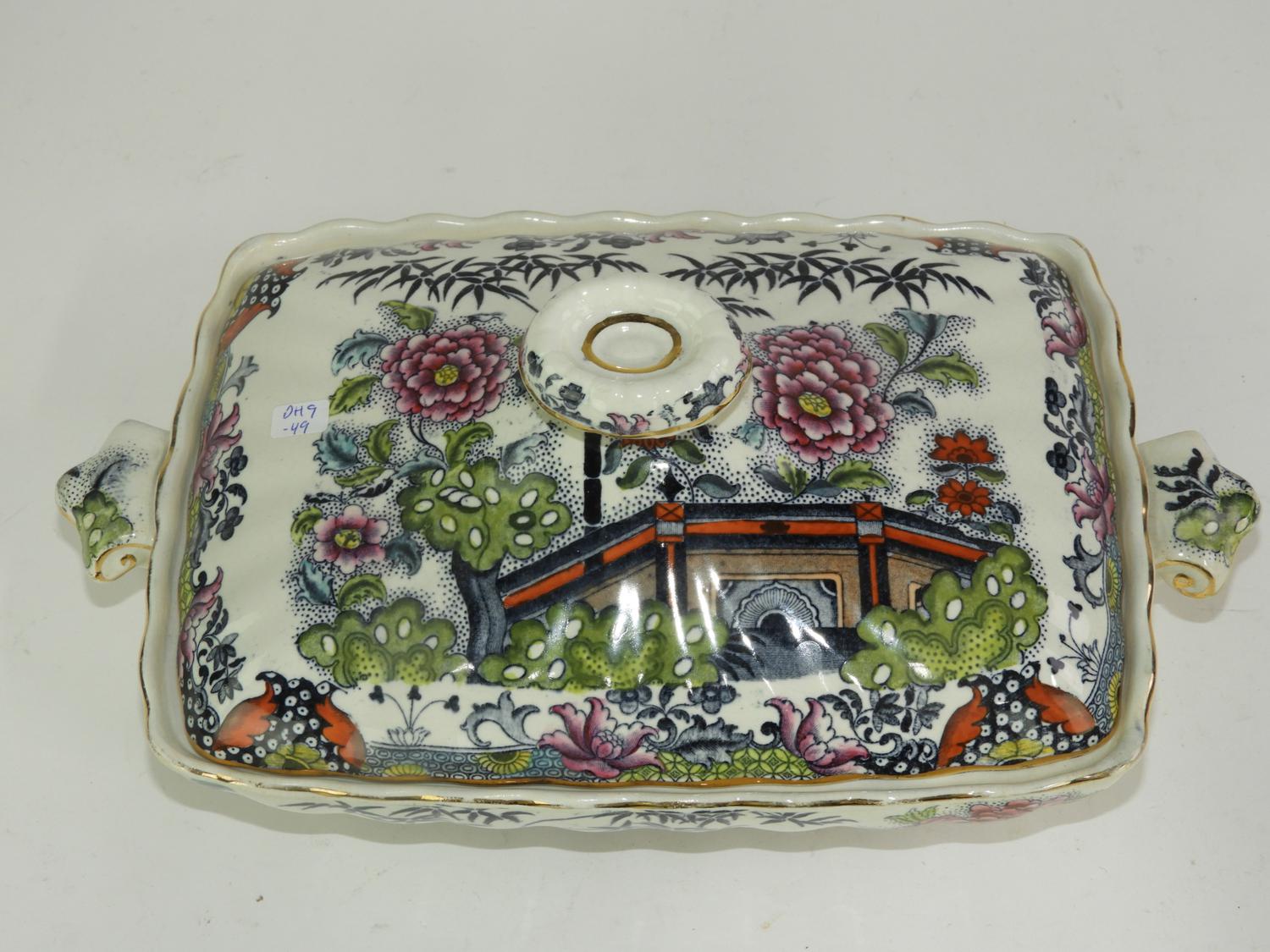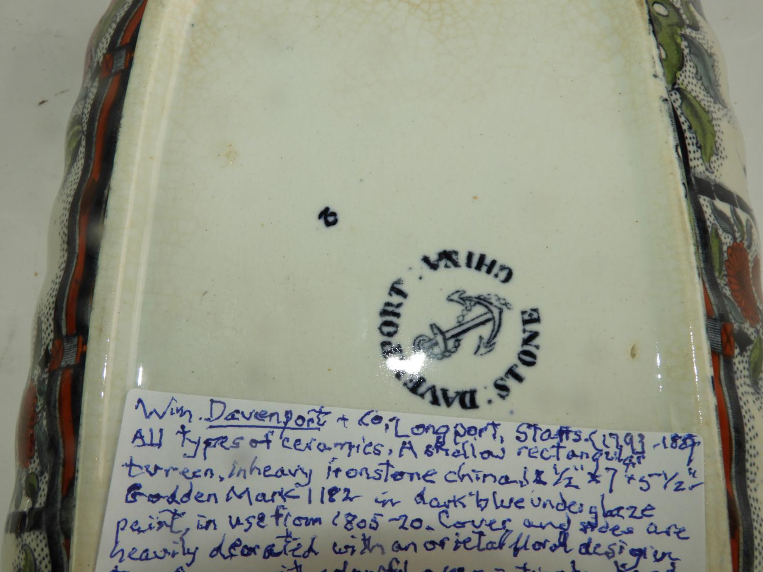 davenport stone china covered entre dish, 19th century, 5 1/2" x 12" x 7 1/2"