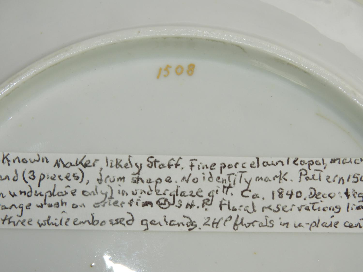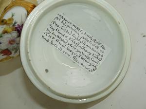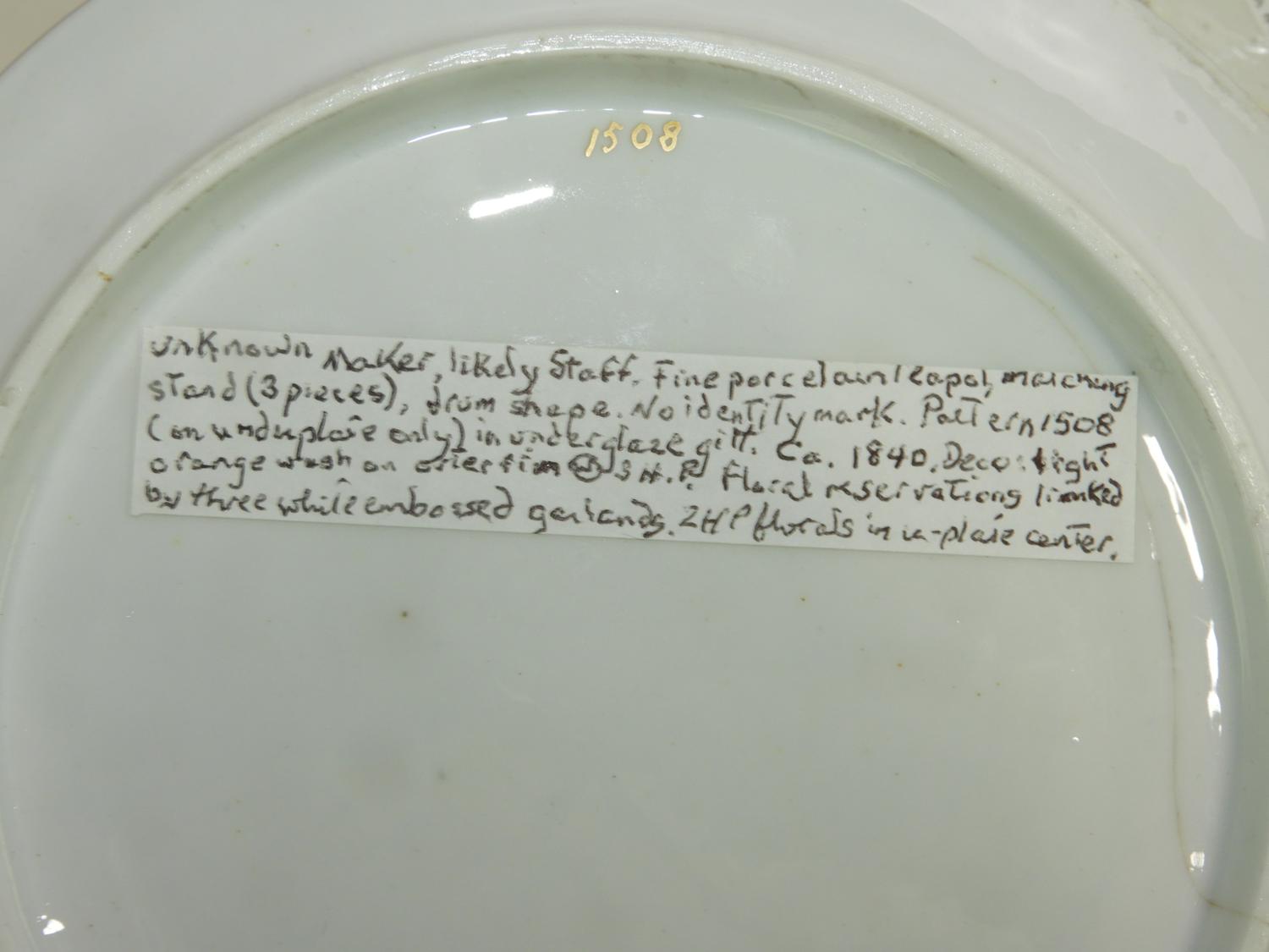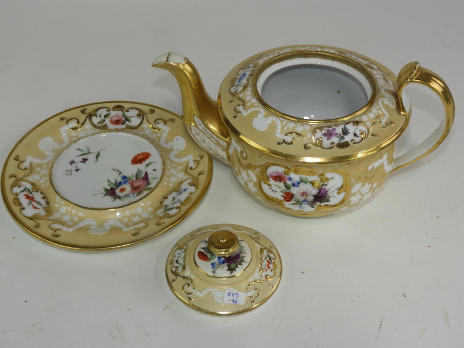 mid 19th century staffordshire tea pot on stand, 6 1/2" x 10"