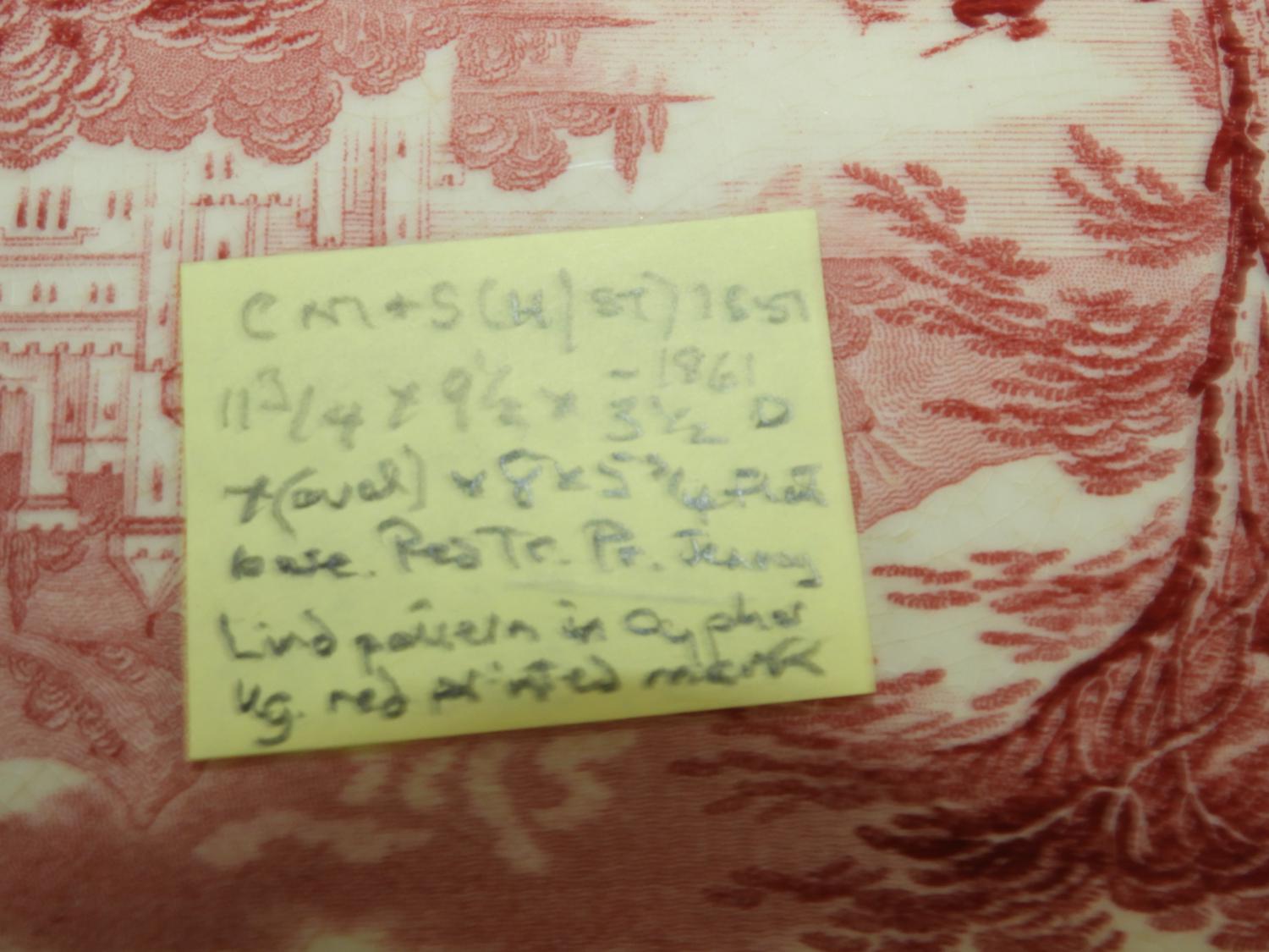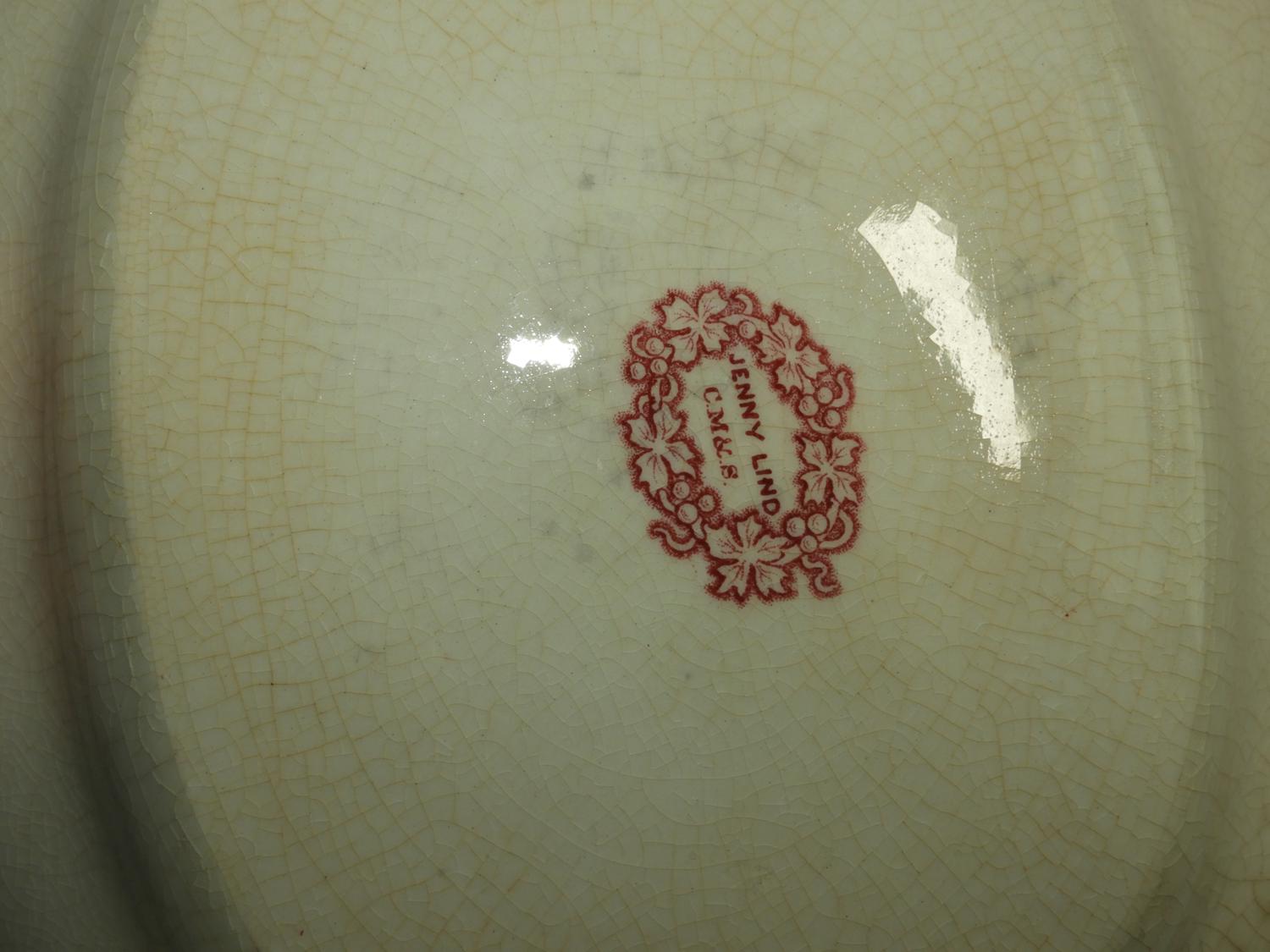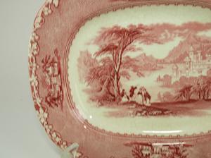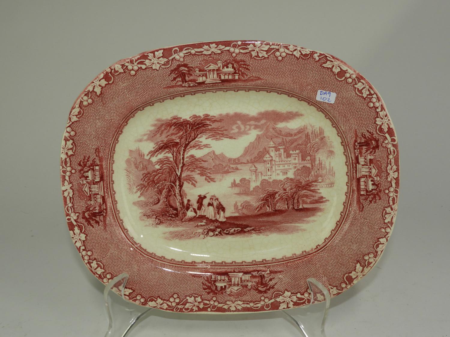 19th century red jenny lind pattern side platter 11 1/2" x 9 1/2"