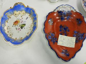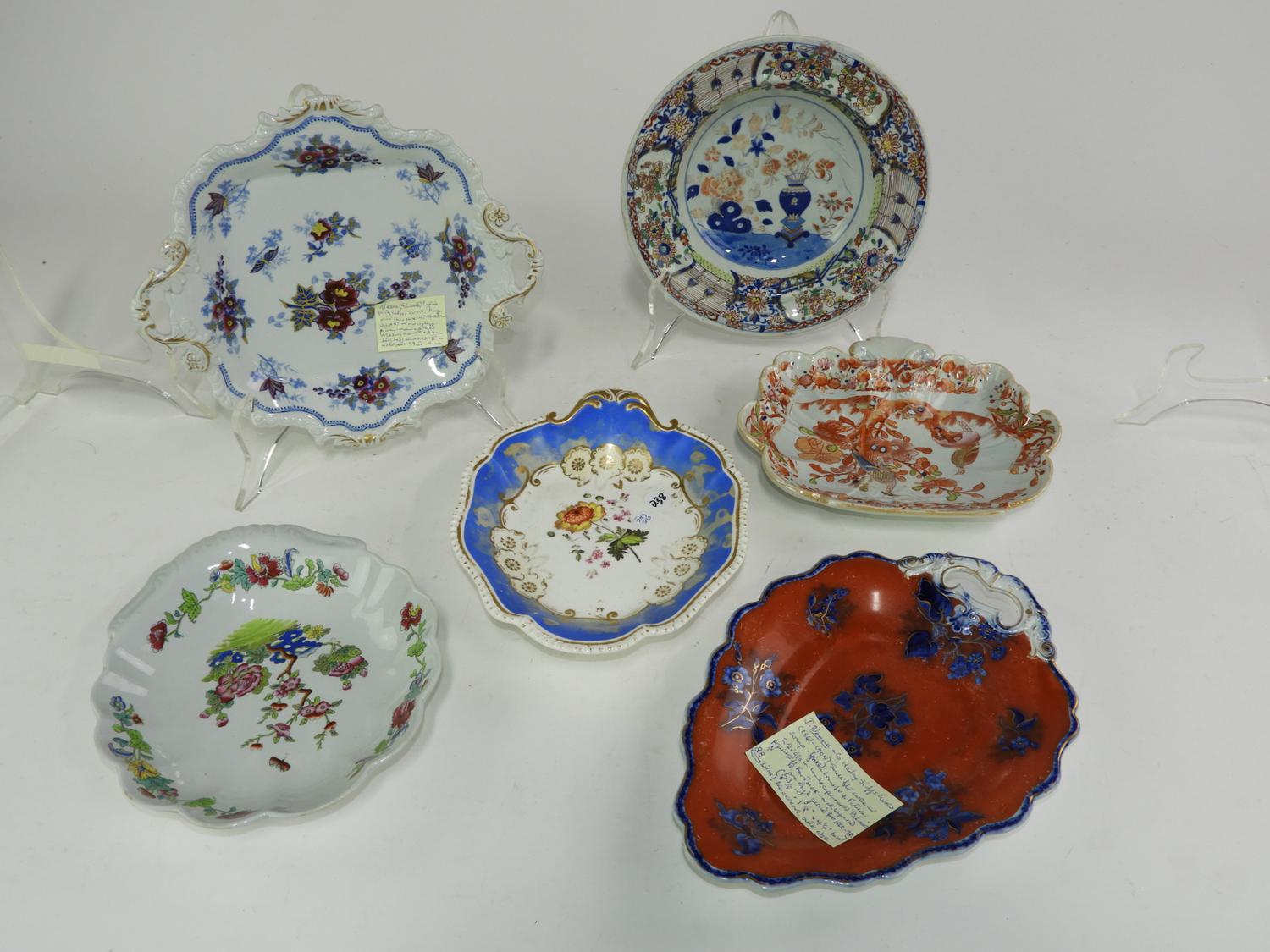 six 19th century shapes dishes including mason's and spode, length 11" and smaller