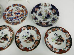 eight 19th century mason's ironstone plates, dia. 10 1/2" and smaller