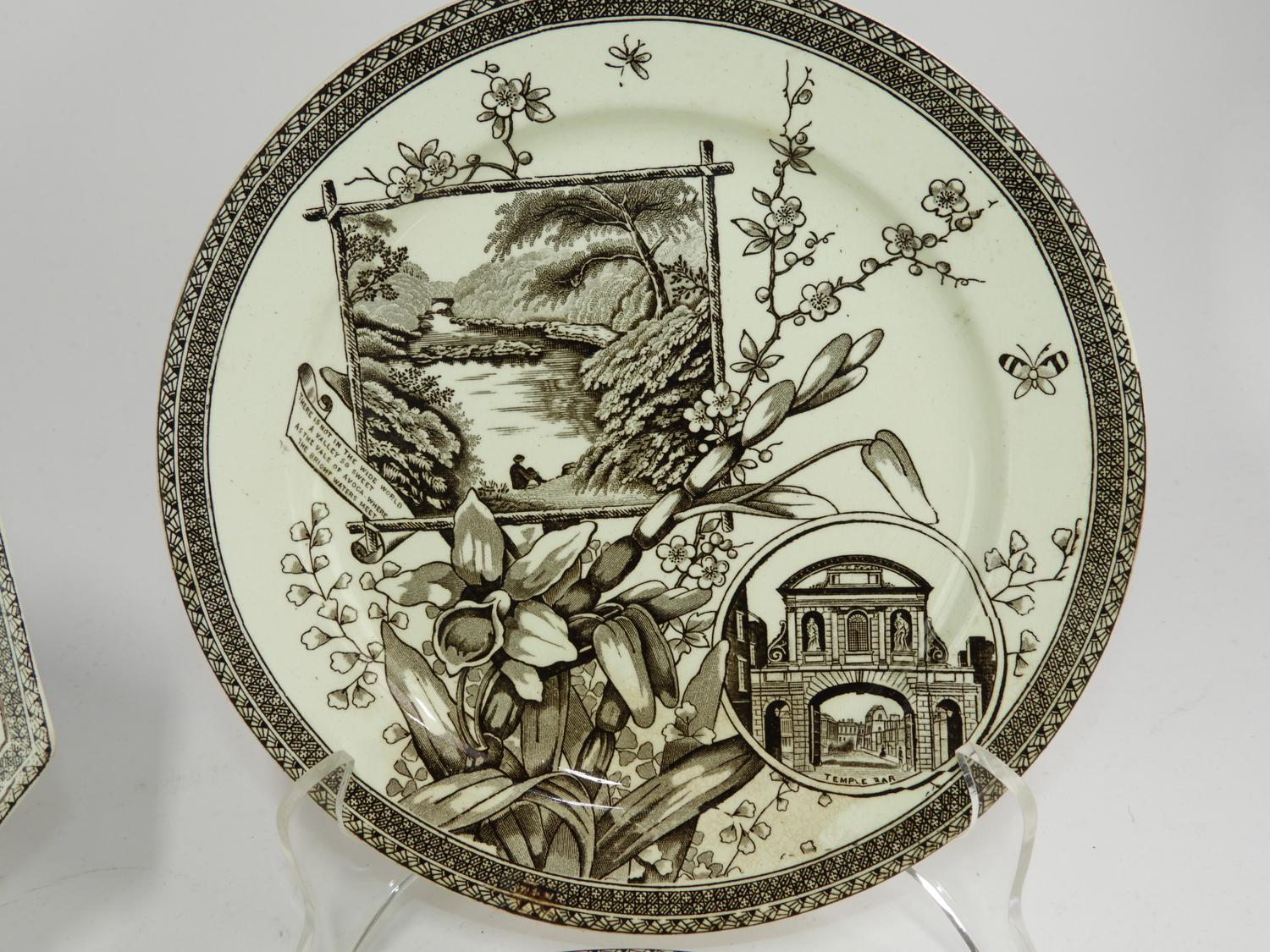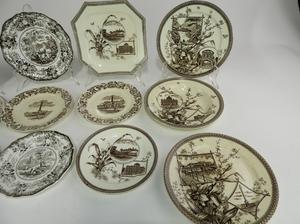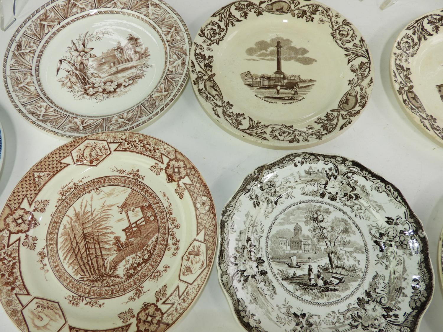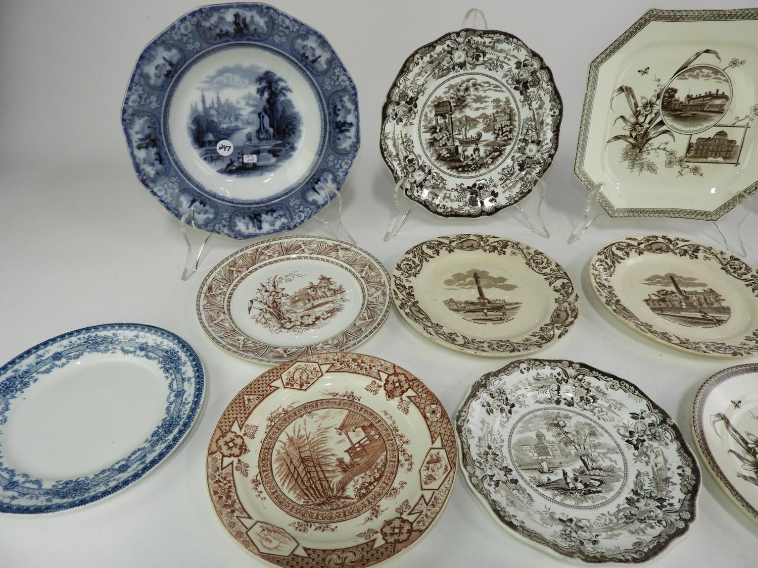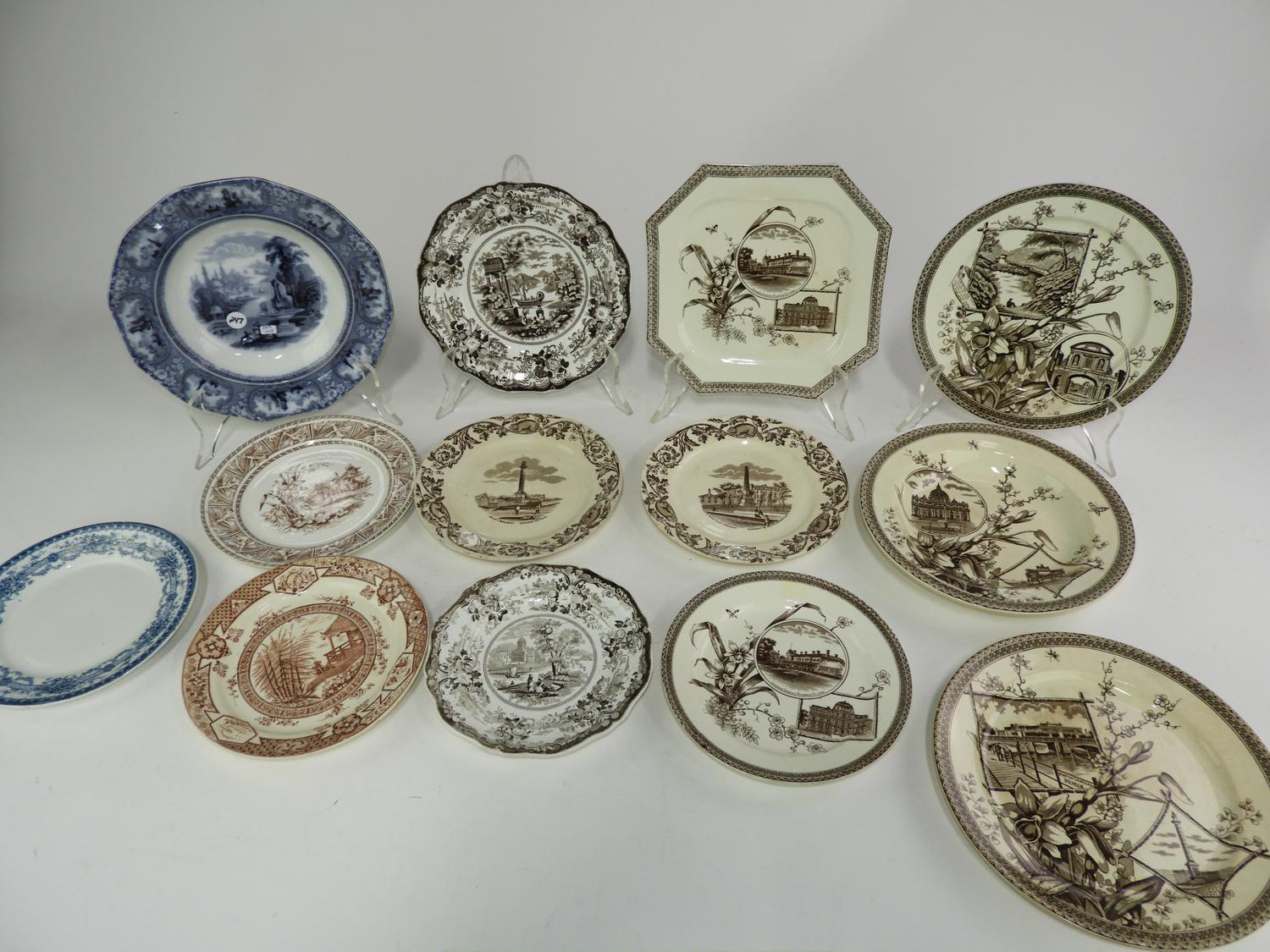 thirteen 19th century transfer print plates and bowls, dia. 10 1/4" and smaller