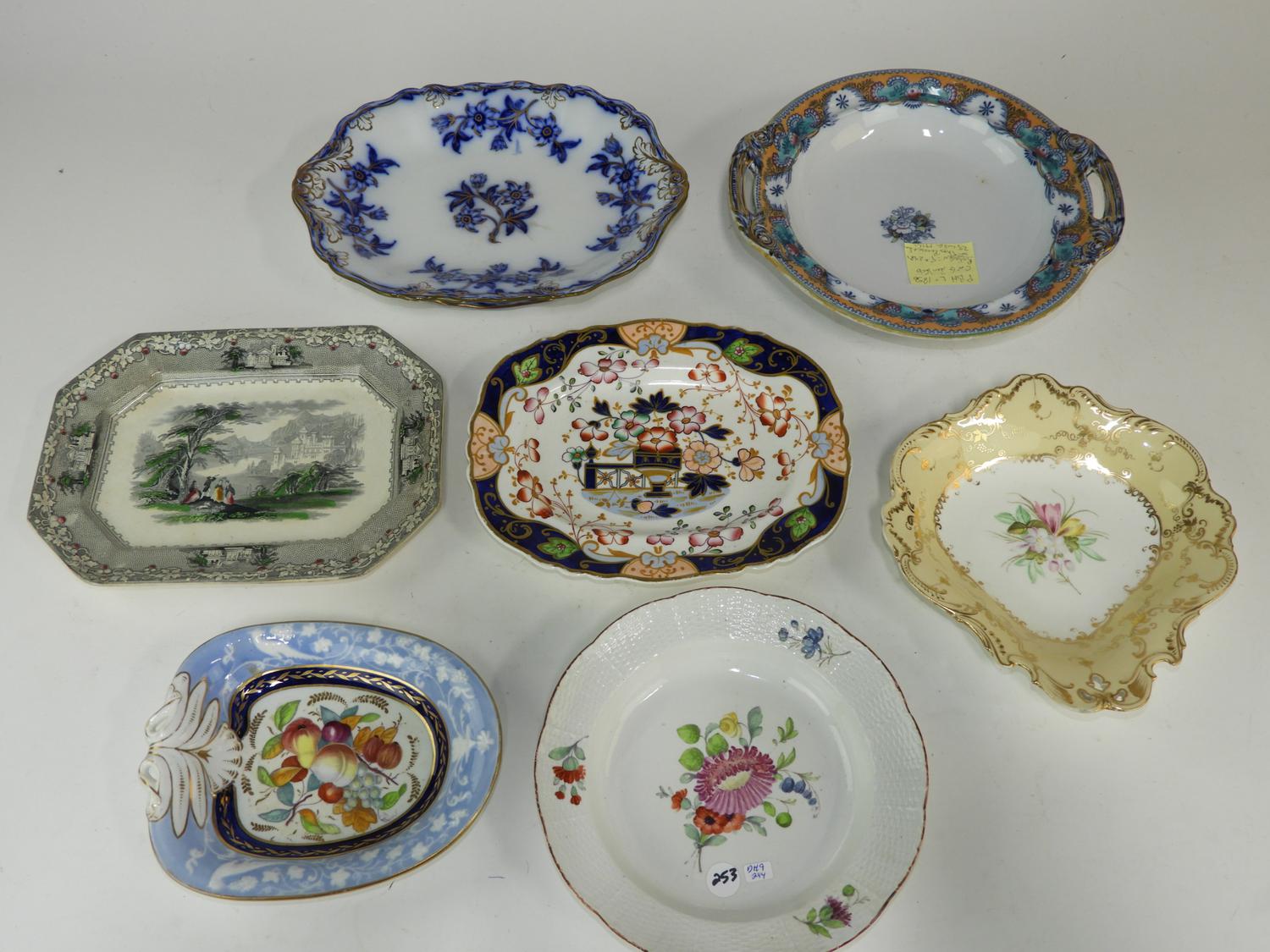 seven 19th century pedestal bowls and dishes, 2 1/2" x 11 1/2" and smaller
