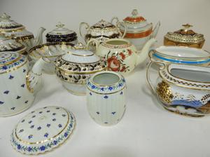 lot of tea pots,sugar bowls etc.