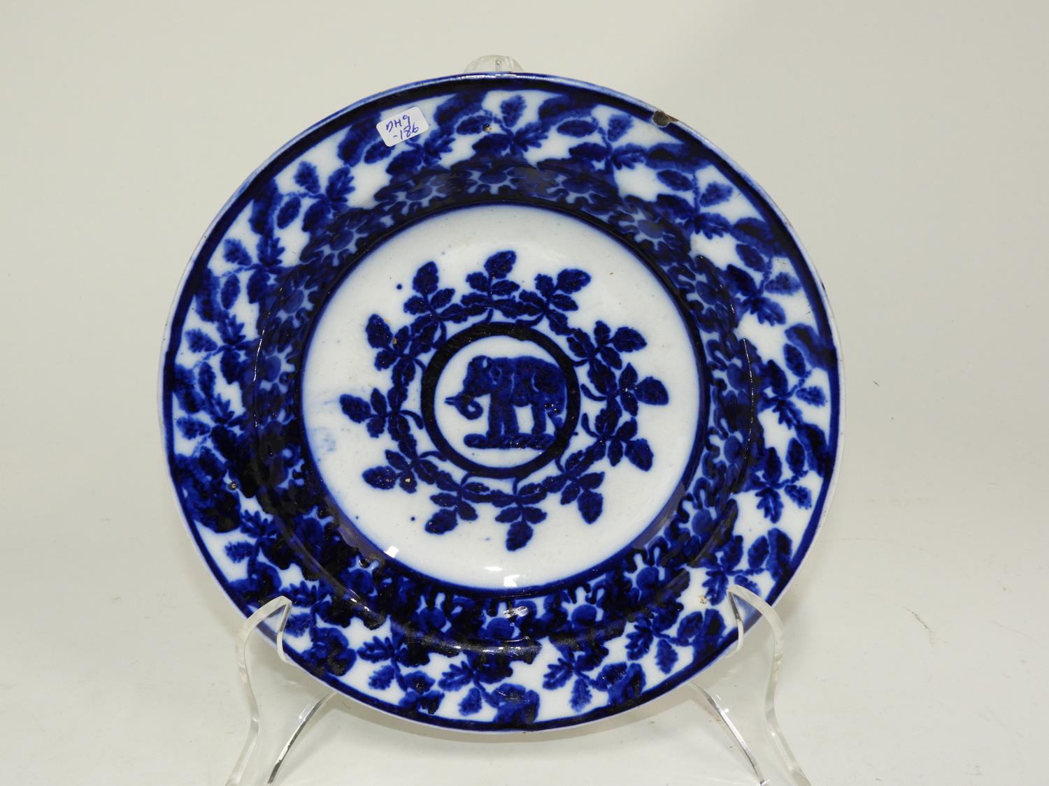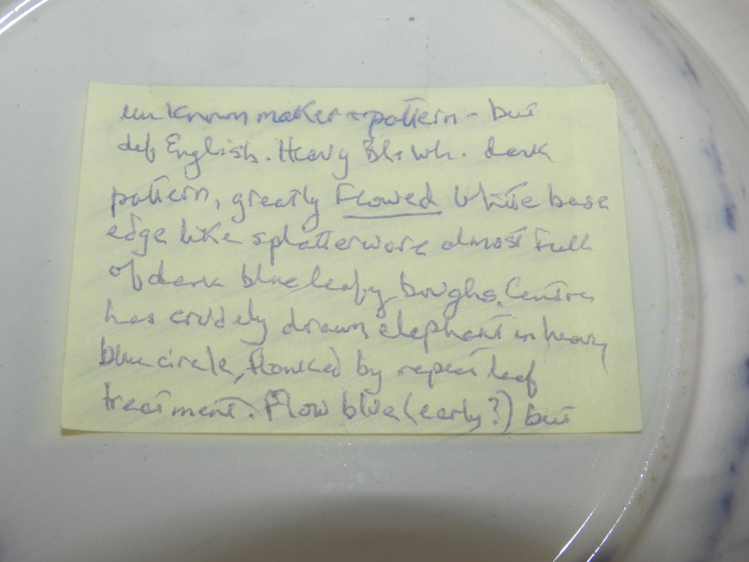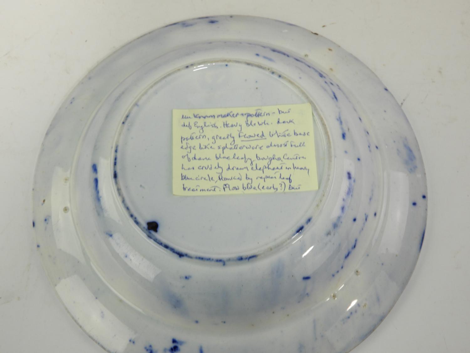 early 19th century flow blue "elephant" bowl, chip, 2" x 9 1/2"