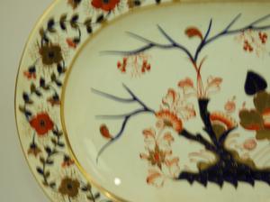 19th century derby oval platter imari style pattern , 14" x 10 1/4"