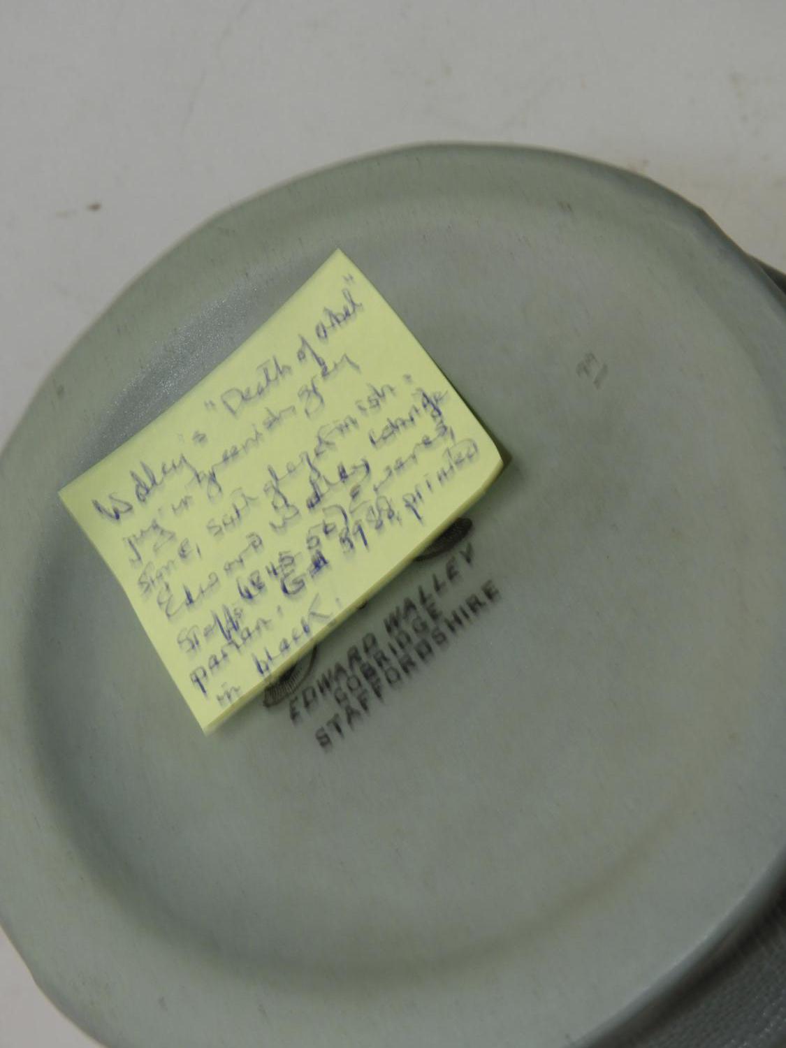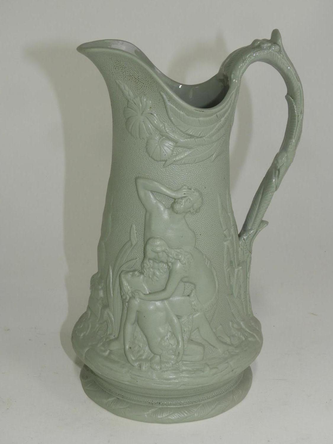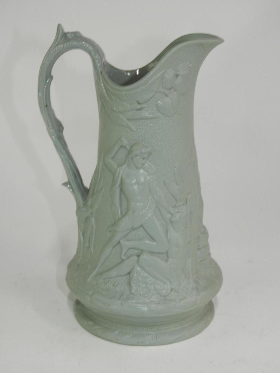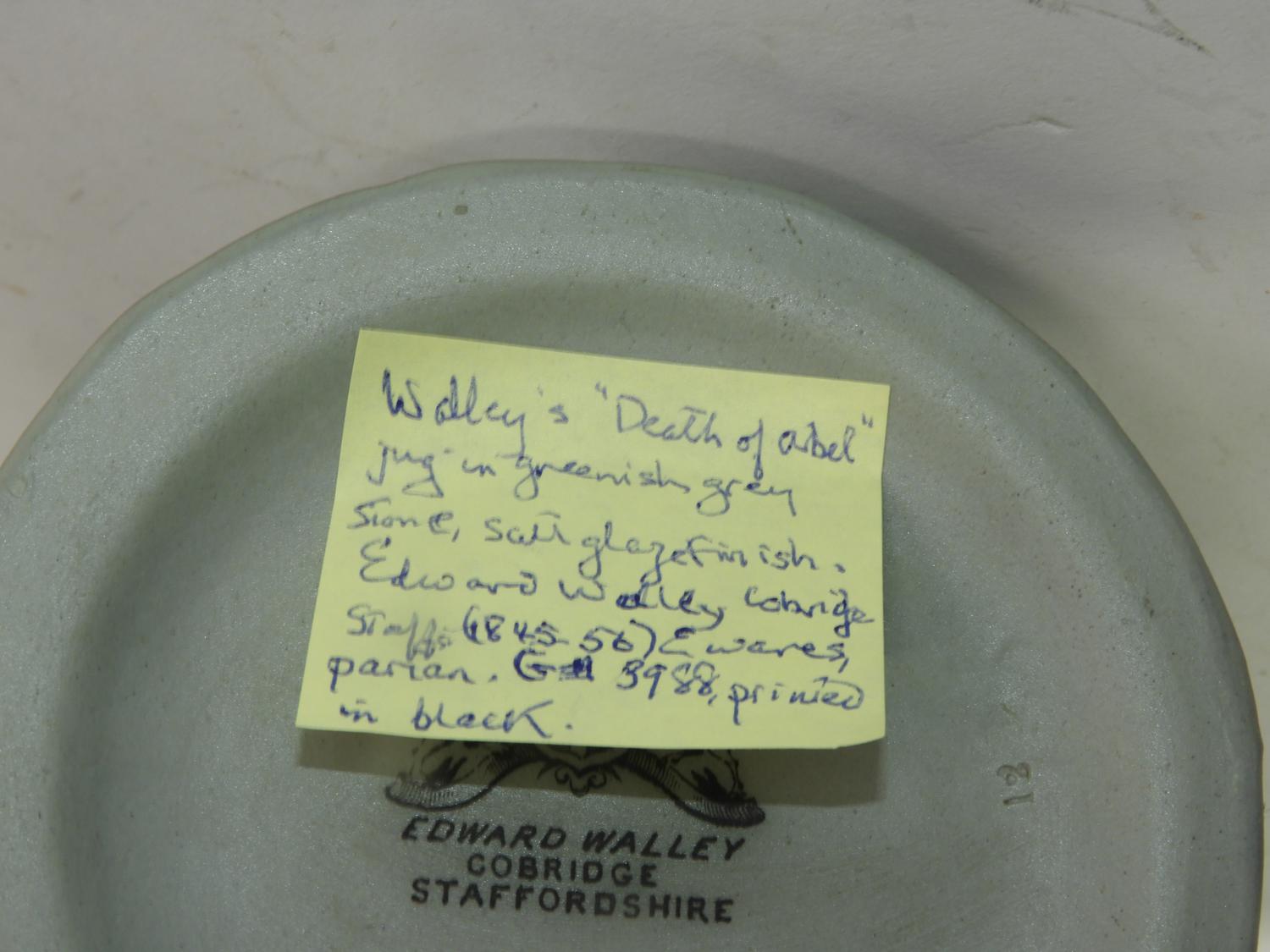 edward walley staffordshire embossed salt glazed "death of abel" pitcher, ht. 10"
