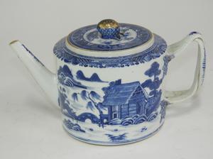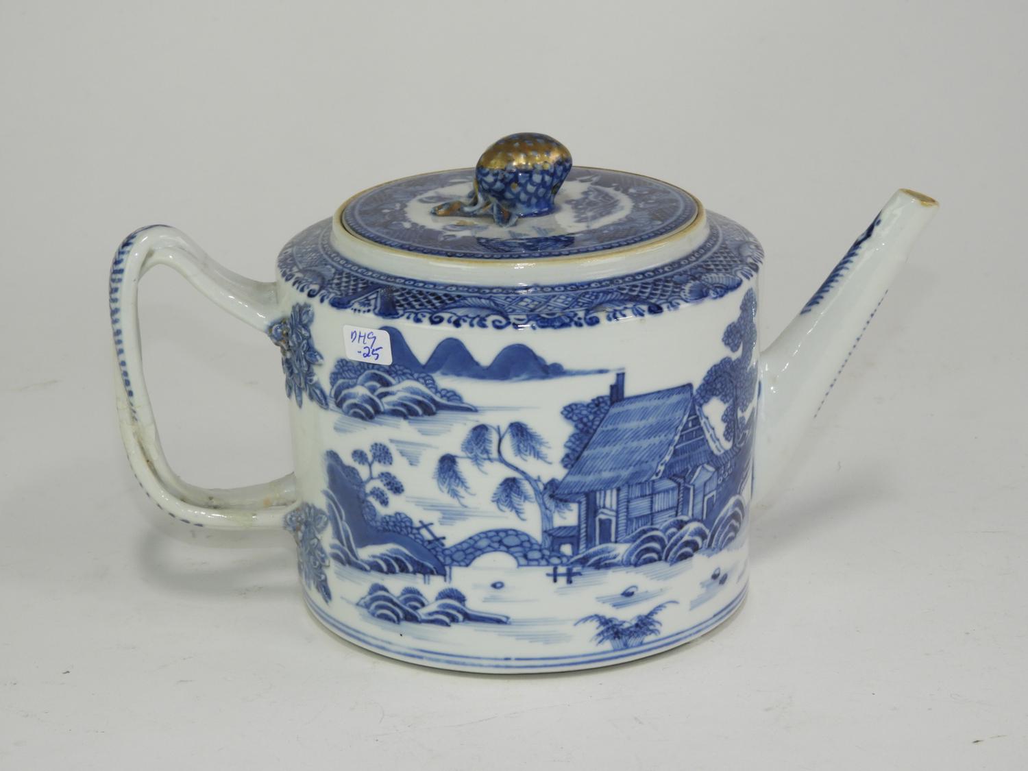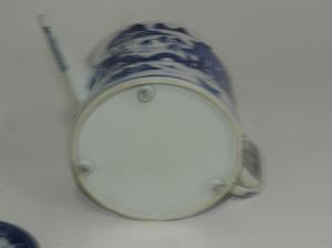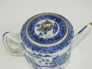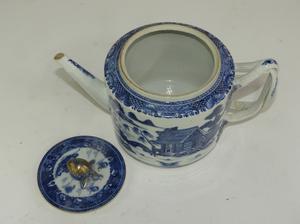 early 19th century blue and white tea pot, 6" x 9 1/2"