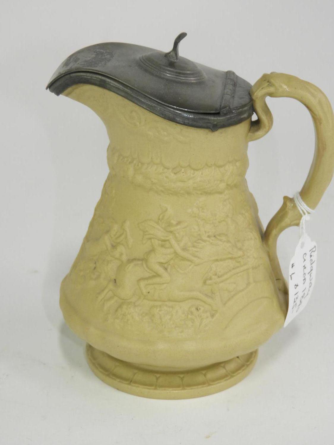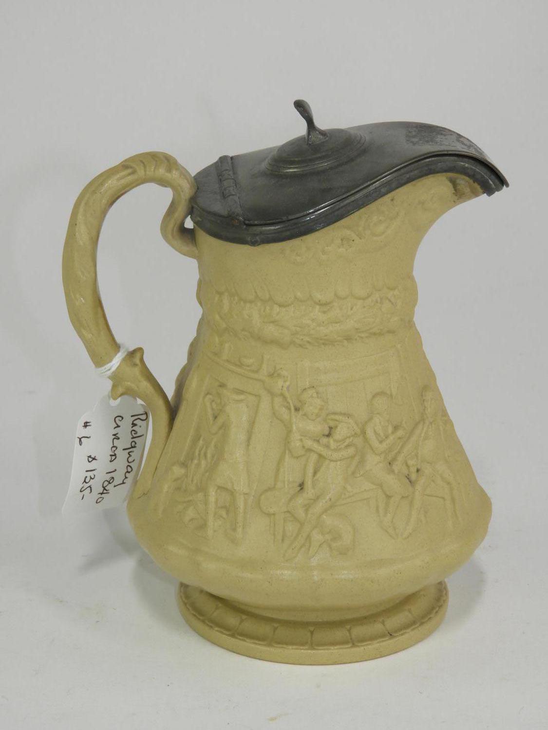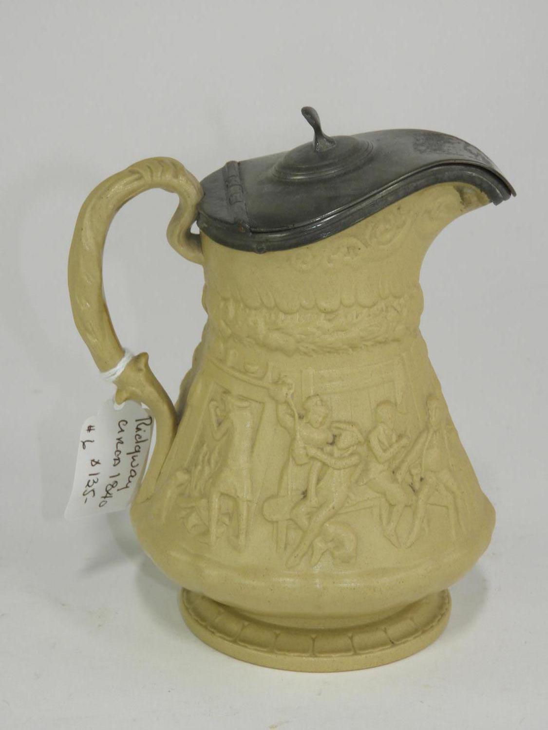 ridgeway salt glazed pitcher with pewter top, ht. 7"