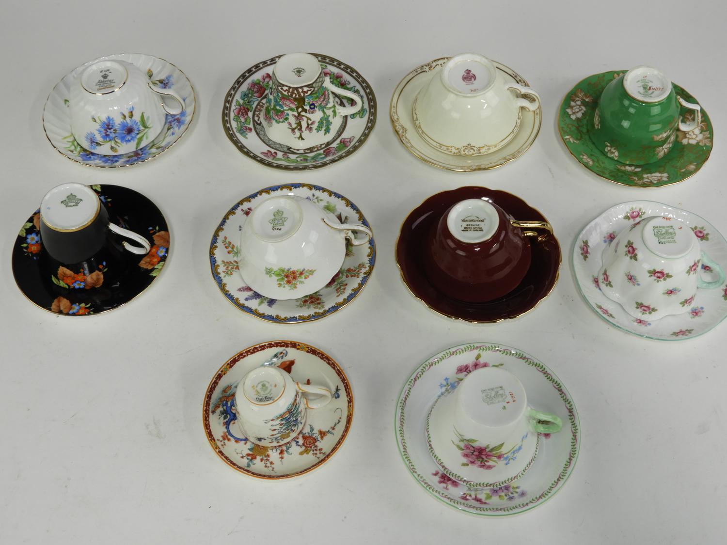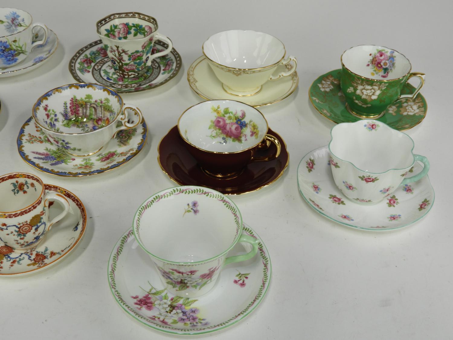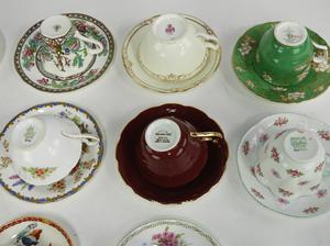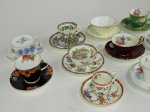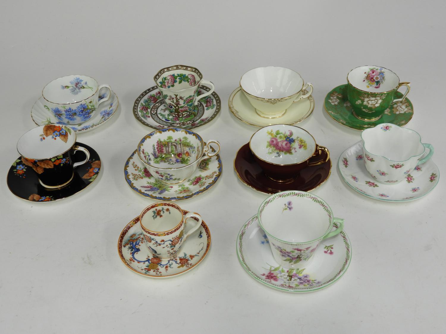 lot of 10 teacups and saucers including shelley , aynsley and coalport