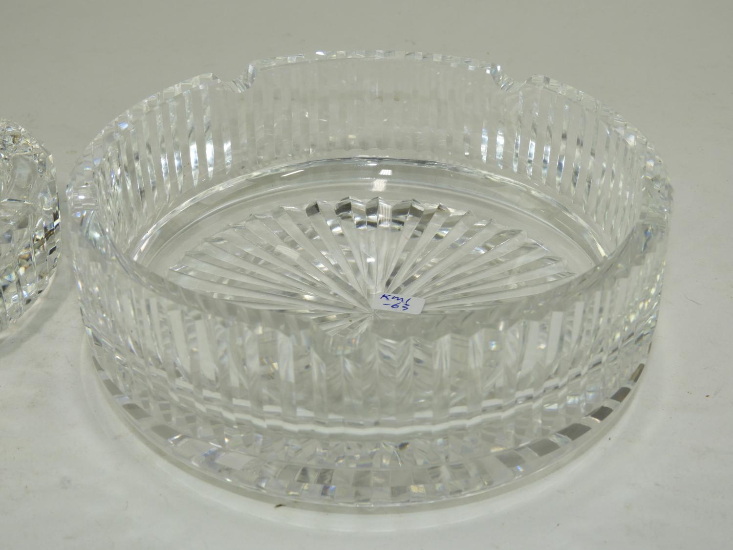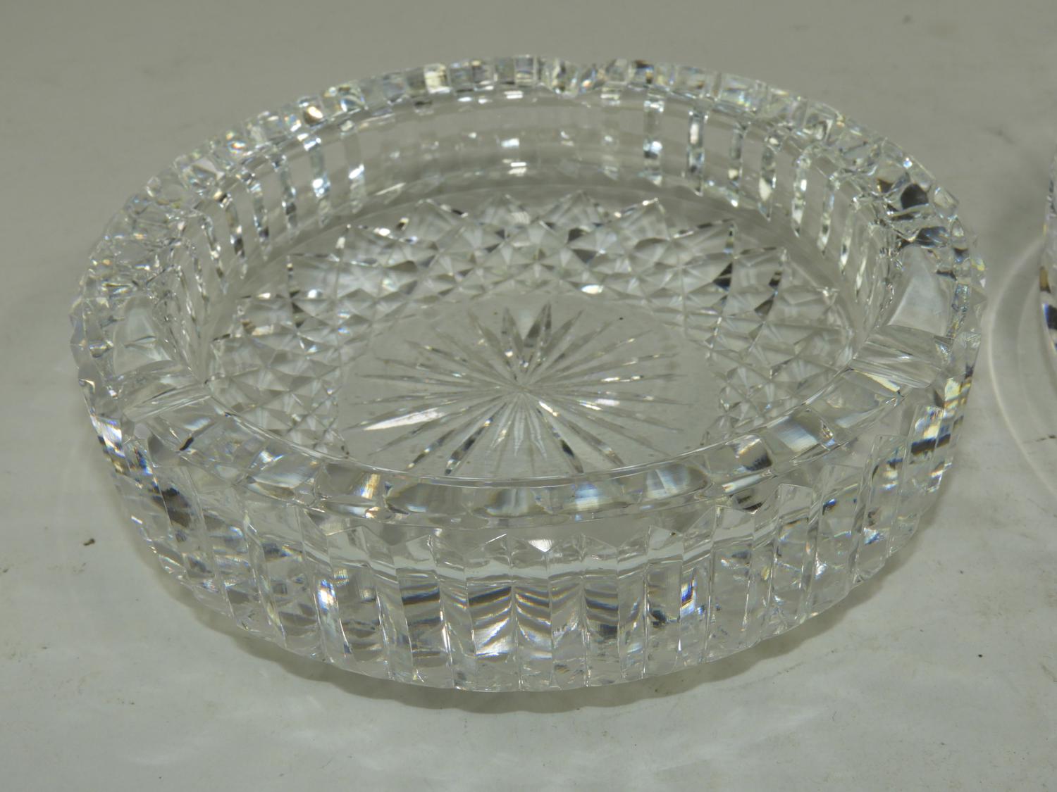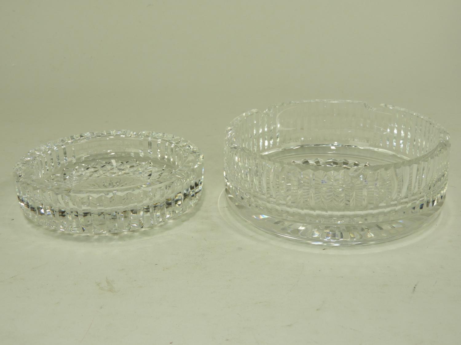 two waterford crystal ash trays 2 1/2" x 7" and smaller