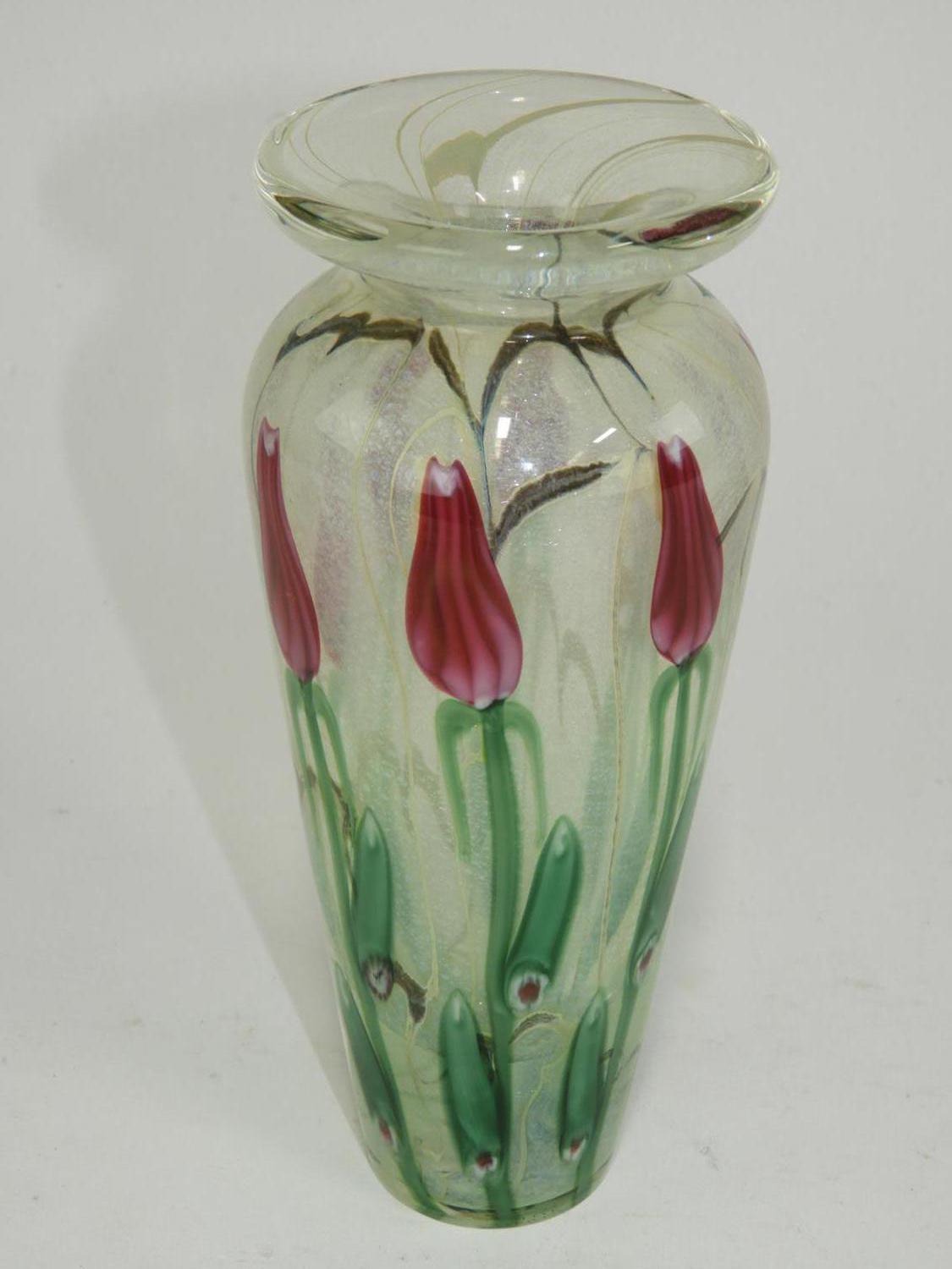 floral art glass vase, signed on the bottom ht 8 1.2"