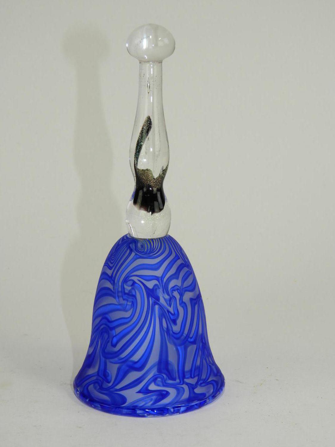 signed art glass bell, ht 8"