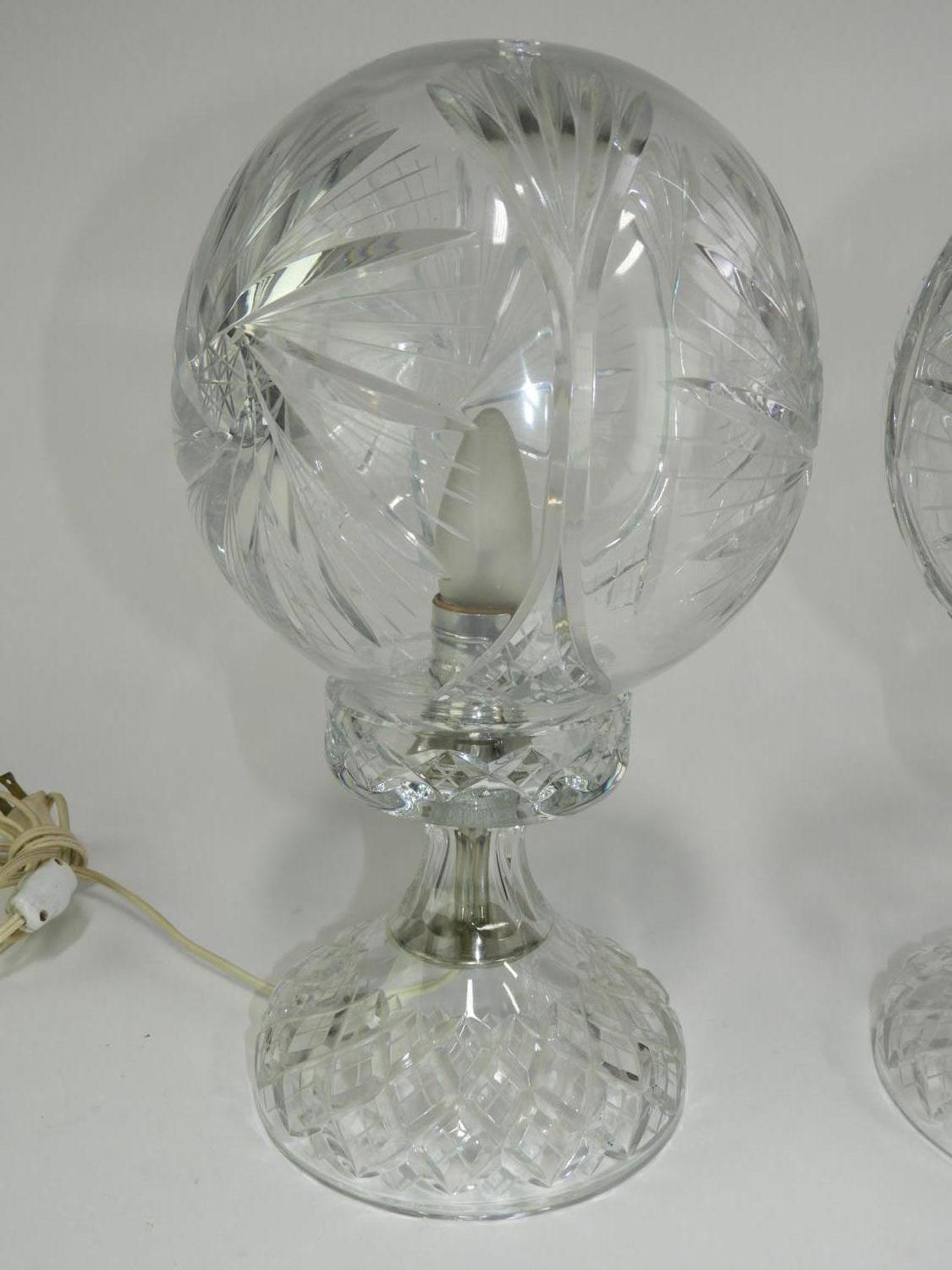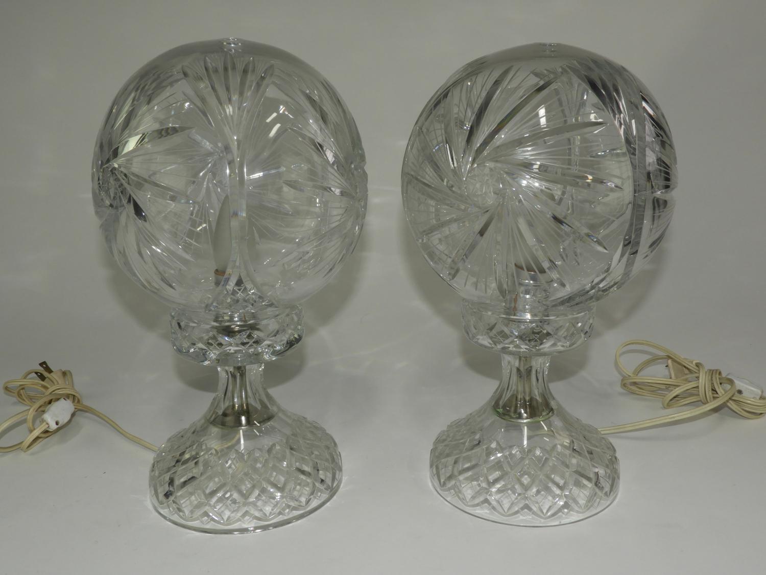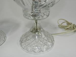 pair of etched and cut glass crystal table lamps, ht. 13 1/2"