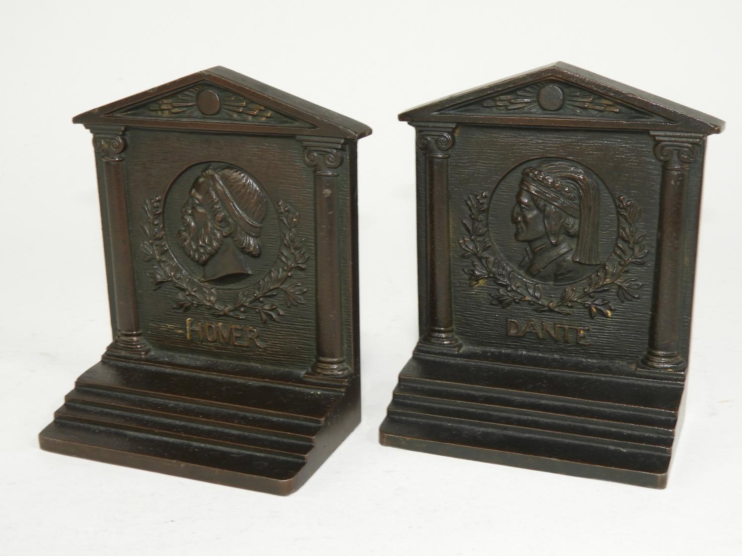 pair of bradley & hubbard "homer & dante" bronze bookends