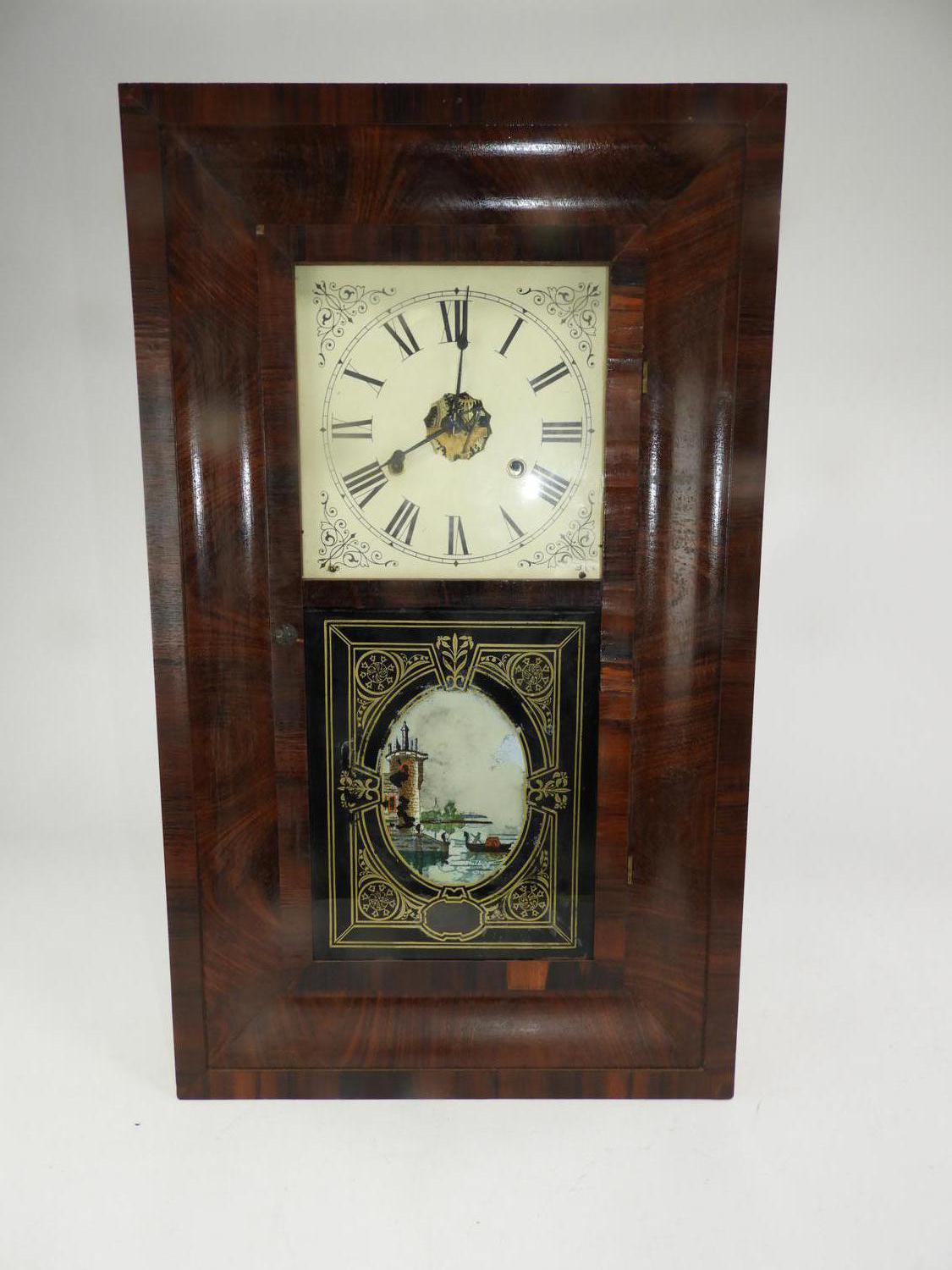 ogee - new haven 1860's shelf clock with lighthouse tablet, has weights, pendulum and key