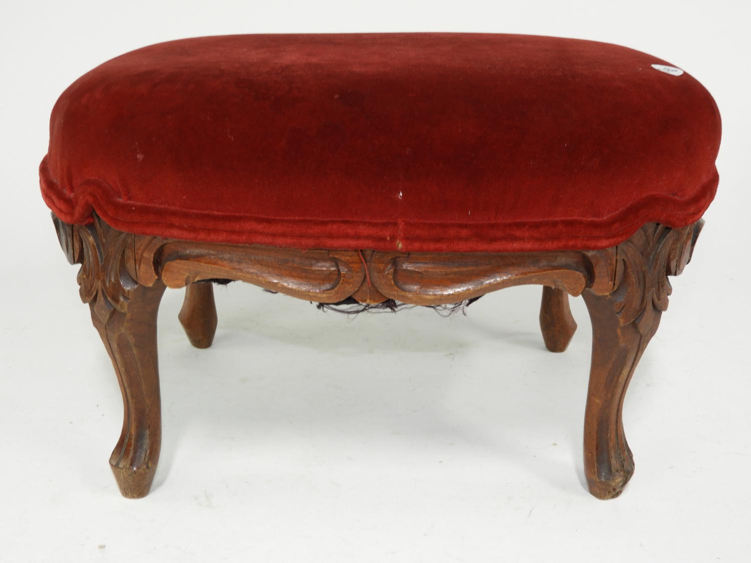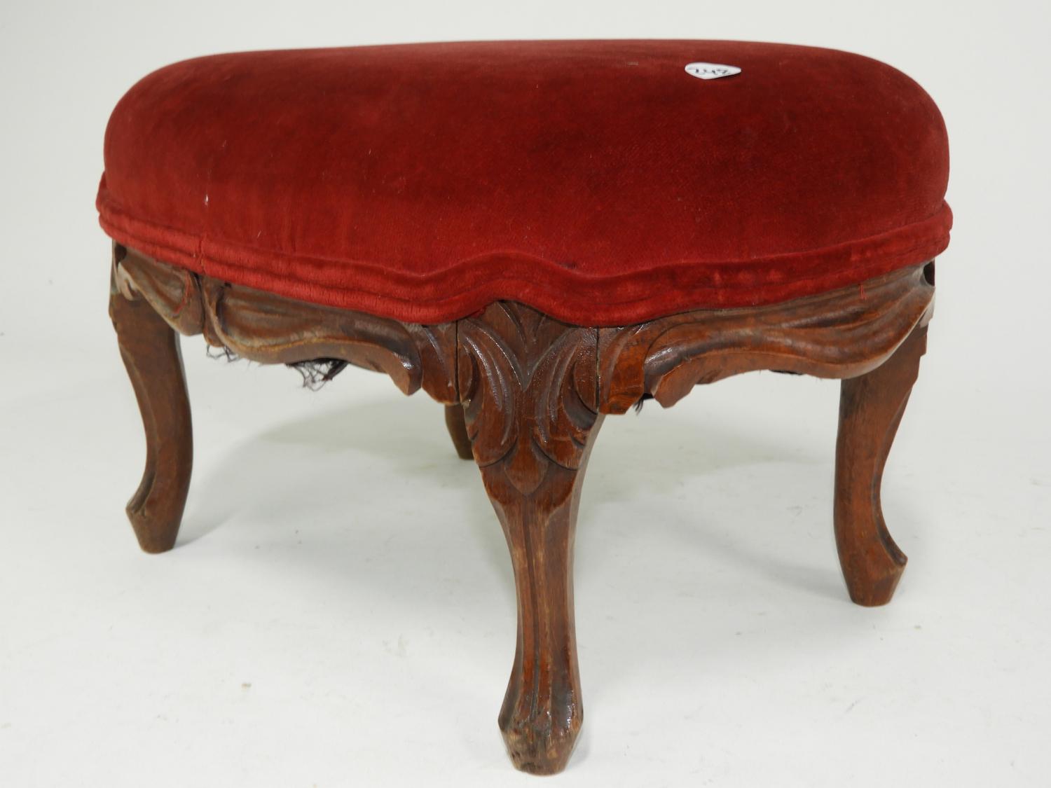 19th century upholstered carved walnut footstool