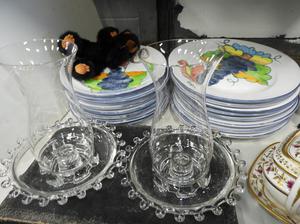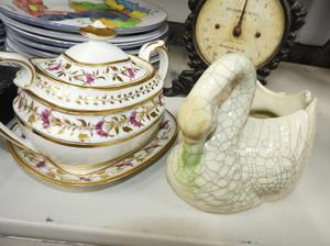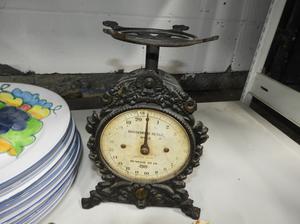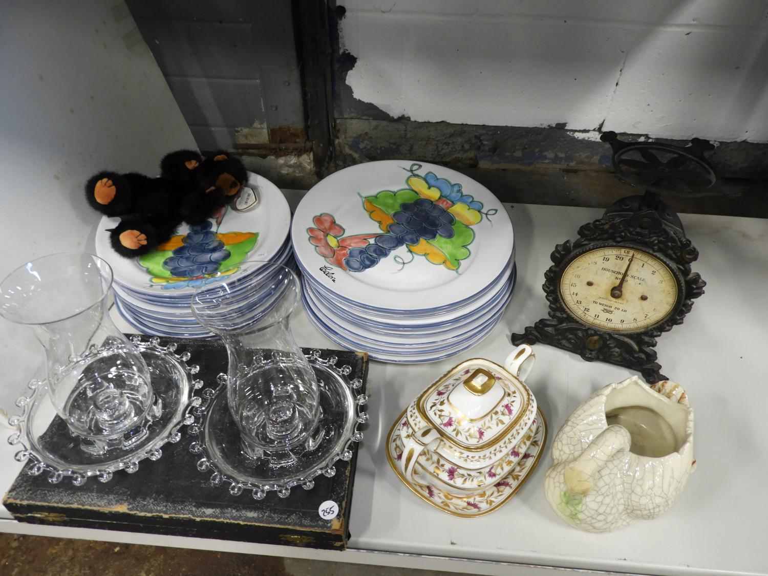 lot of plates, 19th century sugar pot, scale, etc