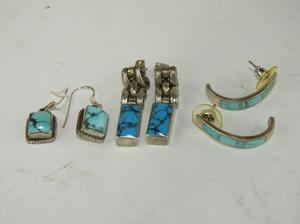 group of sterling and turquoise earrings