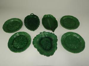 lot of green glaze leaf motif dishes, including one wedgewood