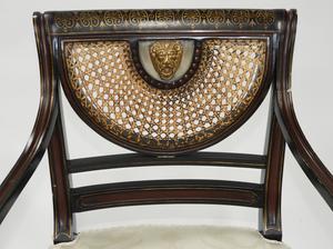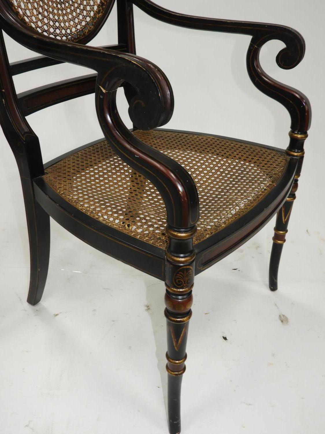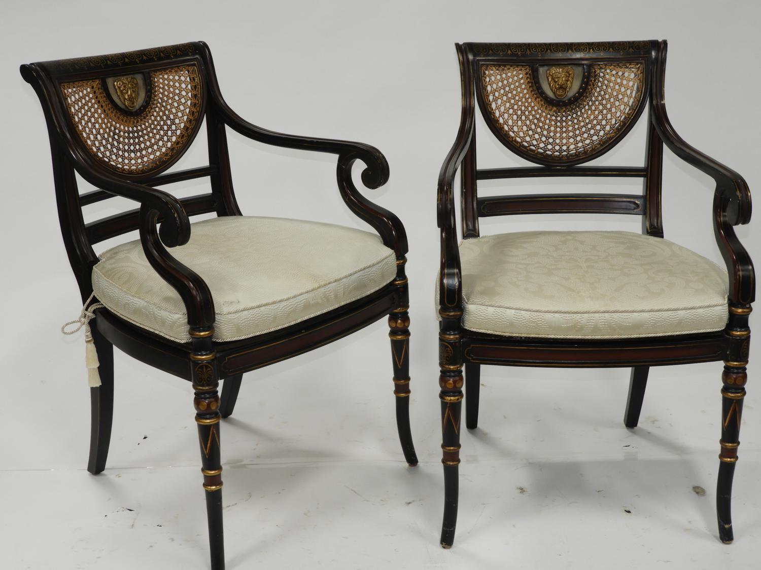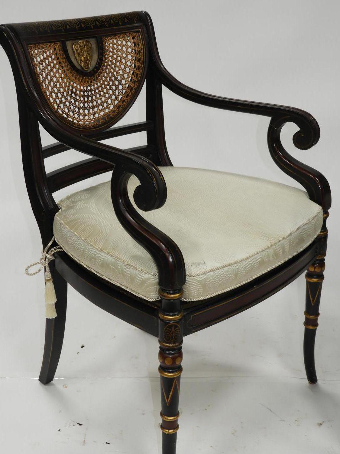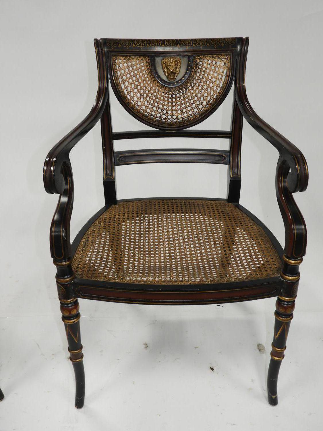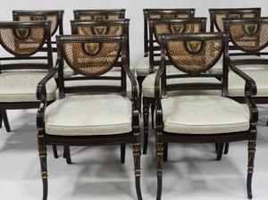 set of 10 egyptian revival style painted partial gilt caned seat dining chairs, late 20th century