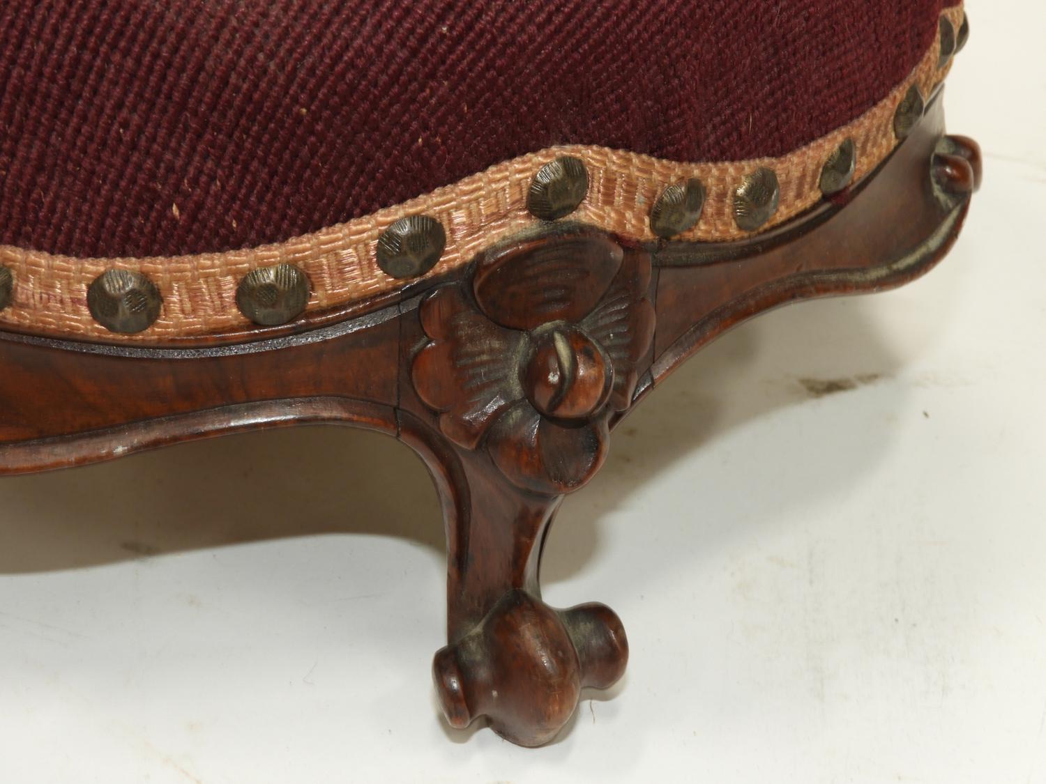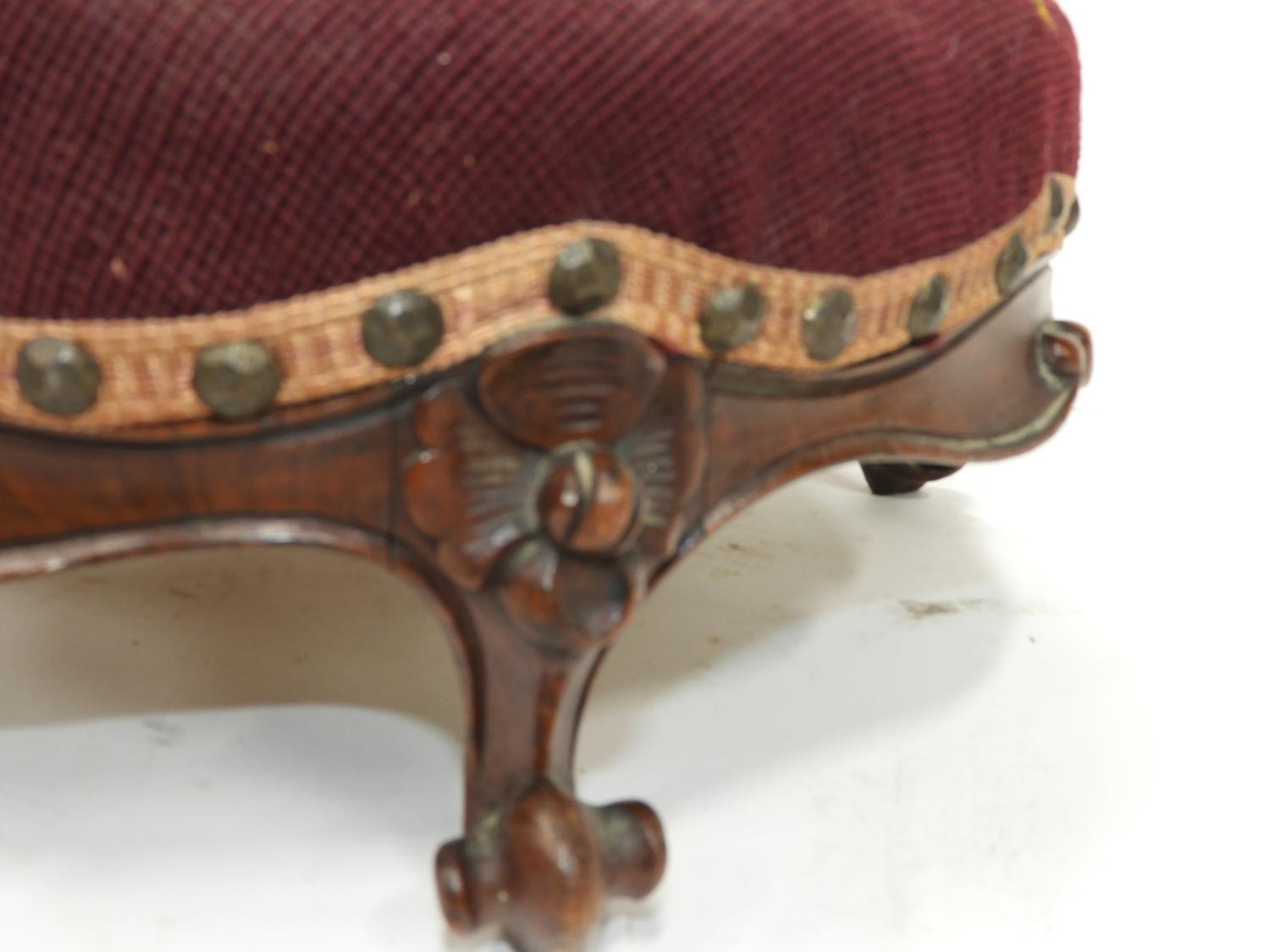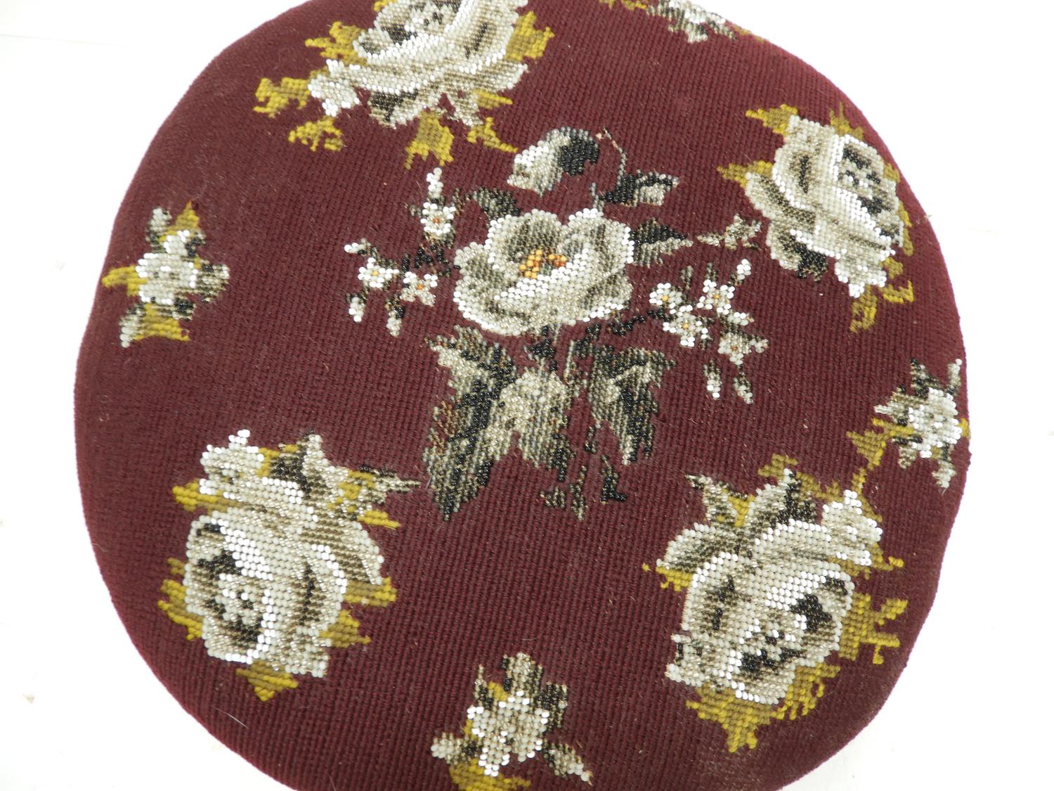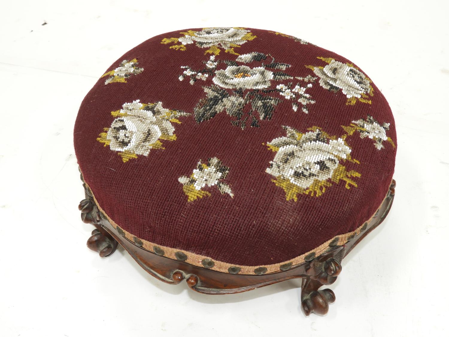 early victorian carved walnut footstool with beadwork upholstery, english, ci 1955, 6" x 13"