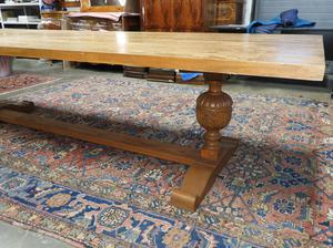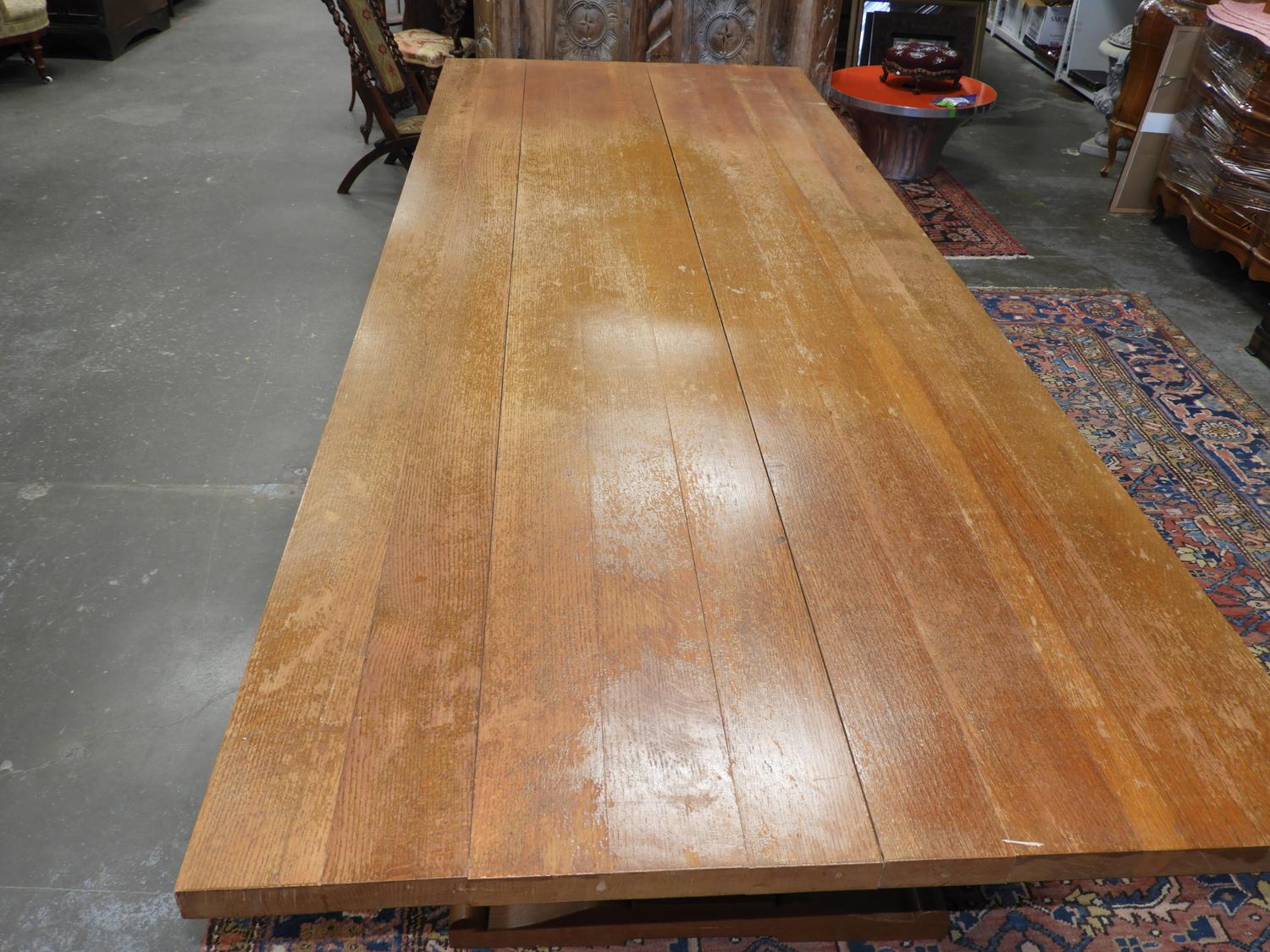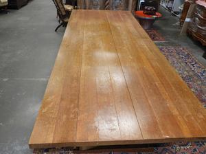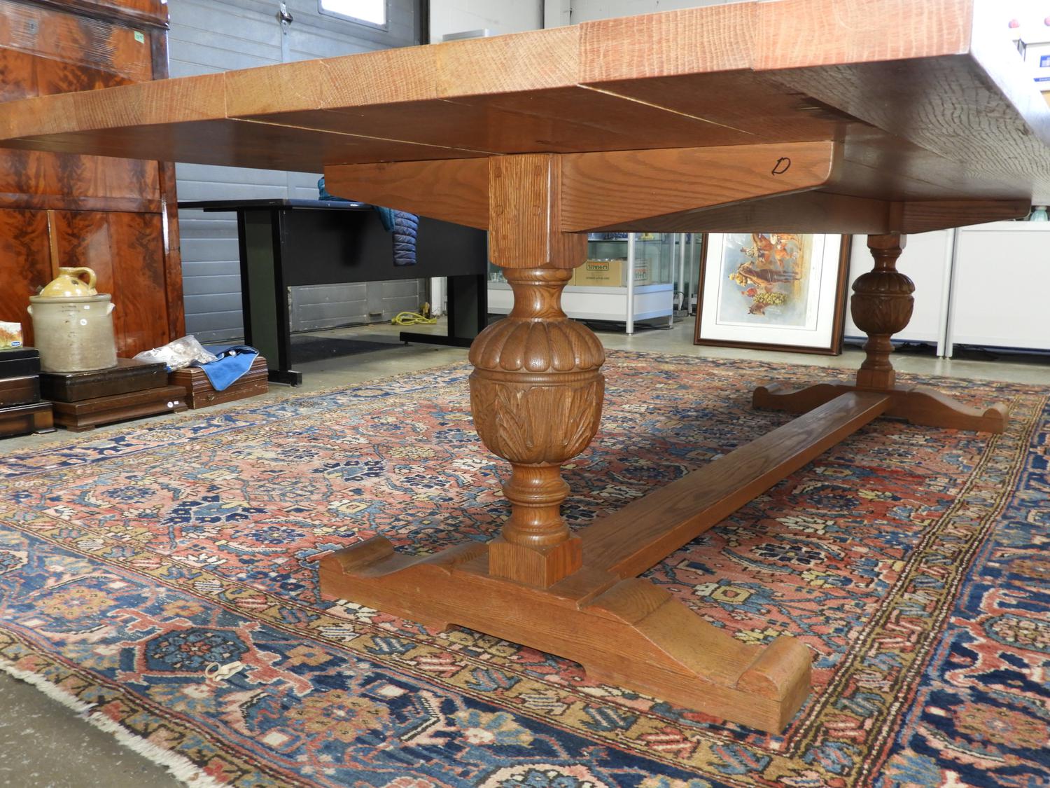 large oak refrectory table with carved gadrooned trestle base, 20th century, 29 1/2" x 120" x 45"