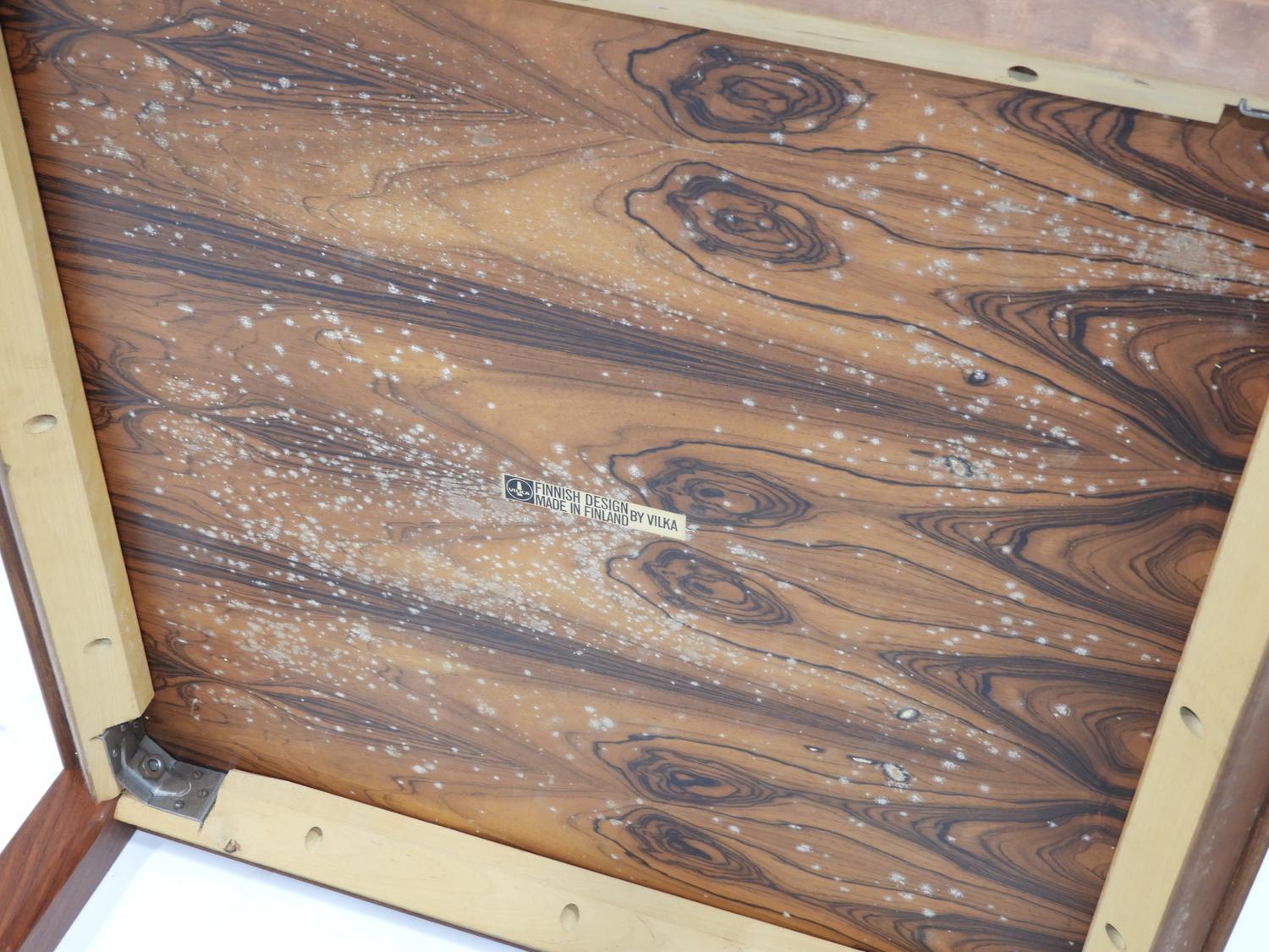 mid century modern rosewood coffee table, finnish design by vilka, 20" x 31" x 31"
