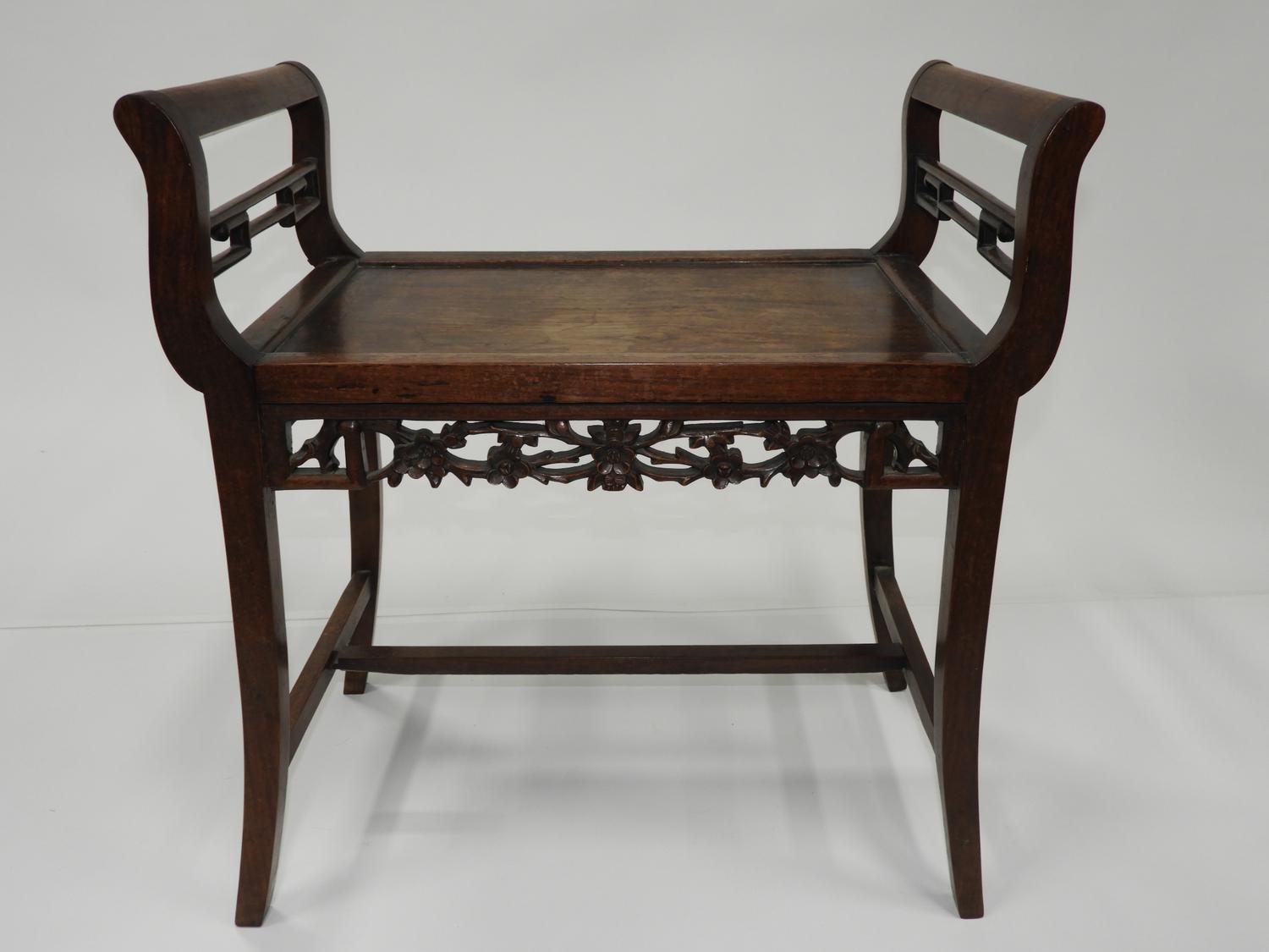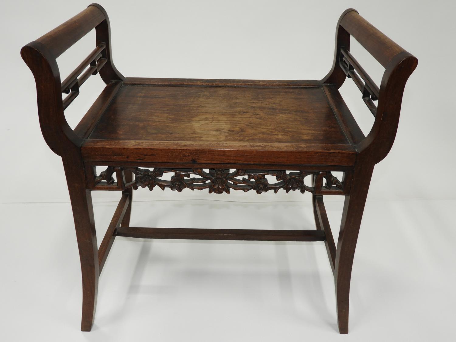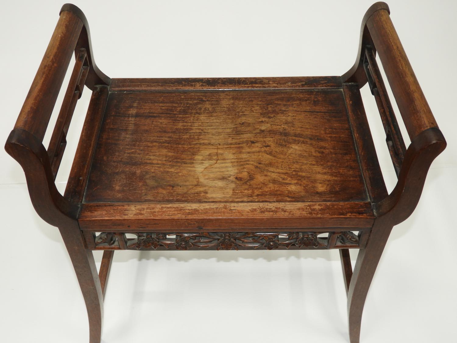 chinese carved rosewood bench, late 19th/early 20th century, 26" x 24" x 15"