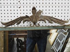 oxidized metal framed beveled glass mirror, ealry 20th century, 34" x 50"