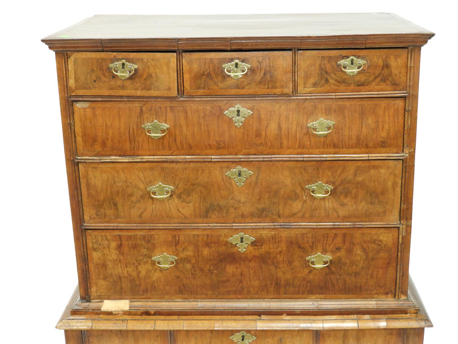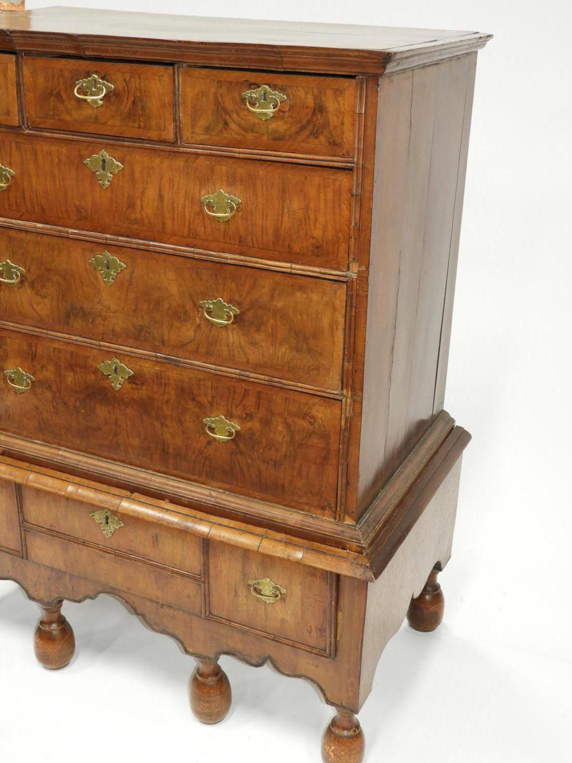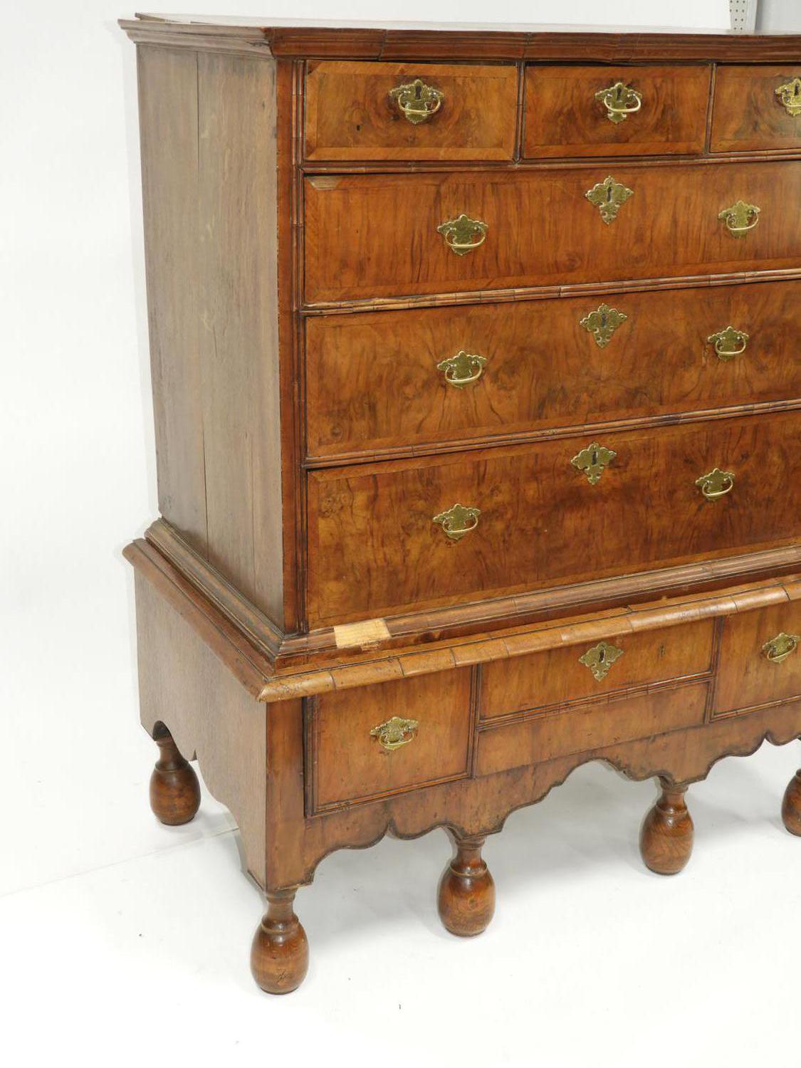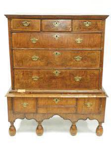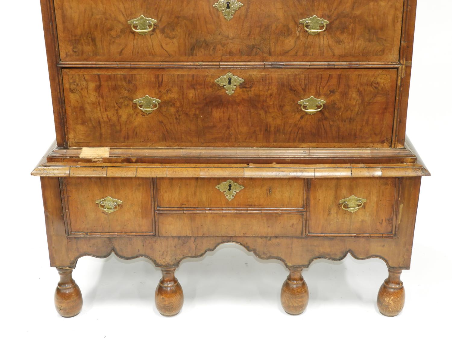 william & mary figured walnut chest on stand, early 18th century, 51" x 39 1/2" x 24"