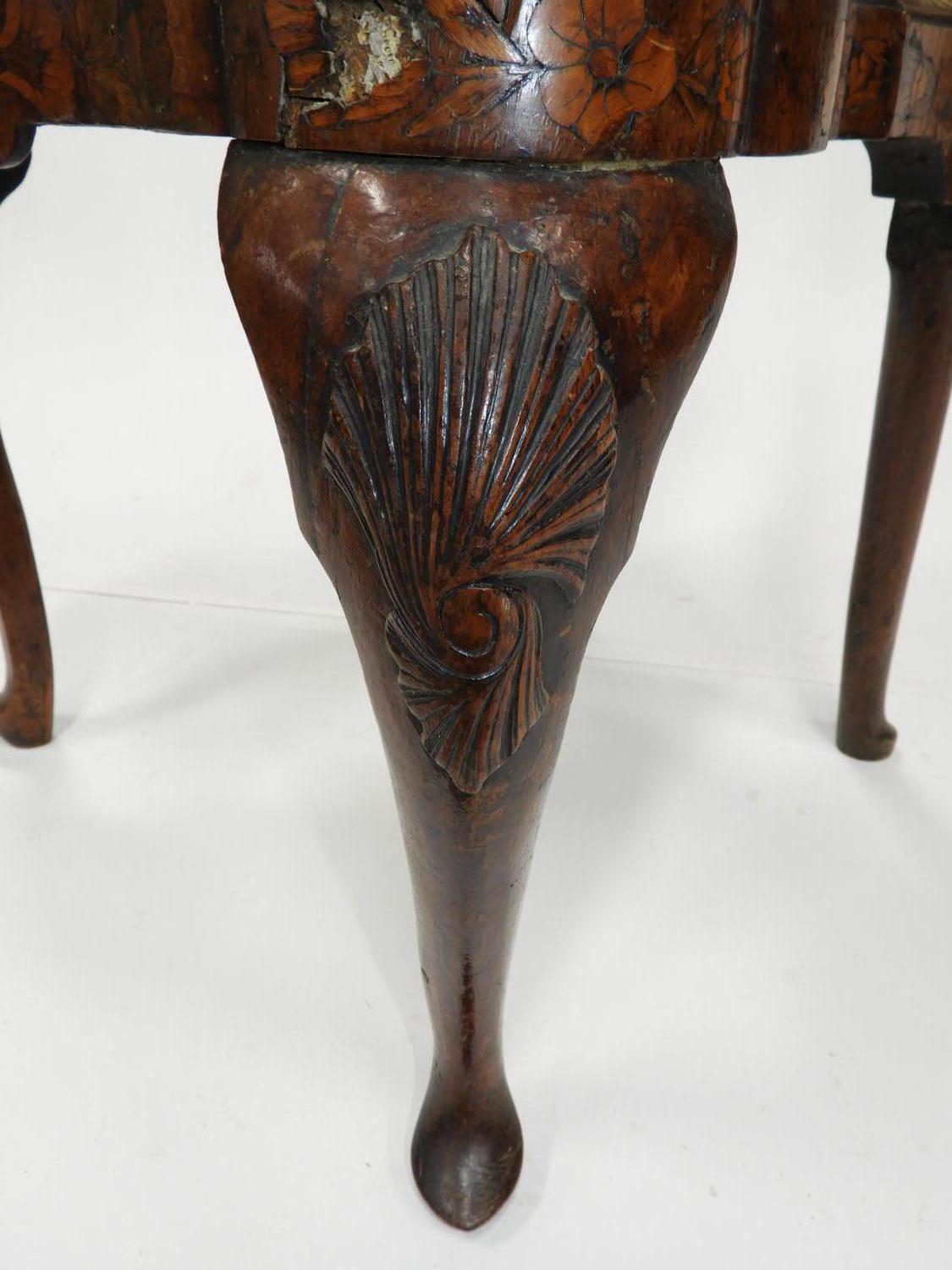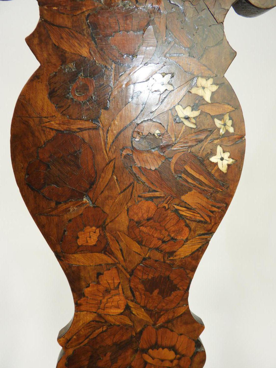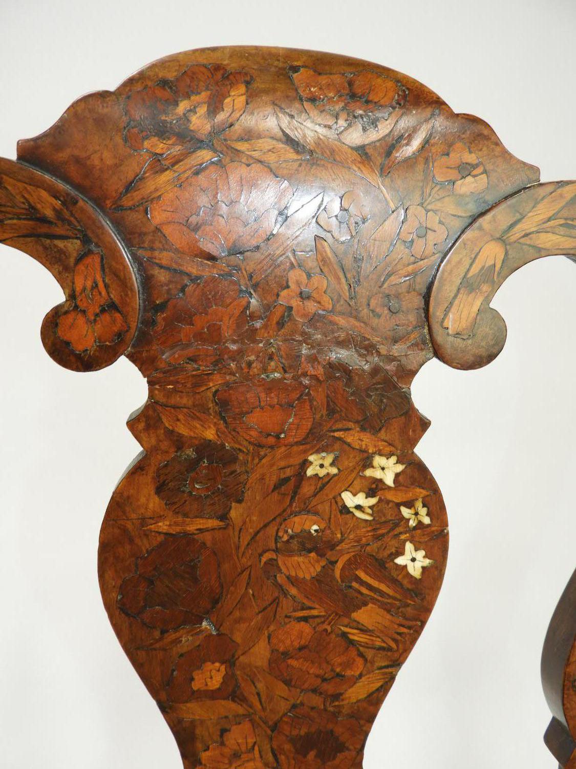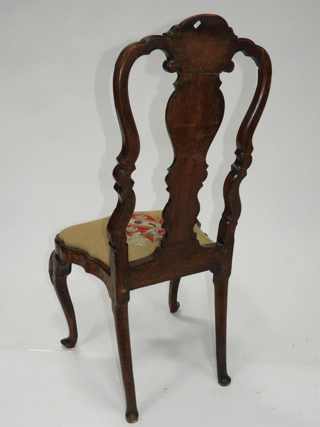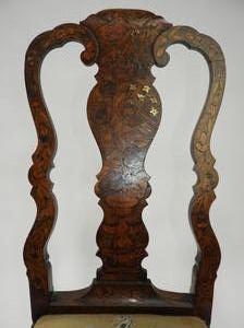 queen anne marquetry inlaid mahogany side chair with coat of arms needlepoint seat, early 18th century, 42 1/2" x 21" x 18"