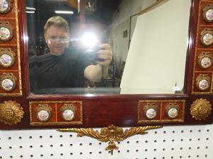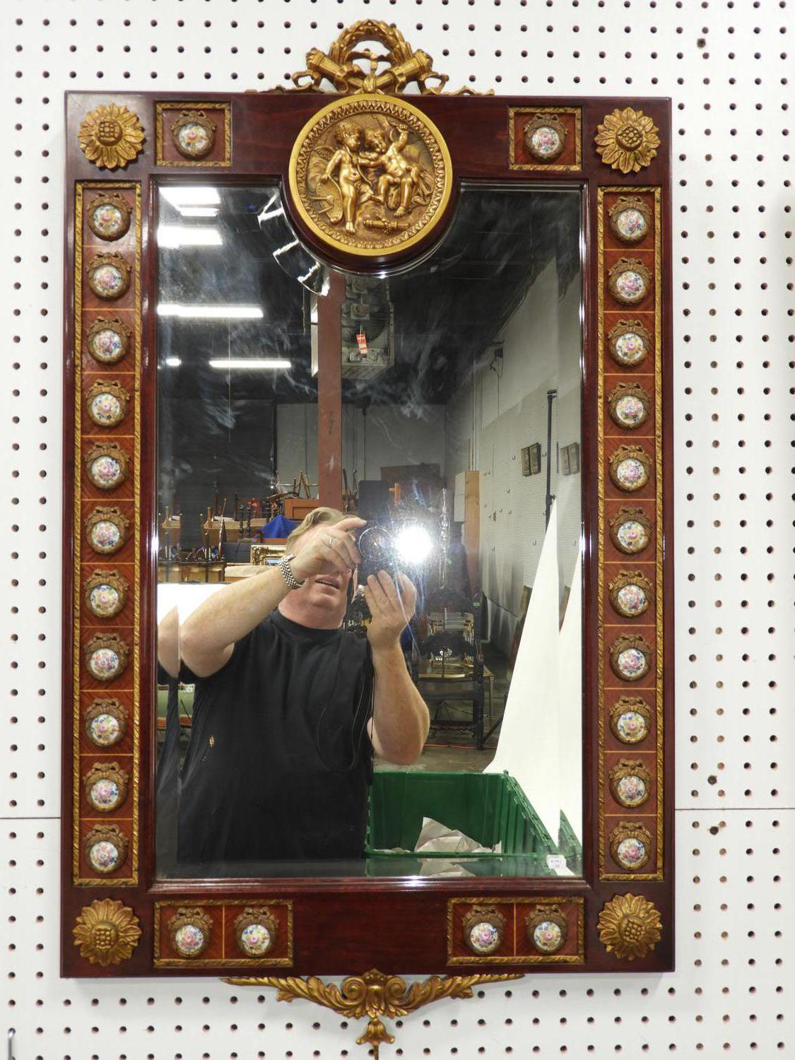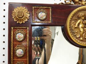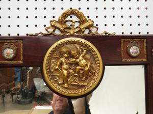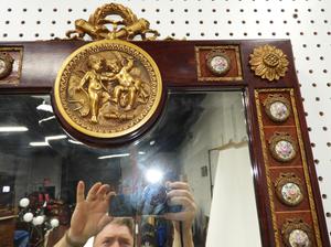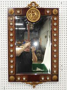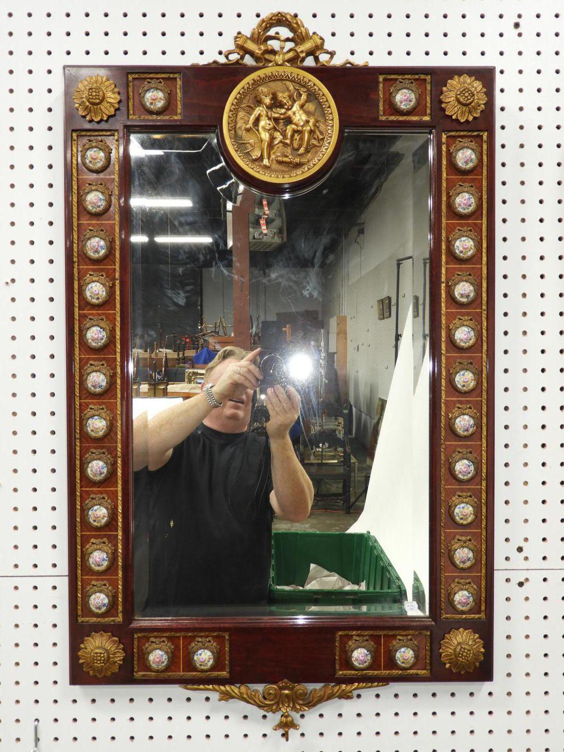 louis xvi style marble top porcelain and gilt mounted mirror, mid 20th century, 38" x 22"