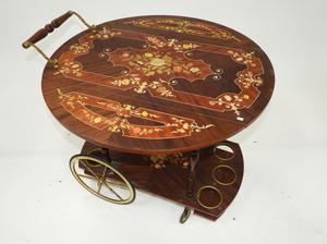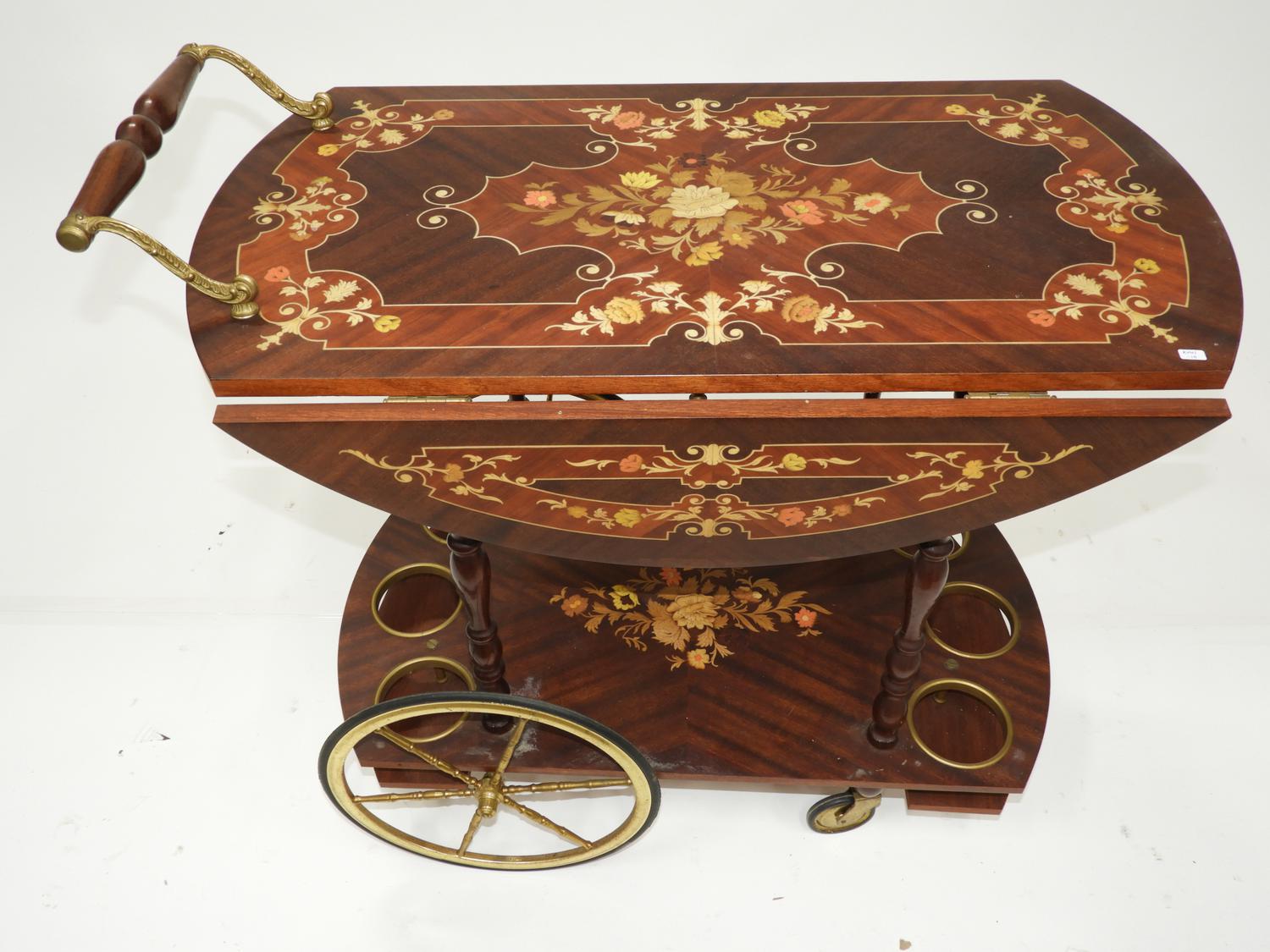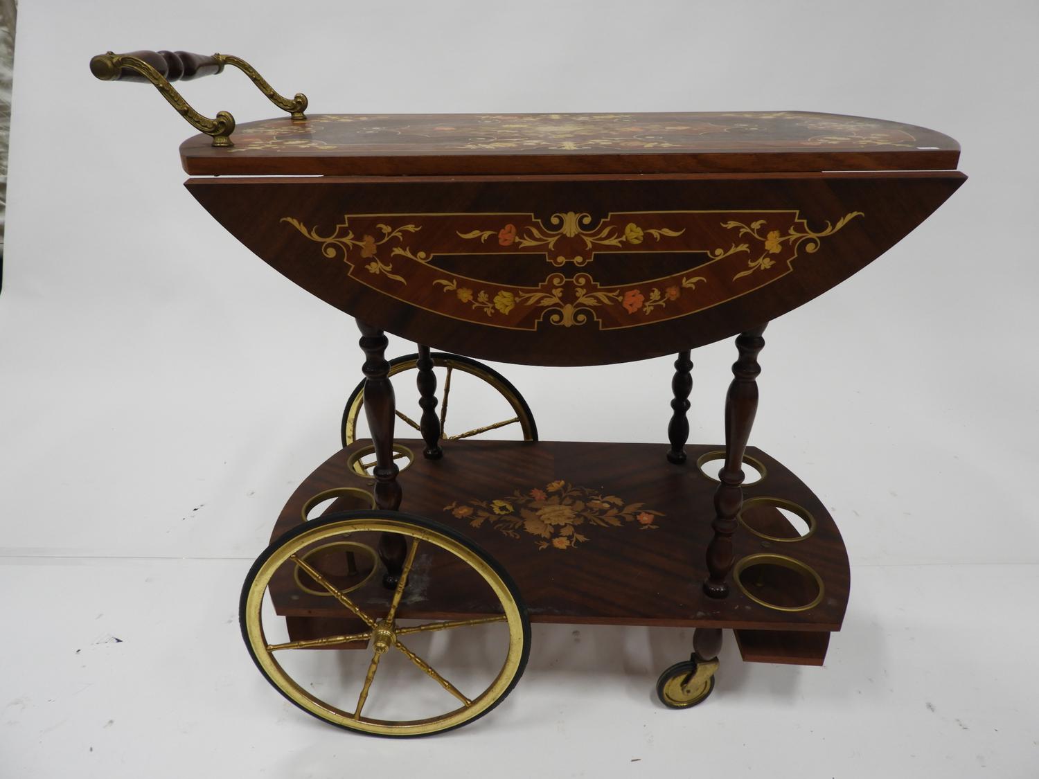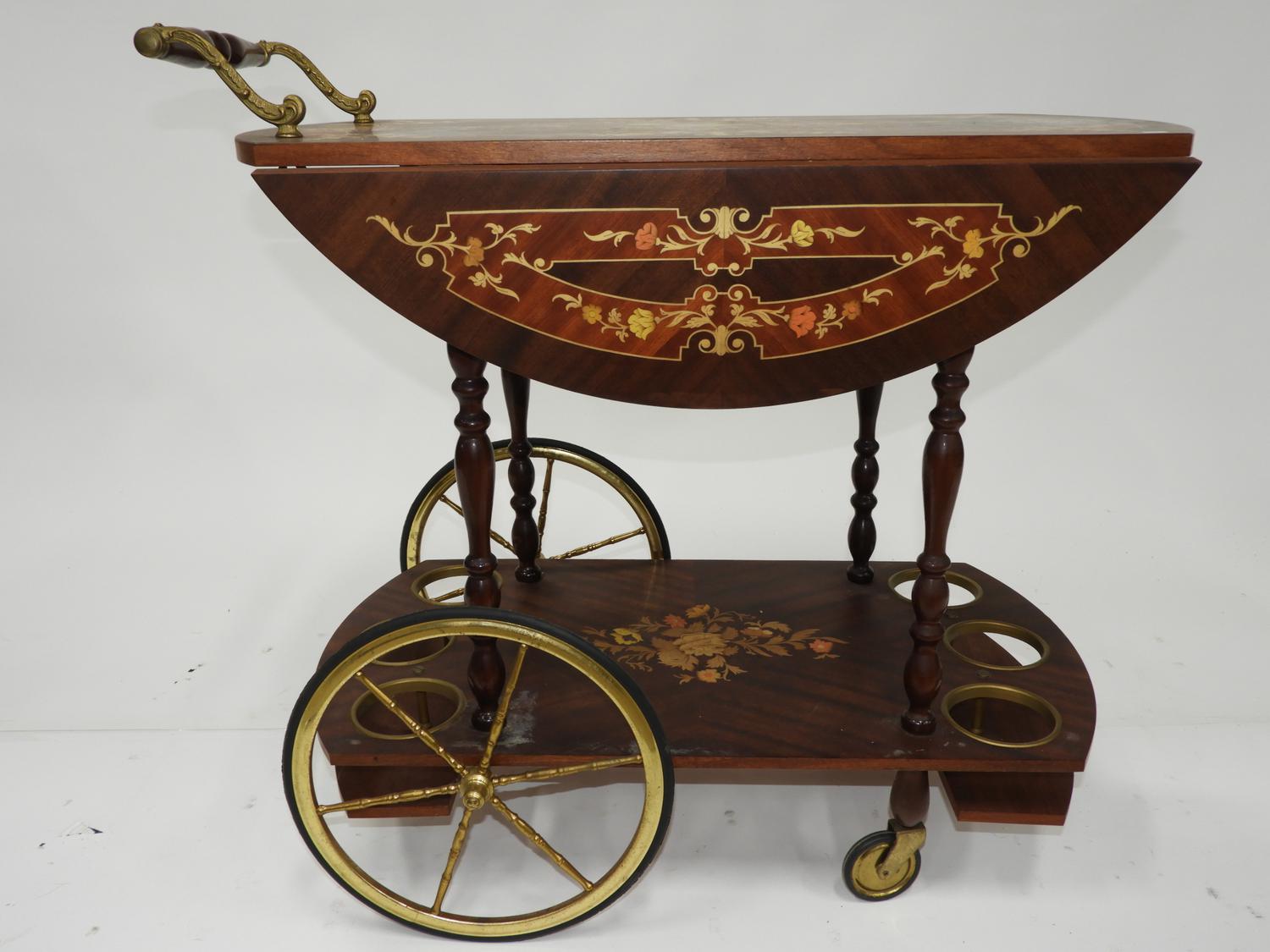 italian marquetry inlaid drop leaf drinks cart, mid 20th century, 31" x 31" x 29 1/2"