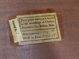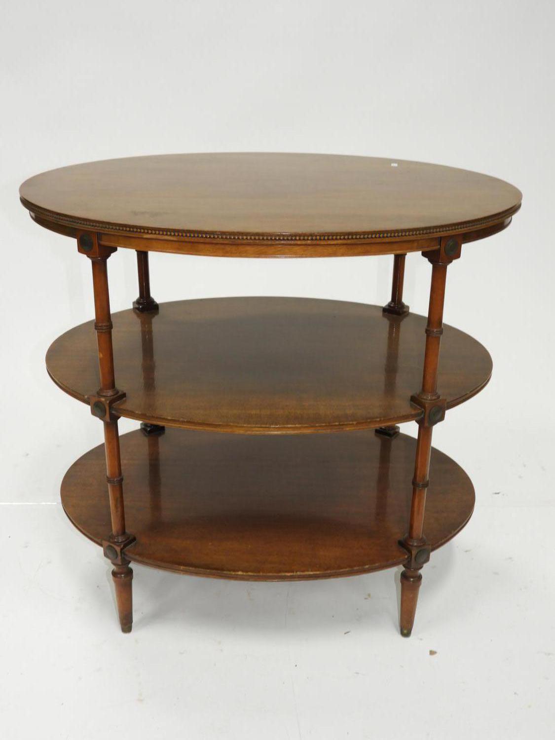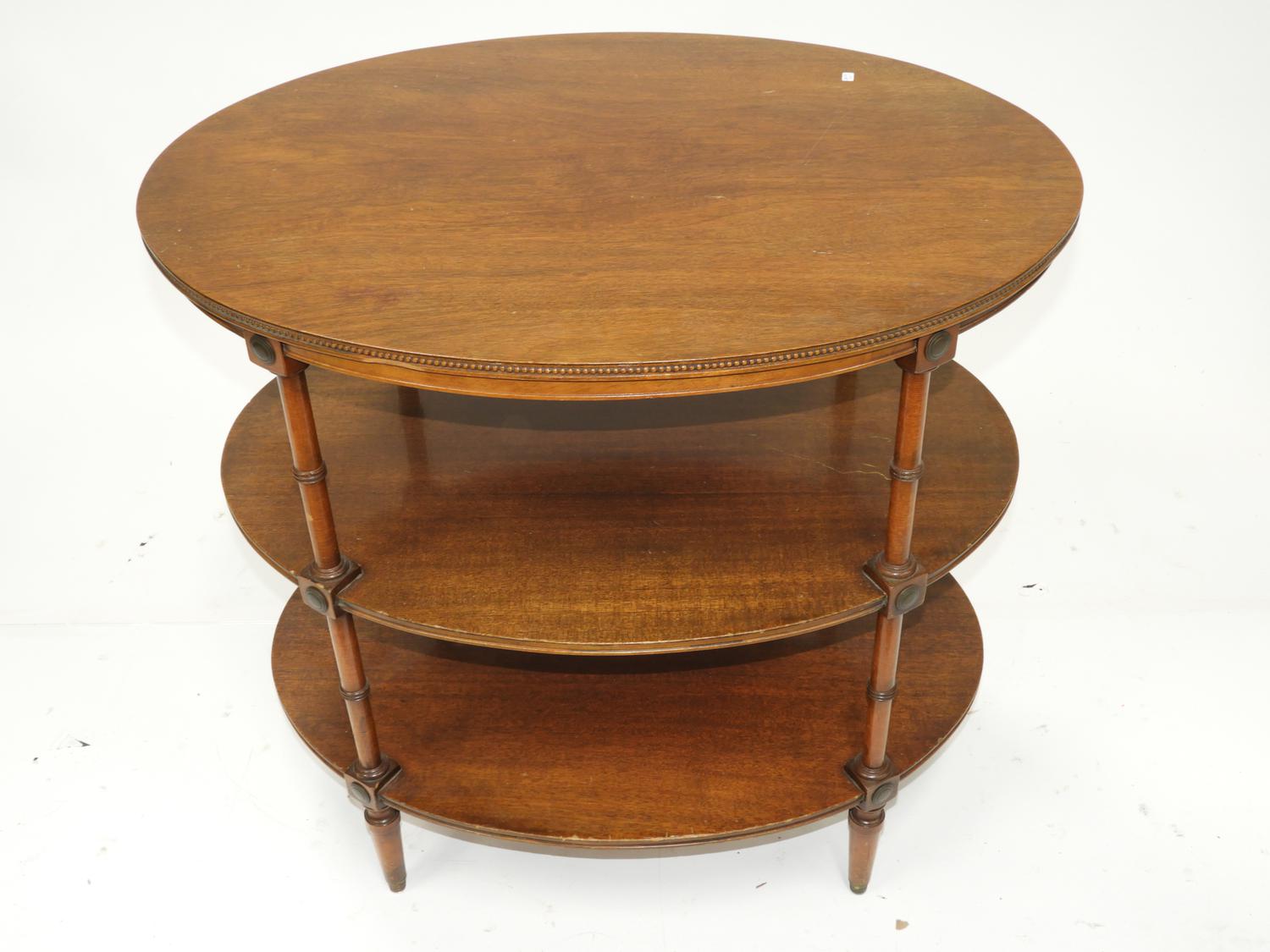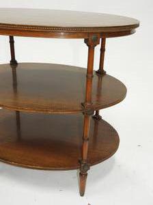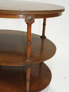 american mahogany finish 3-tier side table, d.1951, 26" x 28" x 20 1/2"