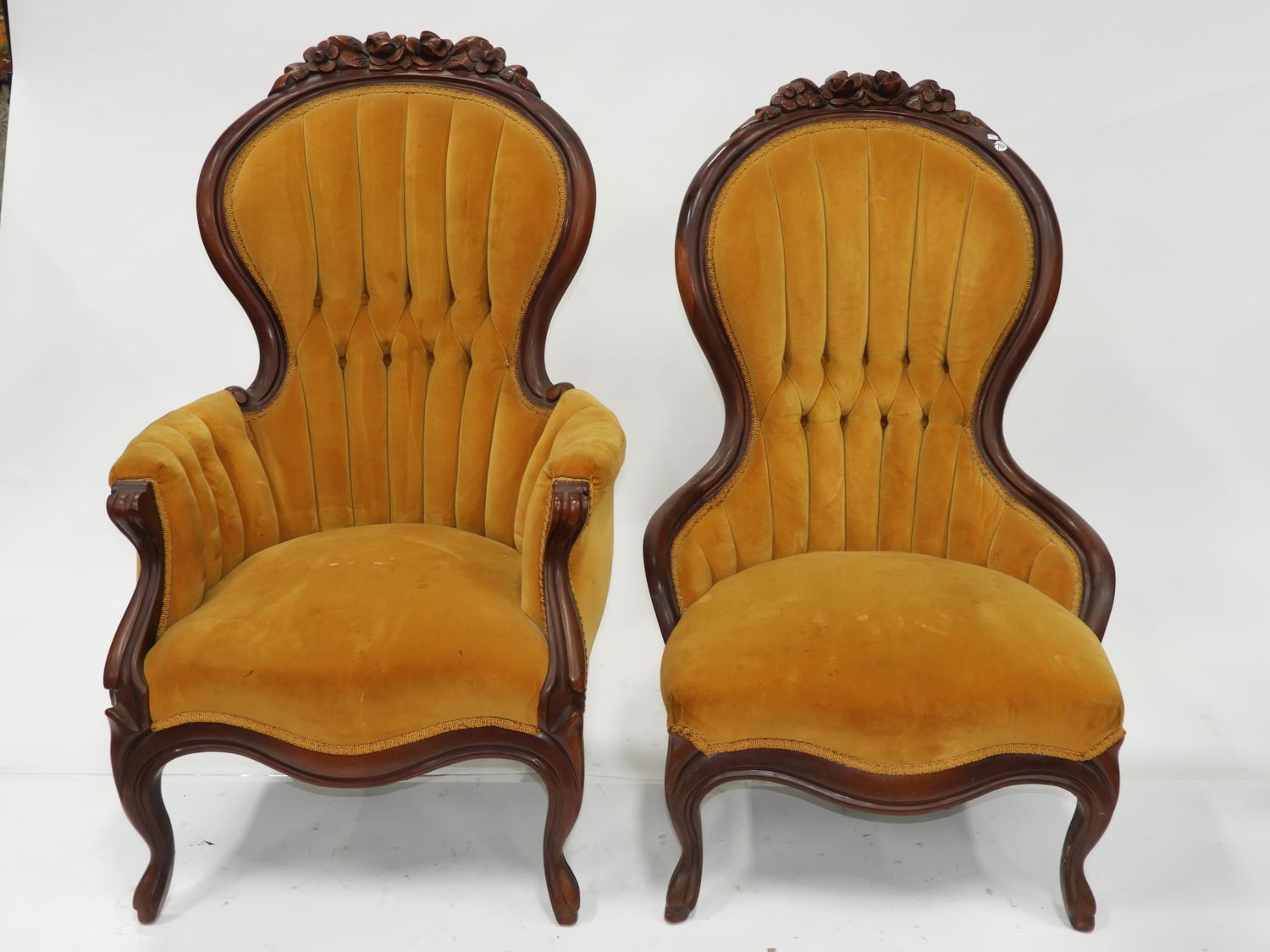 ladies and gents victorian style parlor chairs, by victorian c.1950,