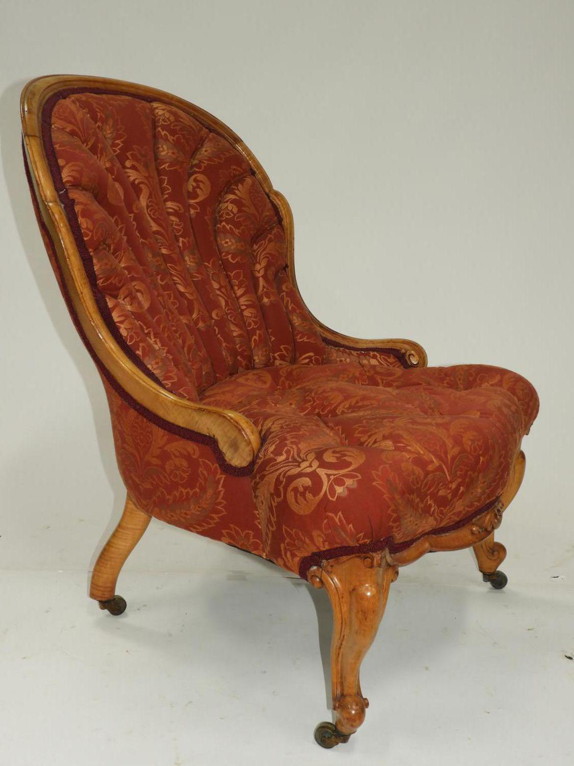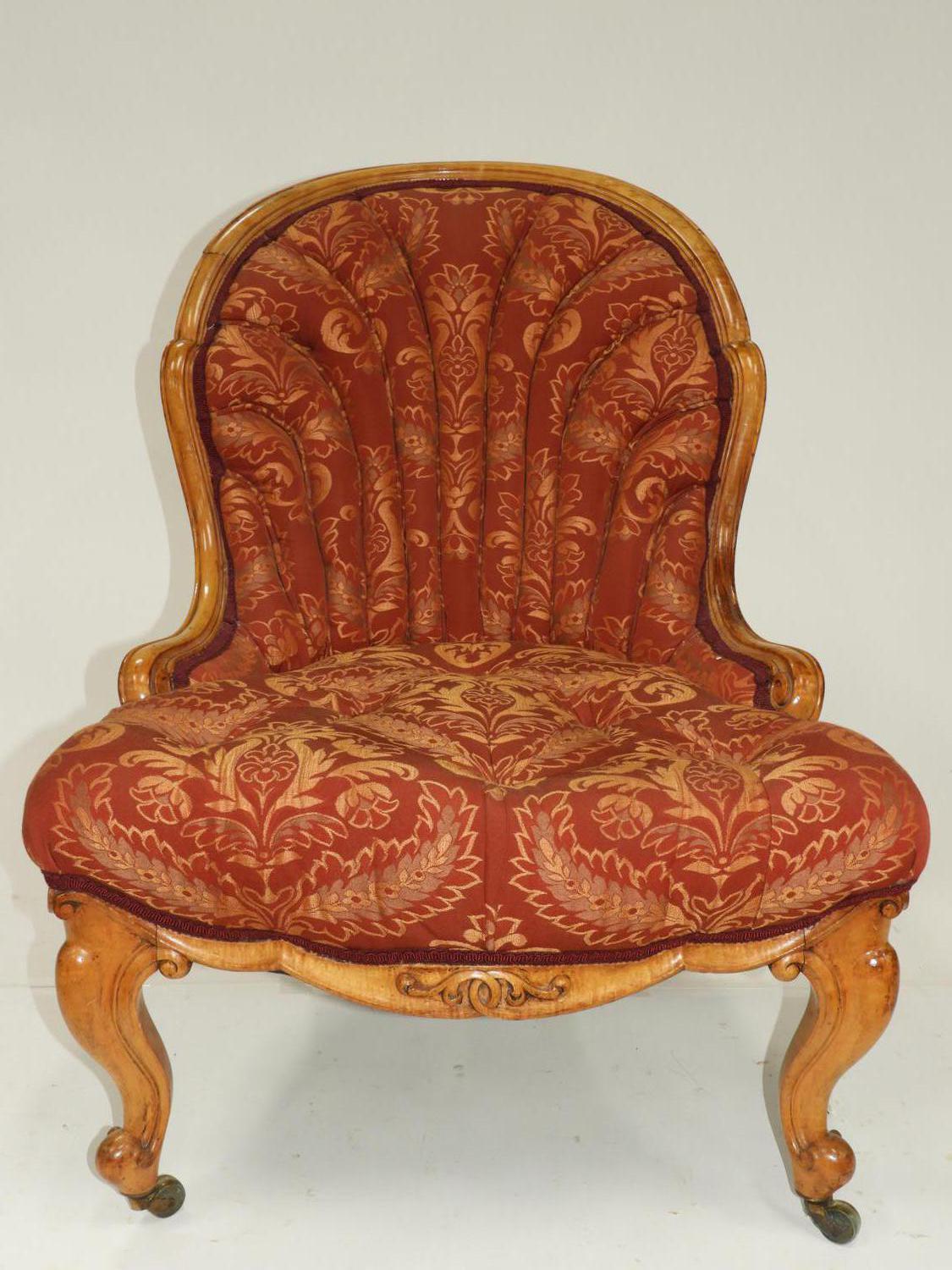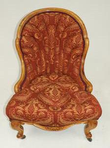 19th century carved walnut slipper chair, 34" x 26" x 30"