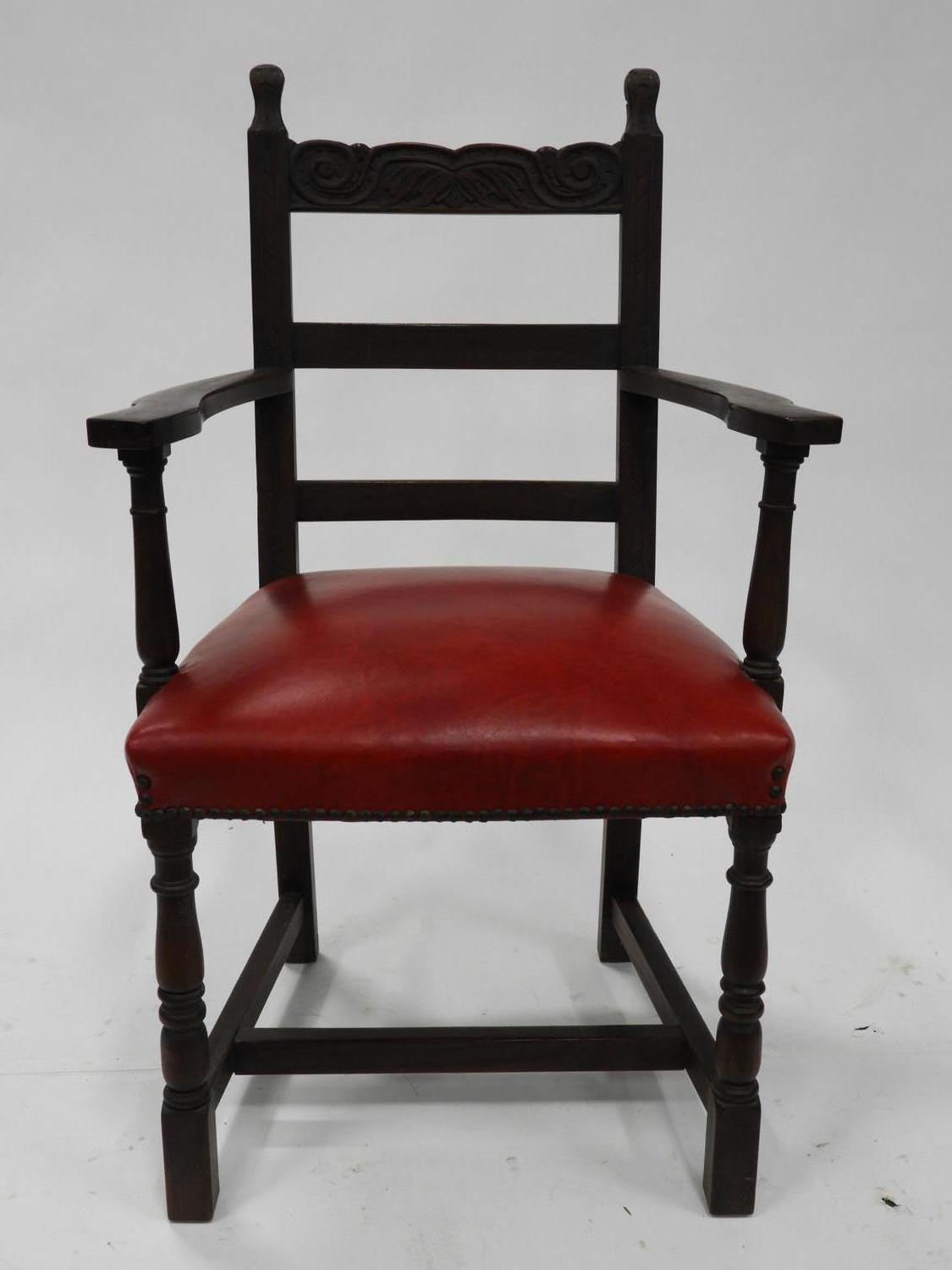carved oak armchair in the 17th century english manner, c.1950, 38" x 23 1/2" x 18"