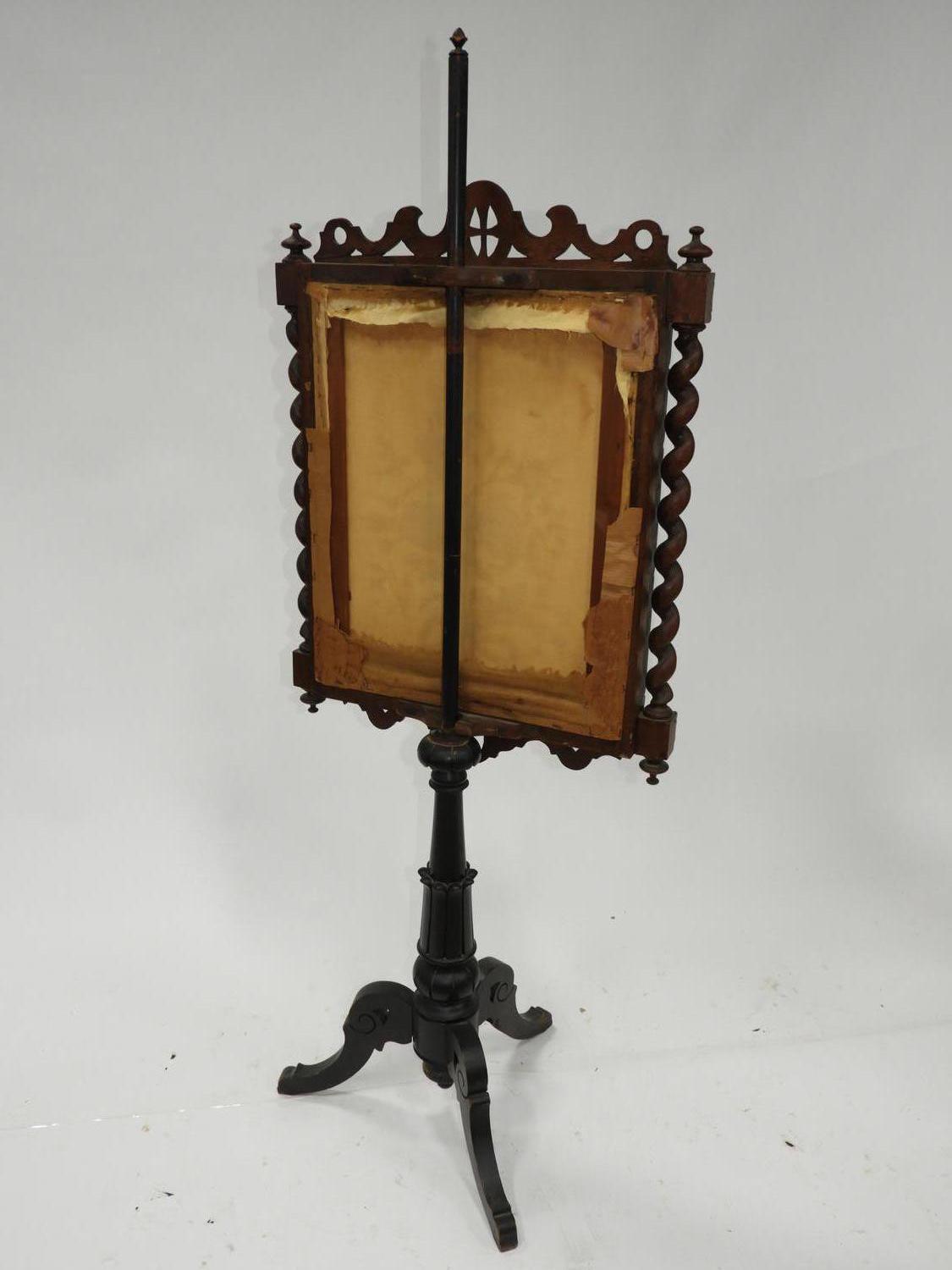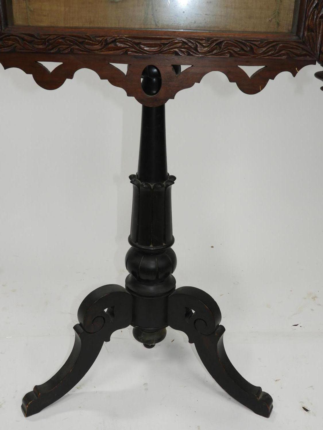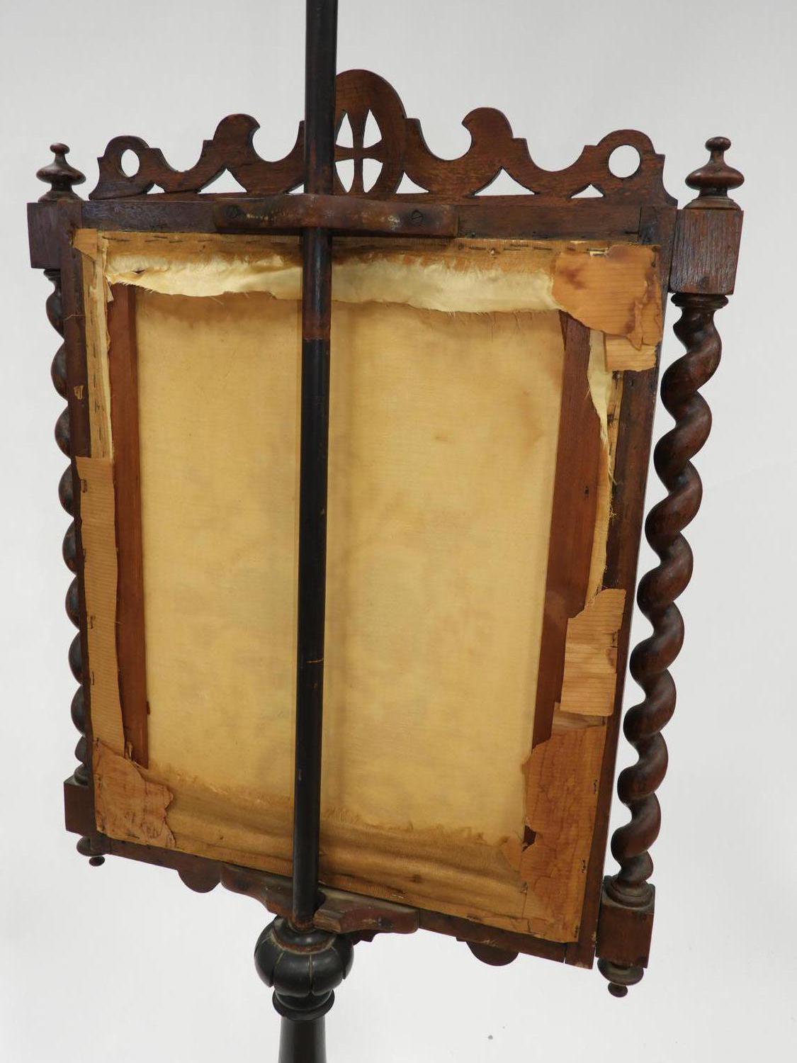 19th century carved oak and ebonized pole screen, 63" x 24"