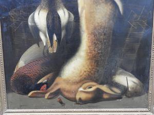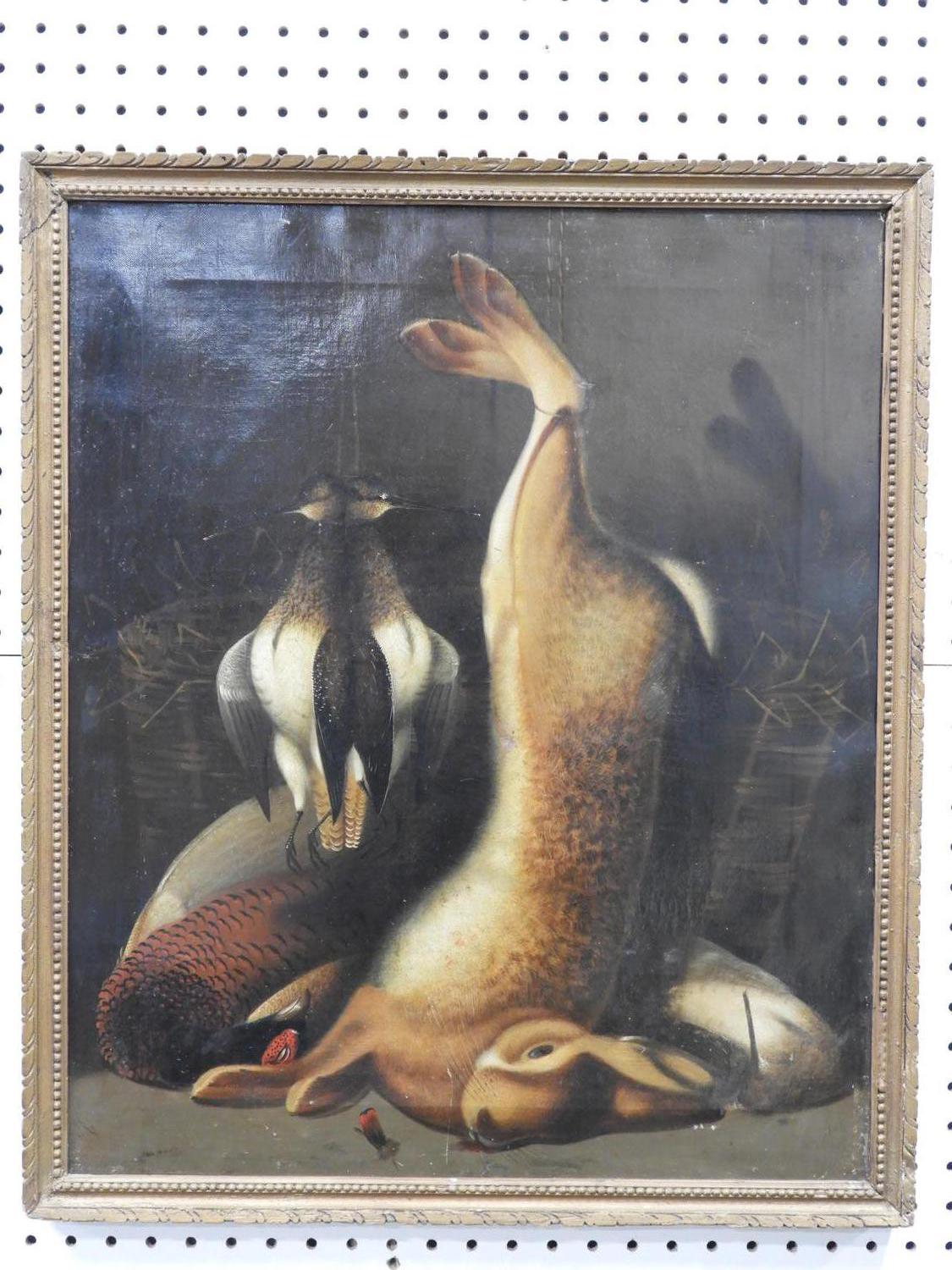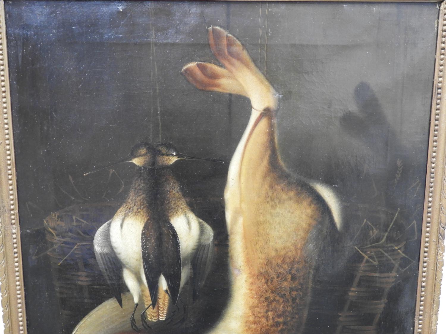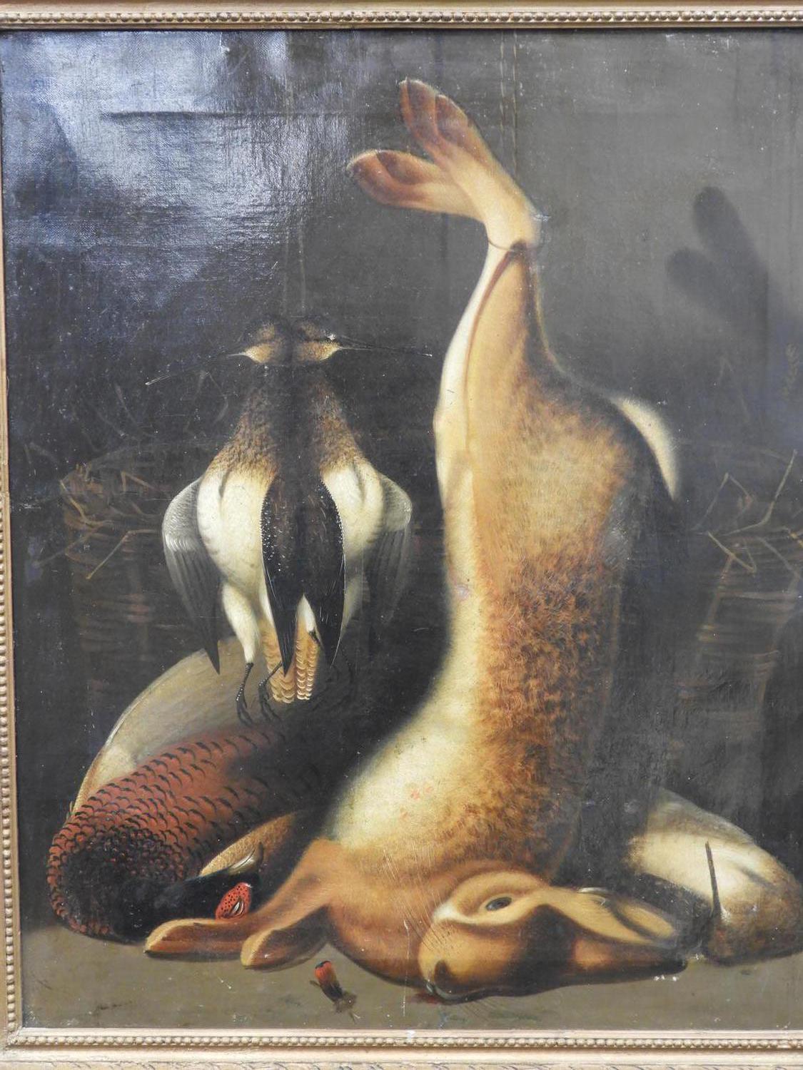 19th century english school, oil on canvas, 24" x 20", "stillife with rabbit and birds"