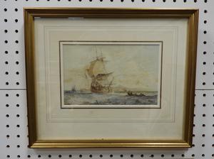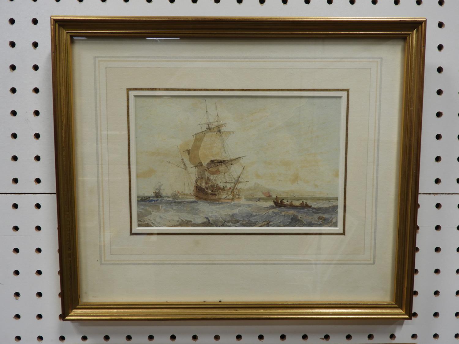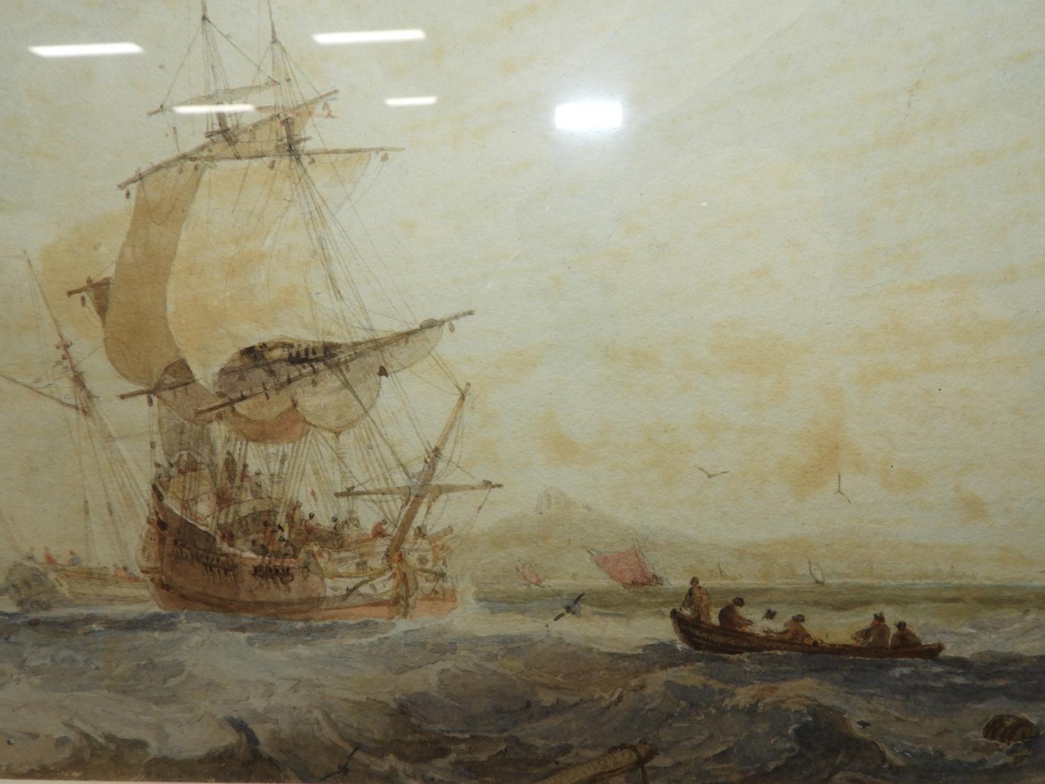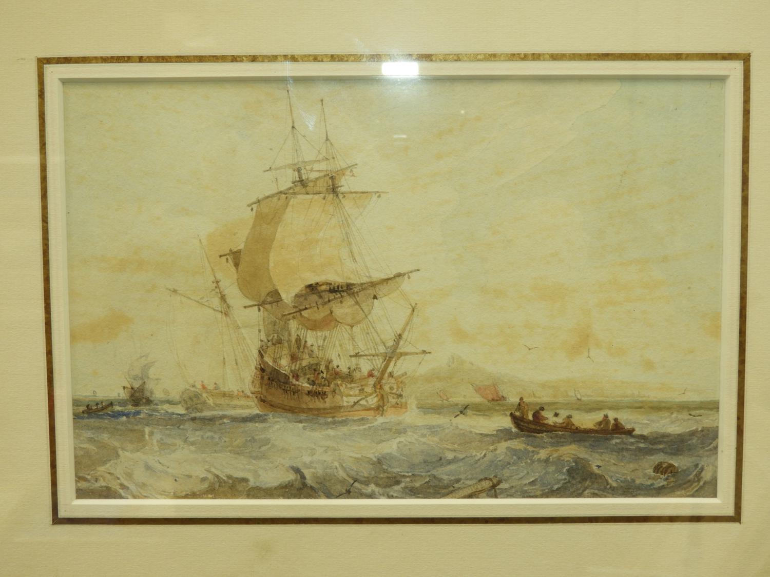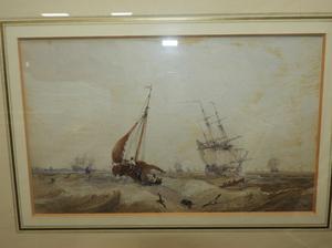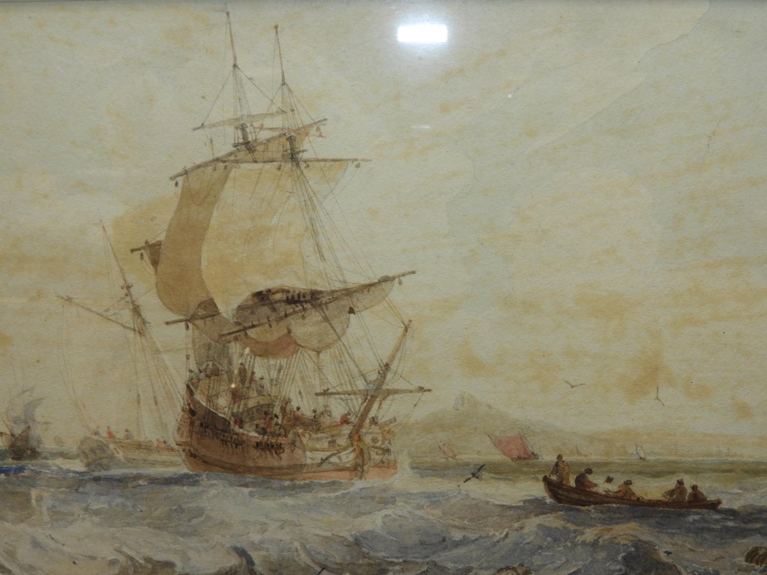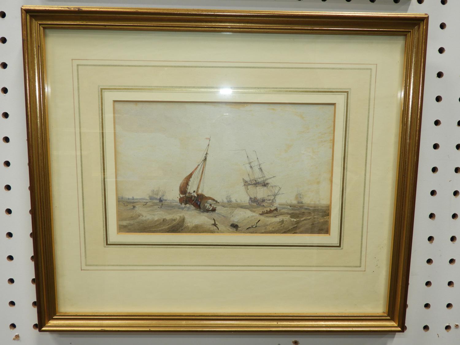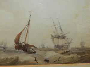 attributed to samuel owens (1768-1857), two watercolours, 5 1/2" x 8 3/4", "shipping in rough seas"