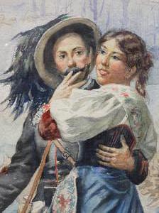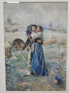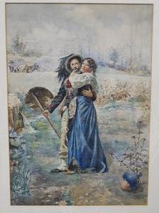 arturo ricci (1854-1919), watercolour, 21" x 14 3/4", "homecoming"